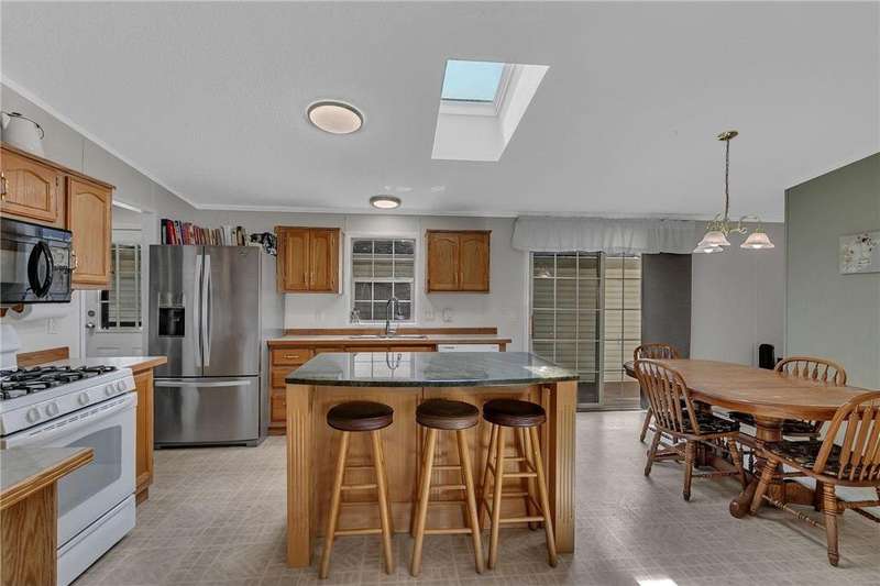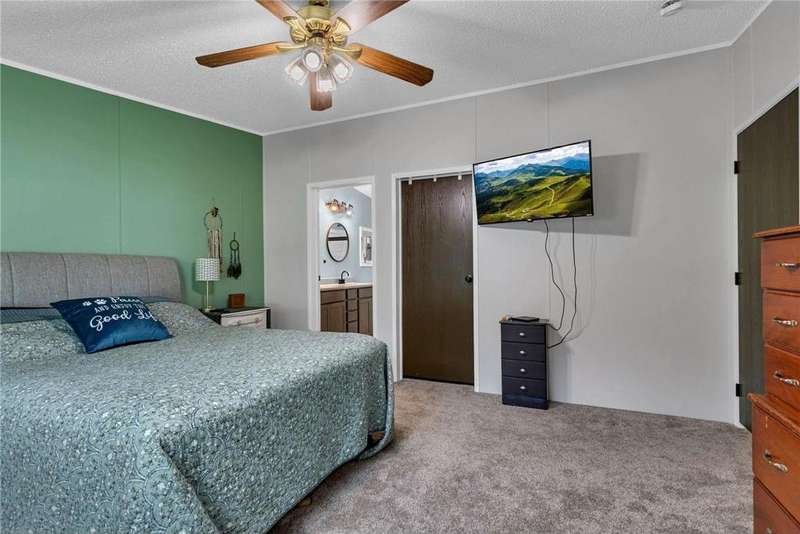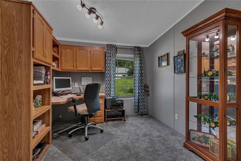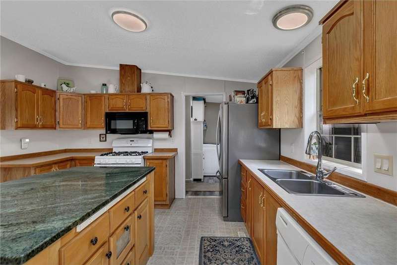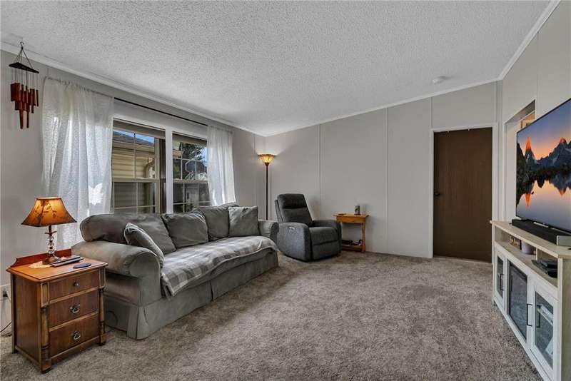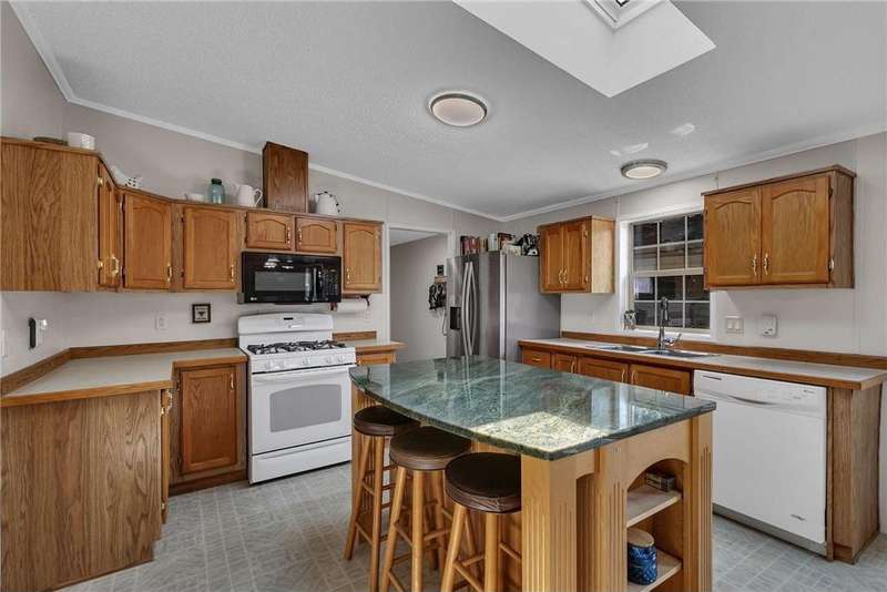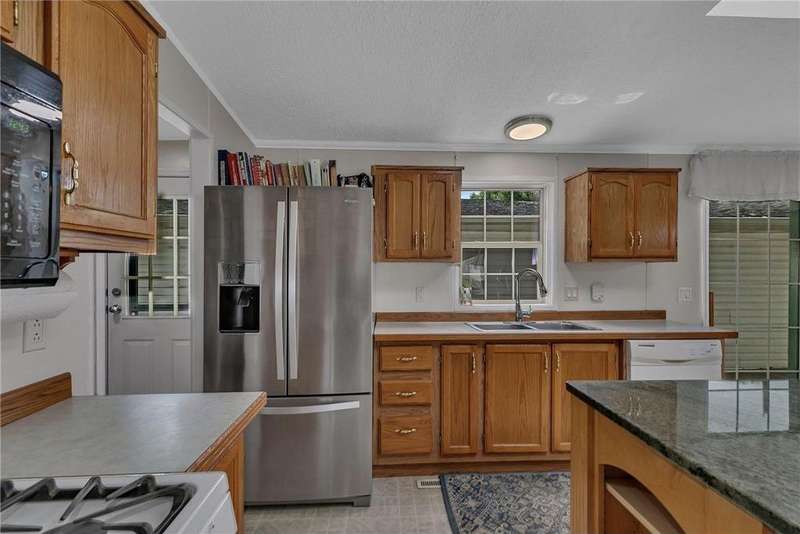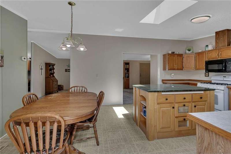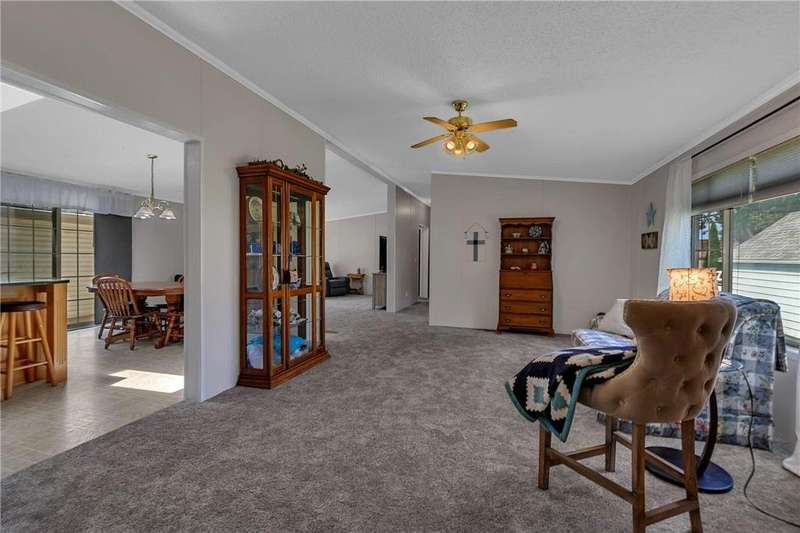 Welcome home! Everything you need is on one level here. This home features a spacious living room and great room, all with brand-new carpet and fresh paint throughout. The updated bathroom and laundry room add comfort and convenience, while two new skylights bring in natural light. The exterior is maintenance-free, and the oversized two-car drive-through garage offers openers on both ends along with handy pull-down storage space above. Out back, you’ll find an awesome shed for storage and with bonus room perfect for entertaining or hobbies. Located on a quiet street, this property is within walking distance to the school and downtown—making it as convenient as it is inviting.
