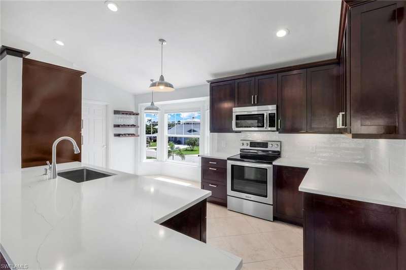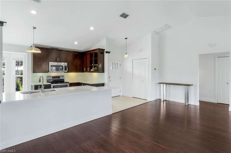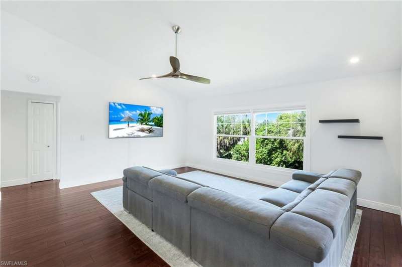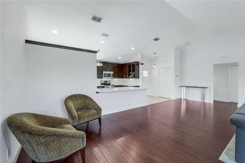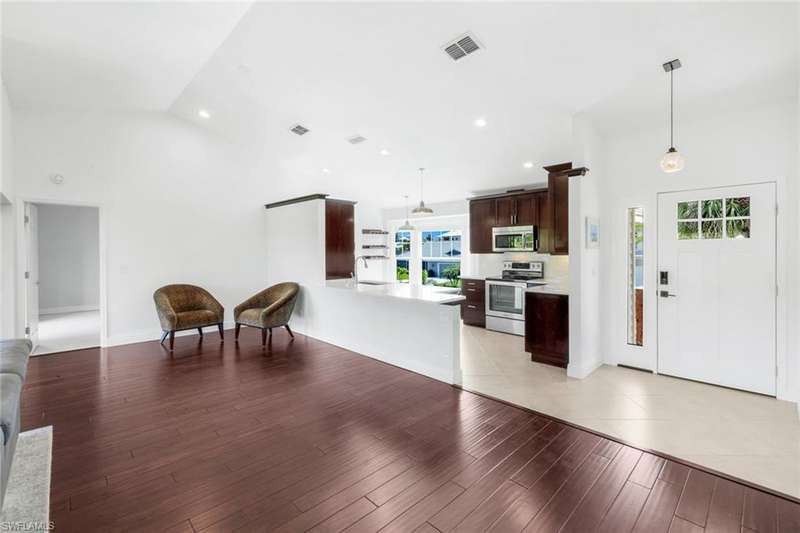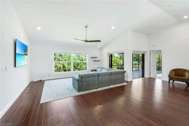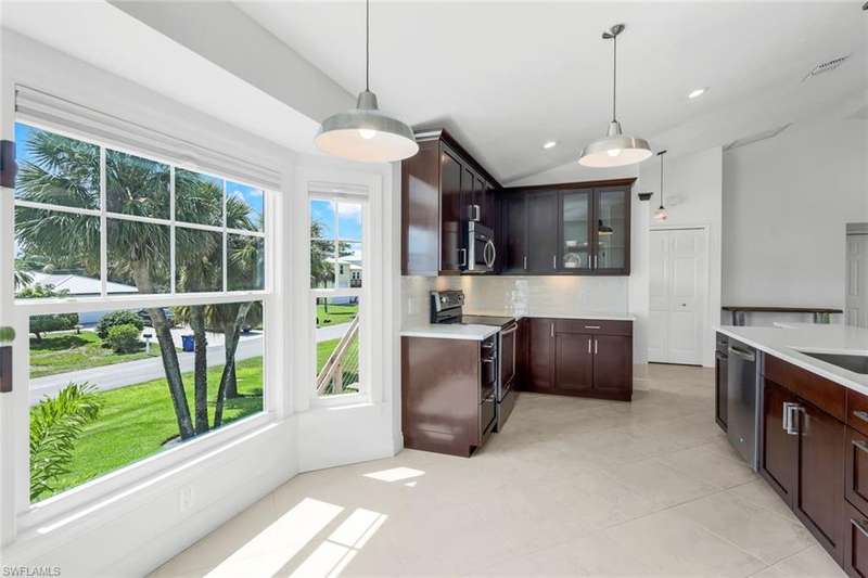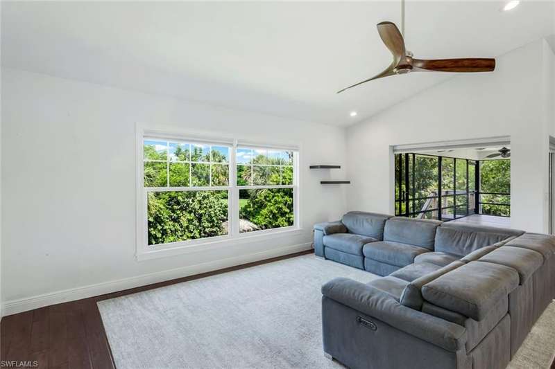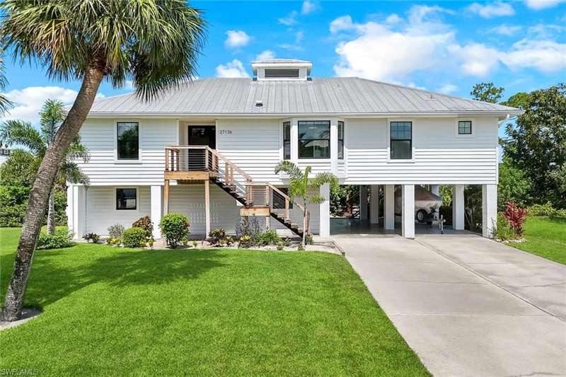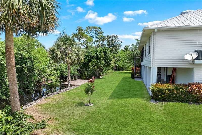 Light & bright, canal-front gulf access home, with recently rebuilt dock (w/ water & electric), has been meticulously cared for. Beautiful wood floors in the main living area and pristine carpet in the bedrooms, new stairs on front and rear of the home. Kitchen has solid wood custom cabinetry, new quartz countertops as well as a breakfast nook space with bay window. Large master bedroom has custom walk-in closet & frameless shower door in the master ensuite. Enjoy peaceful canal views from either the second level 234 Sq Ft screened-in deck or the first level patio. Pocketing sliding glass doors from both the master bedroom and living room lead out to the screened in deck. The laundry room is a great size and downstairs has a 630 Sq Ft enclosed space for storage and/or a workshop. Located just off of W. Terry St which has wide sidewalks, great for biking or walking to Starbucks and Publix, or the dining & shopping at The Promenade at Bonita Bay. Located across the street from Bonita Fa