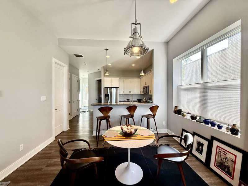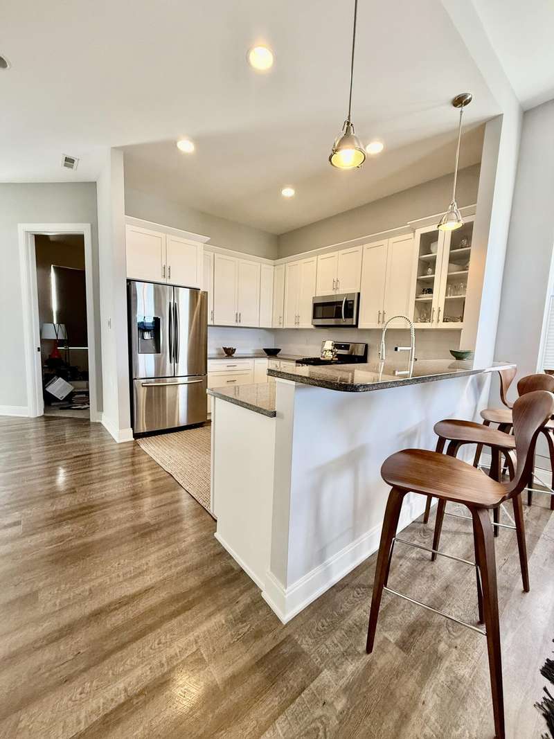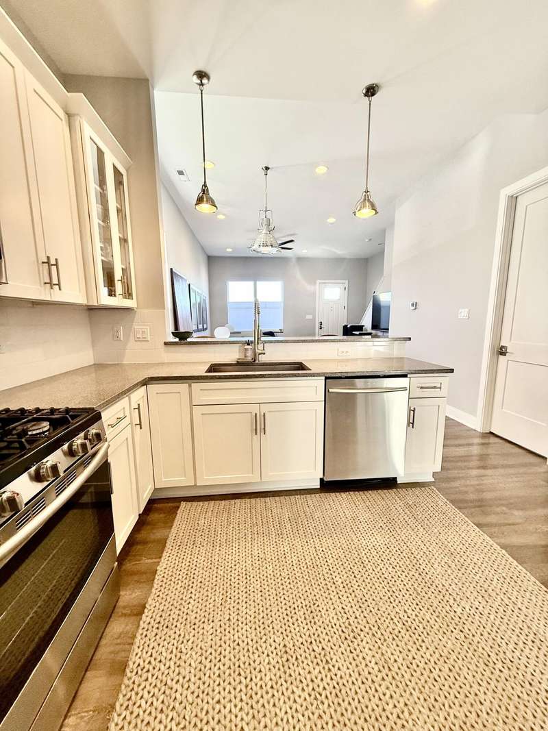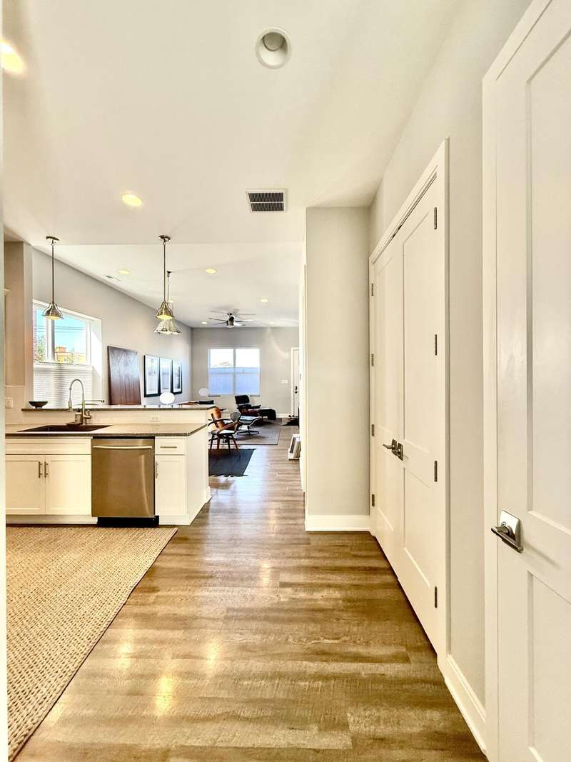 Single owner well maintained luxury Chicago-style townhome in the heart of Crown Point! This spacious 3 bedroom 3 bath townhome is not like any of the other units with its exclusive custom finishes. The kitchen features a breakfast bar with vaulted cabinets, quartz counter-tops, all stainless steel Samsung appliances, with soft- closing drawers and beautiful subway tiling. Features a large main floor bedroom and main floor bath. Make your way upstairs where you will find 2 bedrooms both with there own private bathrooms and custom shelving and millwork in all closets. The primary suite has a walk-out balcony a great place to relax, unwind or read a book! All windows have custom window treatments. Other upgrades include rigid conduit and copper piping for pluming above grade.
