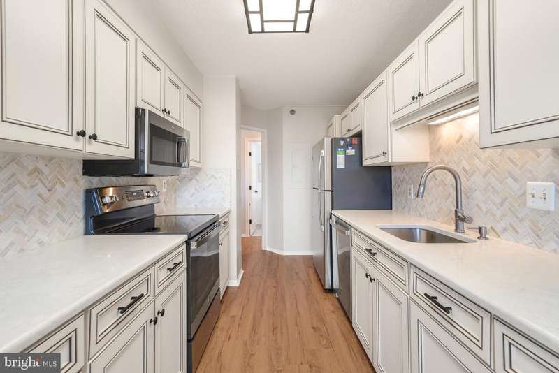 Esteemed gated 55+ community with resort living offers every amenity imaginable. Rarely available , with an abundance of space, 3 bedroom , 2.5 bath " M " model with garage parking # 70. Step inside to discover all the designer features !! Kitchen with stainless appliances, tile backsplash, table space, upgraded cabinets, quarts countertops and opens to the spacious sunroom with floor to ceiling windows. Great for relaxing with friends /family , reading or having morning coffee. Entertain guests in a separate dining room or unwind in the generous size living room and opens to the sunroom. Entire condo has luxury vinyl floors, remodeled bathrooms, new washer/dryer and tons of closet space . Primary bedroom can fit a king size bed and has a walk-in closet and additional closet. Additional 2 bedrooms are very spacious too. Come live the leisure World lifestyle with tons of activities: 18 hole golf course, tennis and pickelball courts, fitness center, restaurants, tons of clubs to join. indoor/outdoor pools, shuttle service and the list goes on...... Million dollar view in the Penthouse !!!