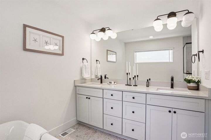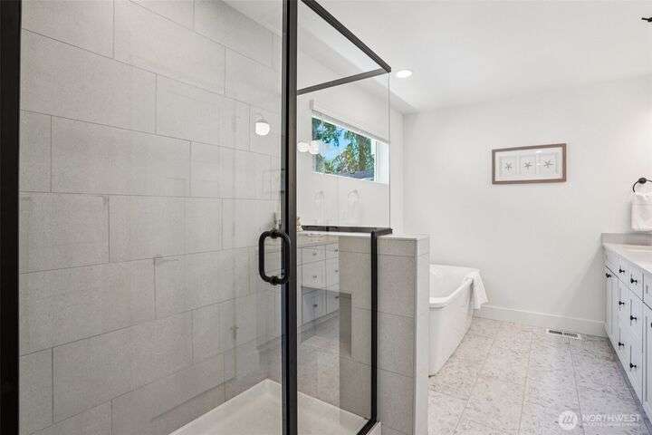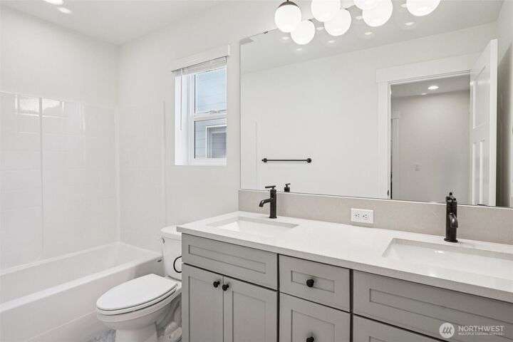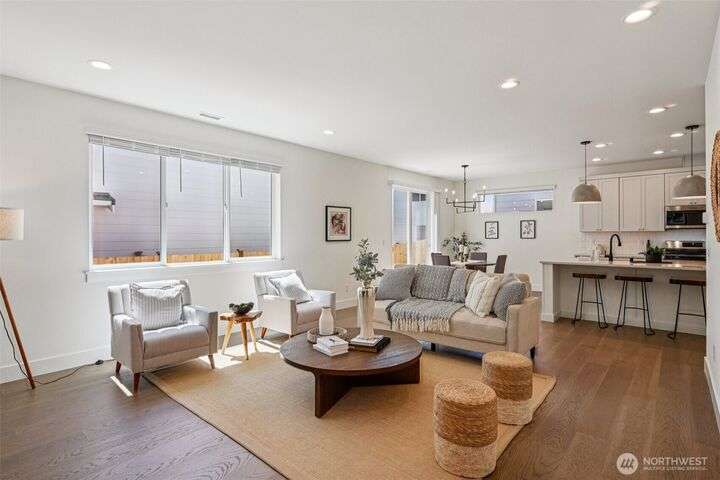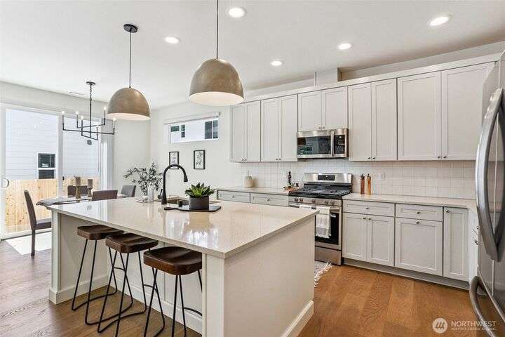 4.99% 30-yr CONV with builder $50,000 rate buydown w/ preferred lender. New construction in Edmonds’ Esperance neighborhood. This 4-bed home blends bright, airy design w/ thoughtful open-concept layout. Main living area anchored by gas fireplace w/ floor-to-ceiling stone surround. Kitchen features oversized quartz island, bar seating, matte black fixtures, white shaker cabs, SS appl, gas range & walk-in pantry. Dining area flows seamlessly to the private, fully fenced yard—ideal for entertaining. Spacious Primary Suite has walk-in closet & 5-pc bath. Add’l beds + loft off the landing provide flex space for WFH or play. 2-car garage w/ EV charging, wide-plank LVP, plus builder warranty. Mins from the Bowl, shops, parks, HWY 99 & I5.