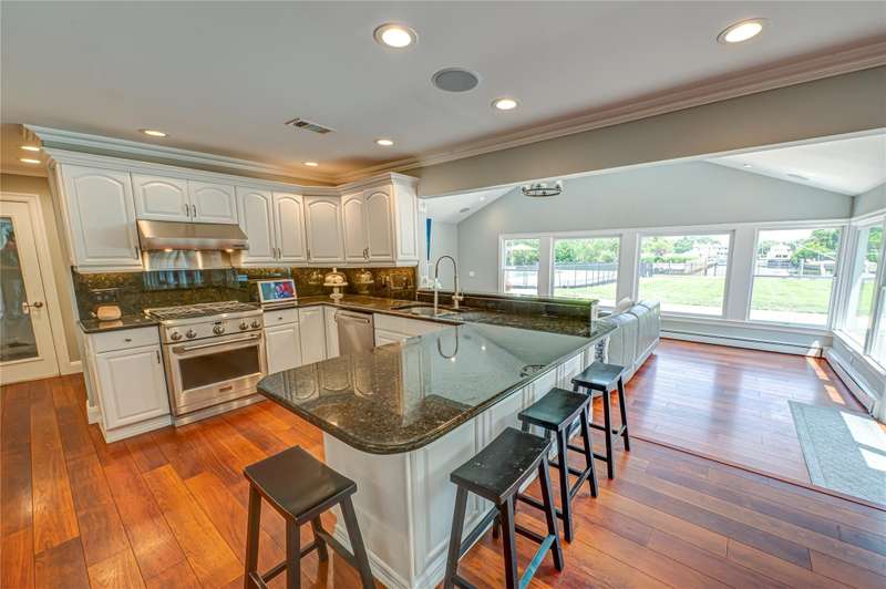 Located in the exclusive, gated community of The Moorings, this exceptional Farm Ranch offers 3,105 square feet of thoughtfully designed, open-concept living space on an expansive 0.96-acre waterfront parcel. From its prime position on a wide “T” canal to its brand-new 151-foot bulkhead, this home is a dream for boating enthusiasts—bring the B-I-G boat and enjoy easy access to the open water right from your backyard. The home’s layout blends comfort and style, perfect for everyday living and elegant entertaining. Step outside to discover a resort-style backyard complete with a brand new 40' x 20' in-ground pool, a raised masonry patio, and a full outdoor kitchen—an ideal setting for summer gatherings, quiet evenings, or hosting on a grand scale. In addition to the main living area, the home offers 1,651 square feet of crawlspace for added functionality and storage, along with a 449-square-foot garage. This is a truly unique offering in one of Long Island’s most coveted waterfront communities, where luxury living meets coastal charm. Whether you're seeking a year-round residence or the perfect retreat, this home delivers the ultimate Moorings lifestyle.