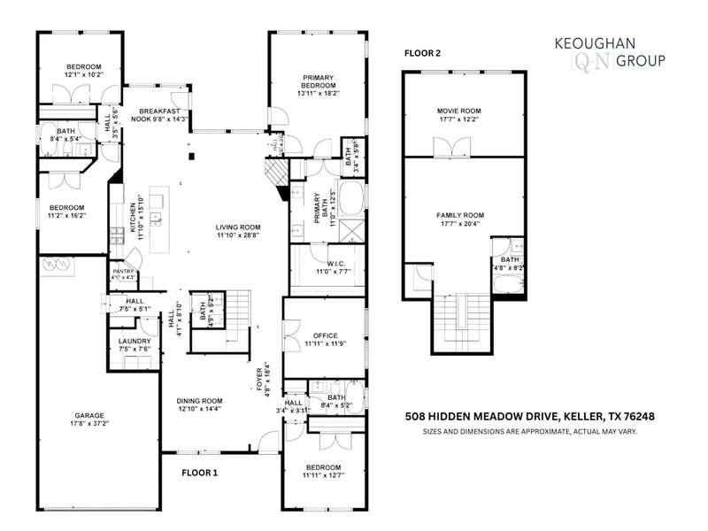 Welcome to 508 Hidden Meadow Drive, a stunning home located in the highly desirable Sanctuary neighborhood of Keller. This residence offers 3,282 square feet of thoughtfully designed living space with four bedrooms and four-and-a-half bathrooms. Positioned on a corner lot adjacent to a greenbelt, the home provides both privacy and beautiful natural surroundings.Inside, the open floor plan creates a seamless flow between the main living areas. The great room features a cozy fireplace and large windows that fill the space with natural light. The gourmet kitchen is a chefs dream, complete with granite countertops, stainless steel appliances, double ovens, a gas cooktop, and an oversized island thats perfect for casual dining or entertaining. A formal dining room provides an elegant setting for gatherings, while French doors open to a private office ideal for working from home.The primary suite offers a peaceful retreat with a spa-like bathroom that includes dual vanities, a soaking tub, a separate shower, and a spacious walk-in closet. All bedrooms are conveniently located on the main level, while upstairs youll find a game room, media room, and a full bathroomideal for family fun or hosting guests.Outdoor living is just as impressive, with a covered patio overlooking the backyard. The stonework detailing and fenced yard provide both charm and privacy, making it a perfect space for relaxing or entertaining year-round.Life in the Sanctuary neighborhood offers residents a welcoming community feel with quiet streets, beautiful green spaces, and quick access to nearby shopping, dining, and recreation. The home is also part of the highly acclaimed Keller ISD. Incredible location with nearby parks, golfing, pools, sports courts, and more amenities throughout the area.This home combines comfort, elegance, and convenience in a prime location. With its corner lot, greenbelt views, and locational convenience, 508 Hidden Meadow Drive is truly a rare find!