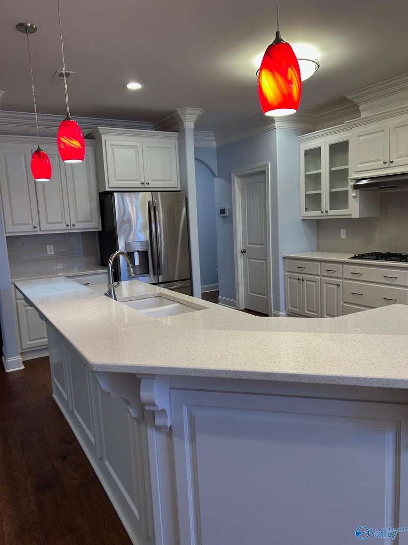 Move in available NOW. Beautiful full brick Custom home features 2797 sq ft w/ 3 BR and 2.5 BA. 9-10 foot ceilings, loads of crown molding and wood floors! Kitchen; granite countertops, a breakfast bar, large eat in area and stainless steel appliances! Isolated primary bedroom w/ glamour bath; dual sinks, soaker tub and separate shower ( and access to the back porch). Living room has gas fireplace. Screened in Porch covered patios make this the perfect home. No smoking