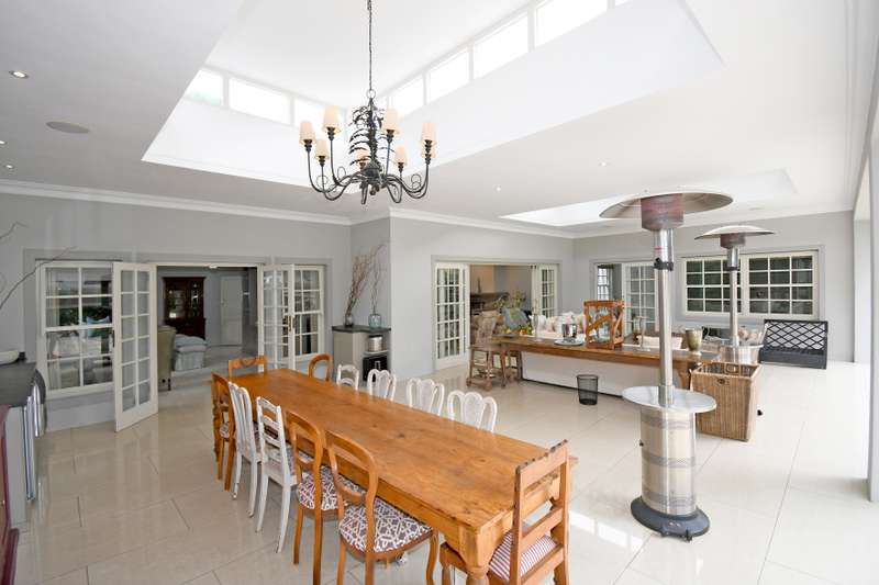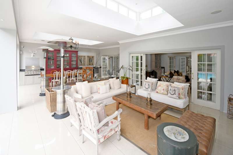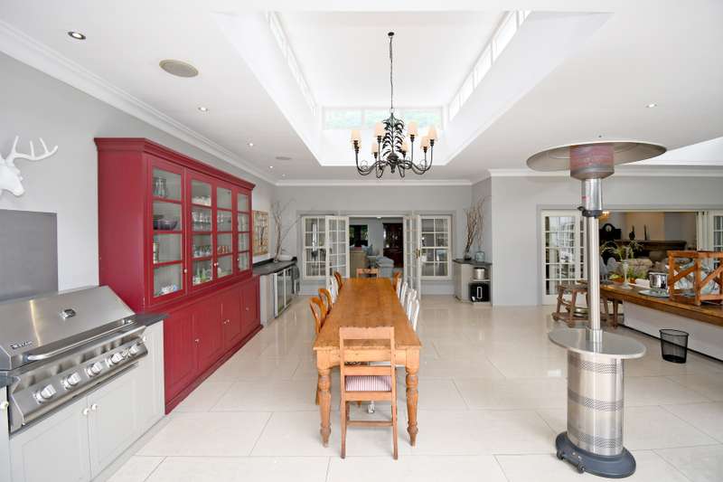 This beautifully appointed home is a rare opportunity to secure a residence that blends timeless elegance with functional family living. Perfectly suited for both everyday life and grand entertaining, This property offers a wealth of well-considered spaces. Fully north facing, filled with light, 700m2 home under roof, designed to bring the outside in. The entrance hall ,featuring a charming 2000 bottle wine cellar, sets the tone for the sophistication found throughout. The heart of the home is a superbly equipped kitchen with a scullery and pantry, flowing easily into the dining room with fireplace, for effortless entertaining. The home boasts a variety of living spaces, including a TV/ family room, a refined formal lounge with a statement fireplace, opening to the covered , expansive patio overlooking the beautiful landscaped garden- ideal for al fresco dining and family relaxation. Offering 4 well-proportioned bedrooms all en suite, or the flexibility of 3 bedrooms and a guest suite with lounge/study area, opening to the garden. The layout accommodates both privacy and togetherness. A dedicated study and a gym or playroom opening to the garden allowing you to tailor the space to your family needs. The luxurious master suite opens to a tranquil courtyard, a custom-designed dressing room, and a full en-suite bathroom with a separate toilet., creating a private retreat within the home. Additional highlights include: Comprehensive security ; full electric fencing, perimeter beams, and 22-camera CCTV system ensuring complete peace of mind Top quality finishes throughout Heated pool with an automatic pool cover Automatic blinds on the patio to keep the rain out Ice machine on the patio Gas stove and an electric oven Outside laundry possibility Back-up generator Under floor heating Large level lawn in the front of the house A domestic suite with a full kitchenette and full bathroom A large garage offering exceptional storage space Firewood shelves in the garage Off street parking