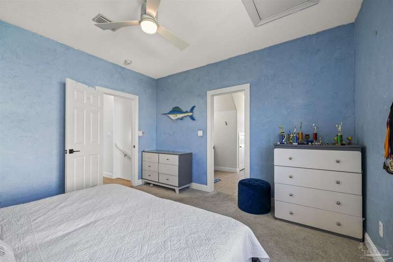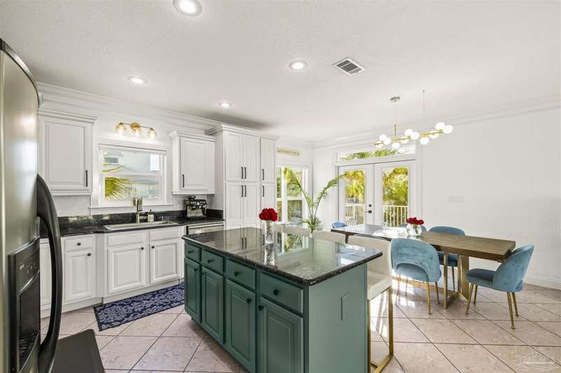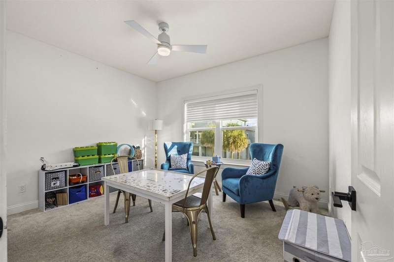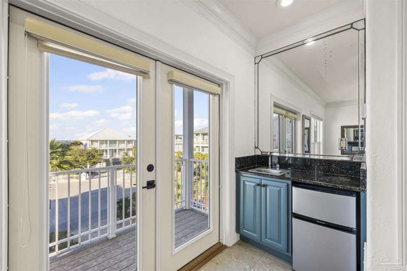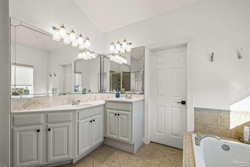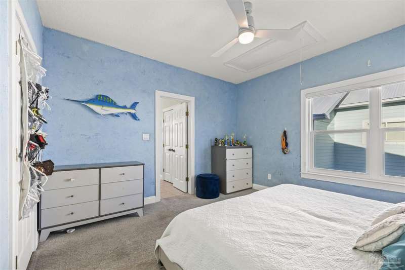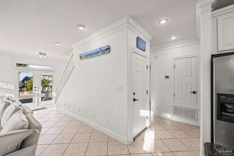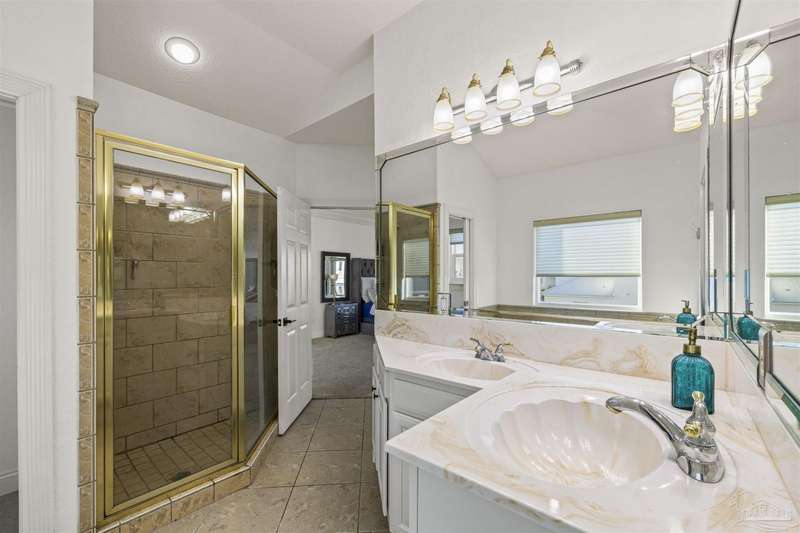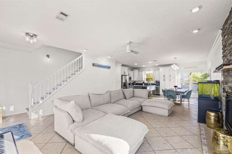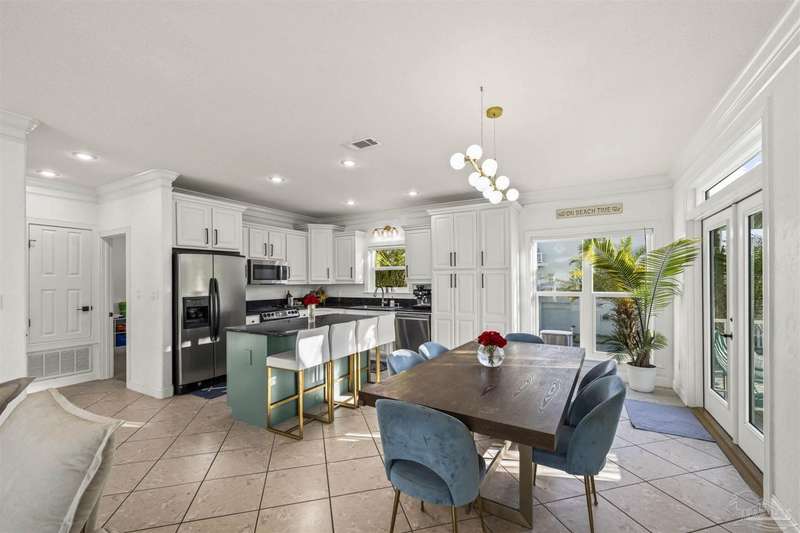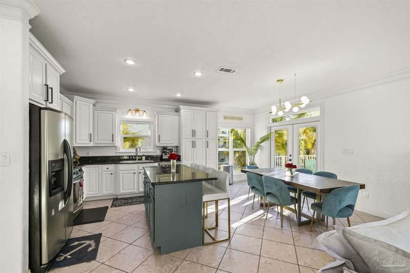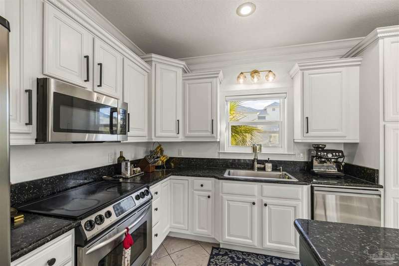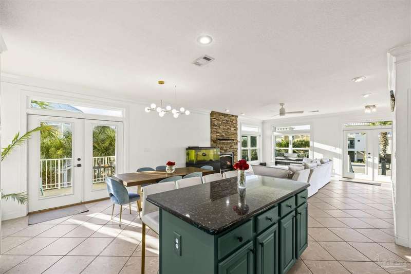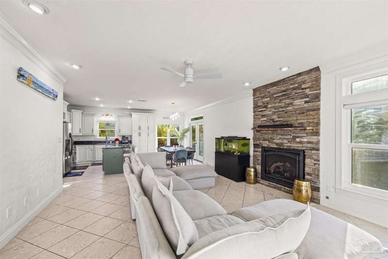 Beautifully updated and move-in ready, 22 Seashore Dr offers a rare opportunity to own a waterview retreat in the exclusive Seashore Village community of Pensacola Beach. Nestled on a quiet cul-de-sac just steps from the Gulf and Santa Rosa Sound, this 4-bedroom, 3-bathroom home blends coastal charm with thoughtful upgrades and panoramic water views. Built in 2002 and meticulously maintained, the home features hurricane-rated windows, a metal roof and a freshwater well for irrigation ensuring peace of mind and low-maintenance living. Step inside to an open-concept main level where the kitchen, dining, and living areas flow seamlessly, all oriented to capture stunning sound and Gulf views. The spacious master suite is a true sanctuary, complete with a private balcony, wet bar, and a spa-like bath with a jetted tub. The third-floor laundry room adds everyday convenience, while the oversized garage has plenty of room for a workshop, ample storage, and a bay large enough for boat and golf cart storage. Outdoor living is elevated with access to a private sound-side beach and dock, all exclusive to Seashore Village residents. Enjoy morning walks across the street to the unobstructed Gulf, or walk along the sound to nearby Portofino Island Resort amenities-optional membership includes five clay tennis courts, indoor and outdoor pools, a state-of-the-art gym, and on-site dining. With a no short-term rental policy, Seashore Village maintains a serene, residential atmosphere ideal for full-time living or a second home. Zoned for one of the nation's top-rated Blue Ribbon schools, this home offers both luxury and lifestyle in one of Pensacola Beach's most desirable enclaves.