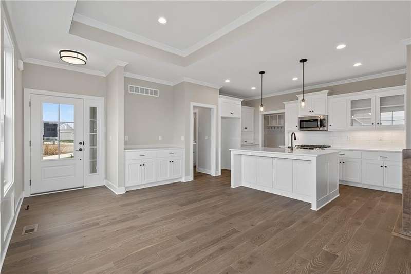 NEW PRICE, AVAILABLE NOW! LOCATION LOCATION...BRAND NEW Twin Villa by Lambie Homes is ready to MOVE IN! Located on lot 62R at the end of the cul-de-sac offers a generous backyard. Quick hwy. access, close to Shawnee Mission park, Lenexa City center, Black Hoof Park, & more. RIGHT SIZE into this smart sleek twin villa, one floor easy living, covered patio, functional/effective home office tucks away behind a pocket door. Kitchen boasts an abundance of cabinetry, coffee Bar/appliance garage, walk-in pantry, 5-burner gas cooktop. The home is filled with natural light. Primary bedroom flows to the primary bath with oversized walk-in shower, private toilet area, double quartz vanity, flows into generous-size master closet, then out to the laundry area for sensible living flow. The lower level offers additional bedrooms and a recreation room that provides space for guests, or returning college-age kids, a craft room, exercise room, scrapbooking room, or multitude of other functions. LARGE LOT! Pictures are of former model.