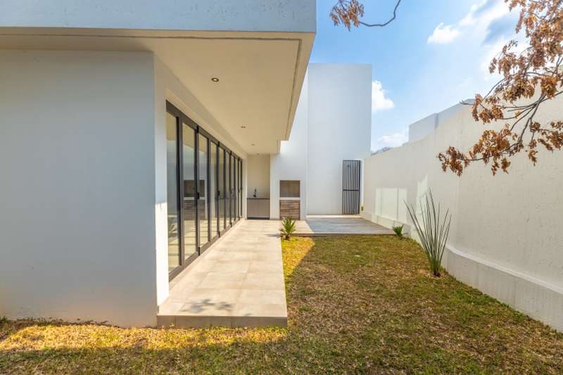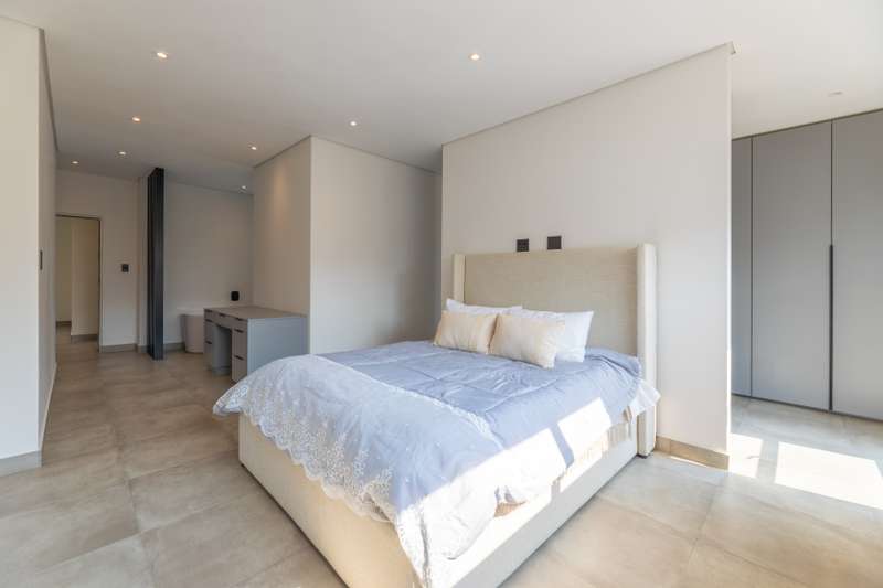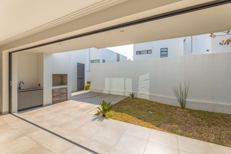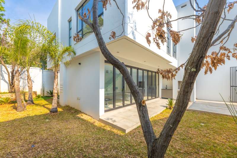 Set within Johannesburg’s most exclusive and expensive suburb, this 318sqm residence is one of the flagship homes in a new Sandhurst development — where scale, sophistication, and location meet in perfect balance. With a focus on space, light and flow, the home unfolds in clean architectural lines and warm, textural finishes. The double-volume entrance sets the tone, leading into an expansive open-plan layout where the lounge, dining and kitchen areas are proportioned for grand-scale entertaining and day-to-day comfort alike. Sliding doors open onto a deep covered patio overlooking a large wraparound garden — one of the most generous in the complex — allowing for outdoor living that feels both relaxed and considered. The kitchen is elegantly designed with a Caesarstone island, bar counter seating, soft-close cabinetry, and a Smeg gas and electric cooker that blends performance with style. A scullery tucked discreetly behind keeps the main space clear and functional. The flow throughout is seamless, offering a sense of openness without losing the definition of each space. Upstairs, four beautifully finished en-suite bedrooms are accompanied by a generous pyjama lounge and a built-in study nook. The two north-facing bedrooms are sunlit and inviting, while all bathrooms feature timeless fixtures, and spacious showers with curated tilework. The home also includes a full staff suite, a guest cloakroom on the ground floor, a double garage with direct access, and full 24-hour guarded security. With its generous garden, meticulous detailing, and sought-after location, this is a home that meets luxury expectations in every way. And in Sandhurst, it’s not just about the home — it’s about the world at your doorstep. From the world-class retail and dining of Sandton City and Hyde Park Corner to the city’s top private schools including Redhill, Crawford, and St David’s, everything is close at hand. The Sandton CBD, Gautrain station and key transport routes offer seamless connectivity, while nearby medical facilities, boutique gyms, and fine dining options complete a lifestyle defined by access and ease. In every sense, this address stands at the pinnacle of Johannesburg living.