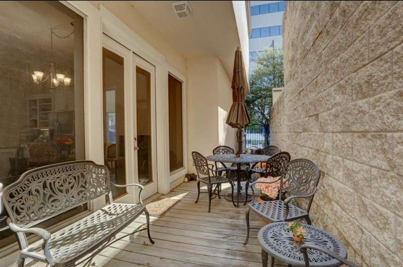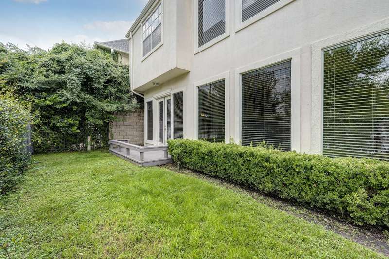 Located in Upper Kirby, this townhouse offers a rare combination of first-floor living, private outdoor space and in a gated community! The first-floor features wood floors and a soaring two-story ceiling in the living room, creating a bright and inviting atmosphere. The adjoining dining room flows to the porch and gated grassy yard that faces the street allowing for extended views and natural light. The island kitchen includes a new gas cooktop (2025) and eat-in breakfast area that opens to the side patio. Upstairs, you'll find three bedrooms and a walk-in utility room with sink and storage cabinets. The large primary suite features wood floors, hug walk-in closet, and two separate bathrooms! The large air conditioned attic is like another room - finished out with carpet and sheetrock! Located just minutes from some of Houston's best restaurants and shopping! Available for sale or lease. Make an appointment to tour this home today!