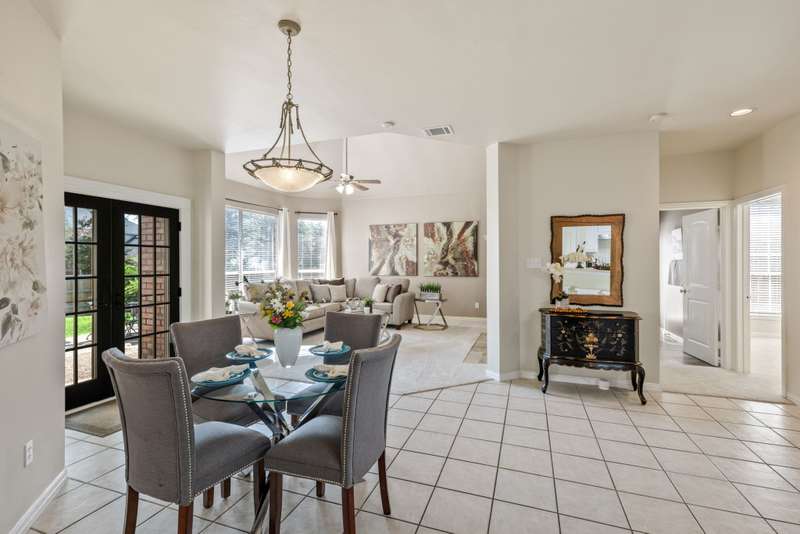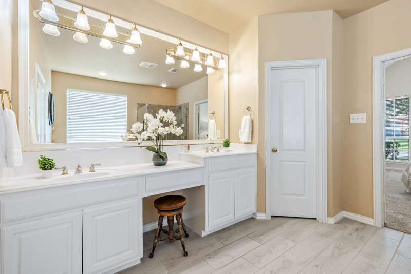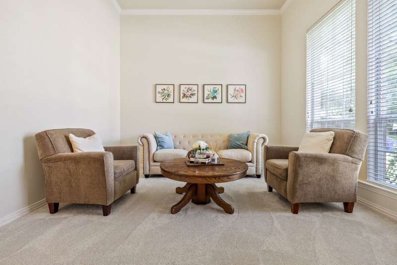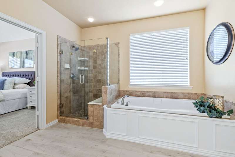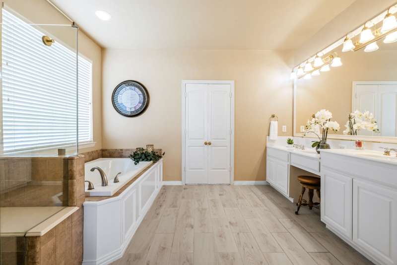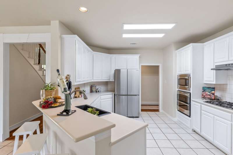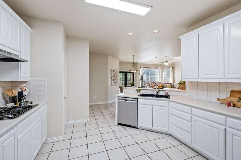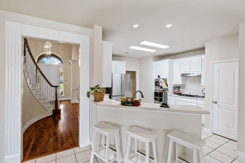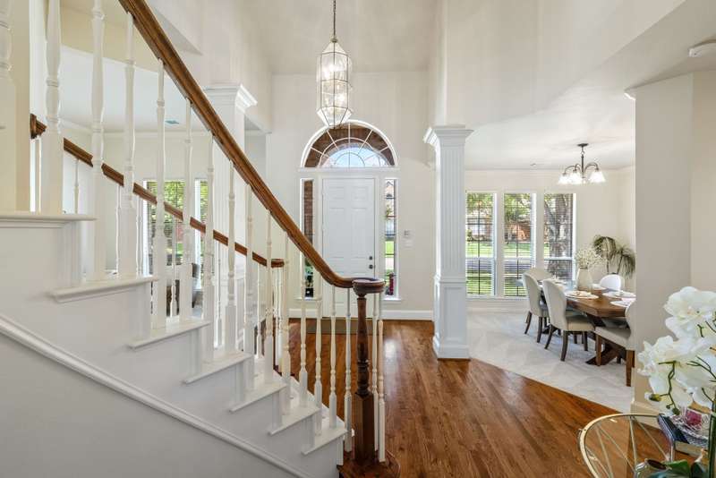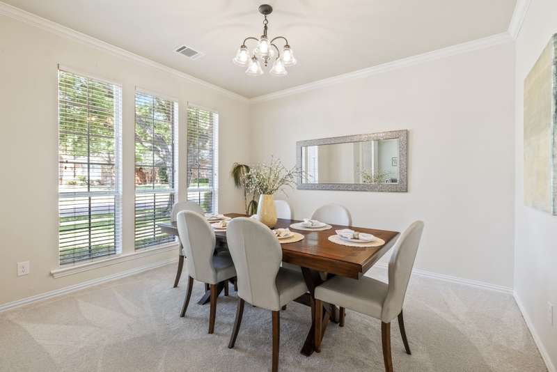 Welcome to Stunning, elegant, and sunlit North facing home, offering five bedrooms, three bathrooms, three living areas, and three car garage, abundance of natural light nestled in the heart of exclusive highly desirable Knolls at Russell Creek and exemplary Plano ISD Schools.An elegant grand entry with soaring ceilings and rich wood flooring welcomes you into this impeccably maintained home. The versatile formal living room accented with crown molding offers the option to serve as a study, while the formal dining room offers the perfect setting for hosting elegant dinners and entertaining guests. The main level also features a spacious primary suite and a guest bedroom with an adjoining full bath- ideal for use as an in-law suite. The spacious family room featuring gas log fireplace with an elegant mantel and wall of windows that provide abundant natural light and picturesque views of the private backyard. It flows seamlessly into the generous gourmet cook's delight kitchen and breakfast area, with double French doors providing direct access to the back yard. Counters are adorned with Corian countertops, breakfast bar, stainless steel appliances, gas cooktop, double ovens and dishwasher. Escape to luxury in secluded and expansive primary retreat offering a sitting area and luxurious primary bath featuring garden tub, dual vanities, a separate shower with a seamless glass door, and a spacious walk-in closet with built-ins.Upstairs, you will find three generous sized bedrooms, a Jack and Jill bathroom with separate vanities, and a spacious game room- perfect for movie nights, entertaining or lounging.Other amenities and upgrades include: New Roof September 2025, Carpet 2025, primary bedroom and closet carpet and bathroom tiles (2022), interior paint 2025 and 2020, kitchen SS vent hood 2025, 2nd floor hall bath Pergo waterproof wood flooring 2025, 60 gallon hot water heater 2023, replaced coils in 5 ton first floor A/C 2022, Bosch dishwasher 2019, primary bathroom shower/ tub, tile floor, frameless shower door and toilet 2018, downstairs guest bath remodeled 2017, downstairs 5-ton Lennox 21 seer A/C with thermostat 2011, Kitchen SS microwave, double oven, gas cooktop 2011, 2nd floor 3-ton Lennox 18 seer A/C with thermostat 2010, 50 amp breaker in garage for welder and car charger (Tesla compatible) 2020, , Jeld-Wen patio French door 2014, replaced fence with metal poles, pickets and stain 2021, solar screens south and west side 2013, replaced kitchen light box with LED lights 2025, sprinkler system, lots of storage much more.The sparkling Community swimming pool, a fun-filled playground, and scenic jogging trails are all just a few doors down.Prime location with quick access to DNT, Hwy 121 and Hwy 75, Legacy West, The Shops at Legacy, The Shops at Willow Bend, Stonebriar Mall, shopping, dining and entertainment, much more, Move in ready! A true gem, won't last!.Exclusions: Kitchen Stainless Steel refrigerator, washer and dryer, all staging furniture and accessories.