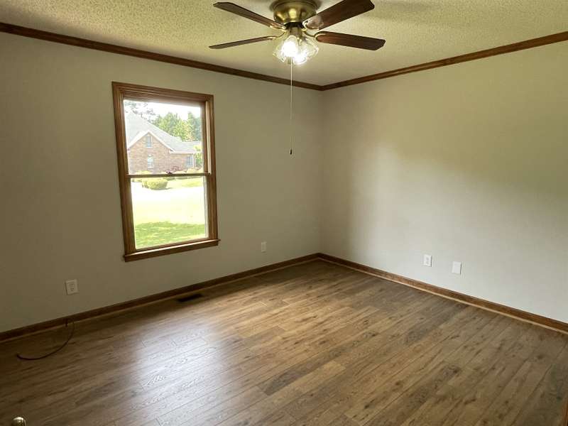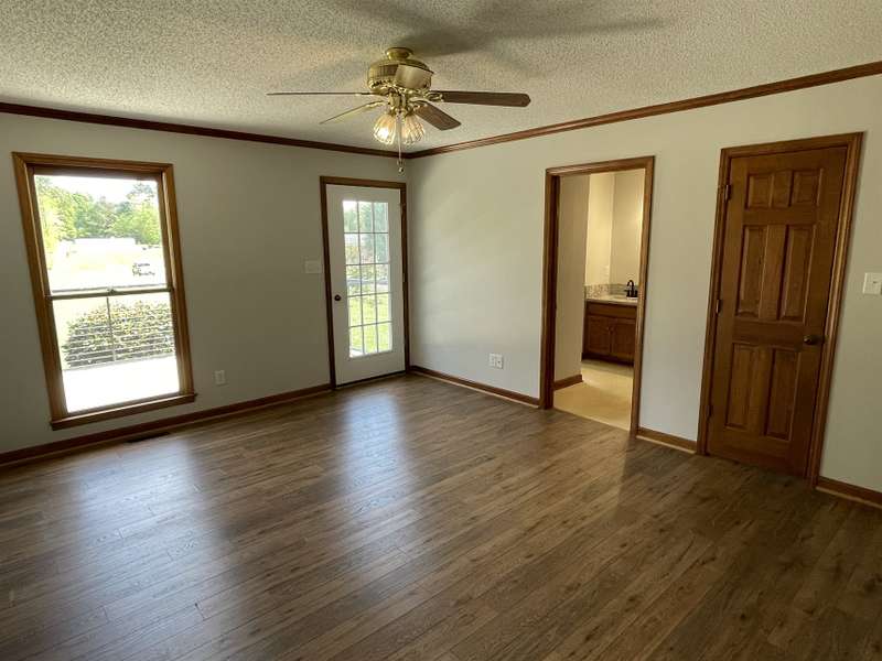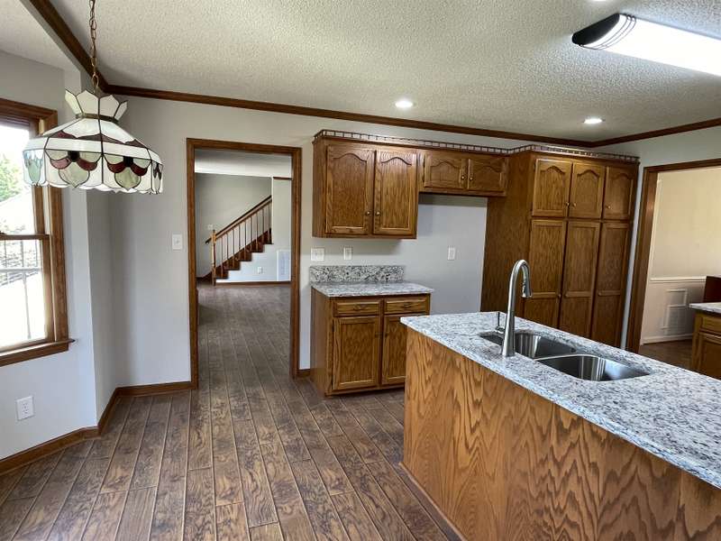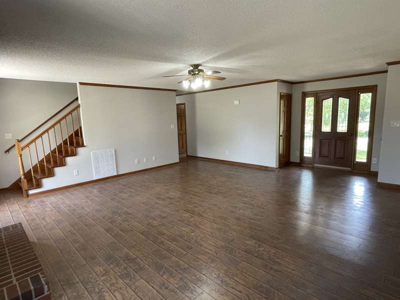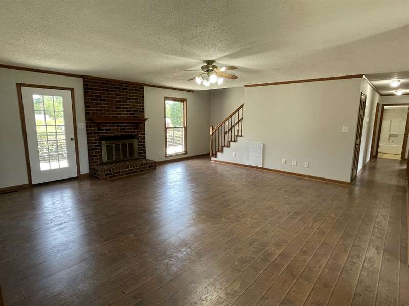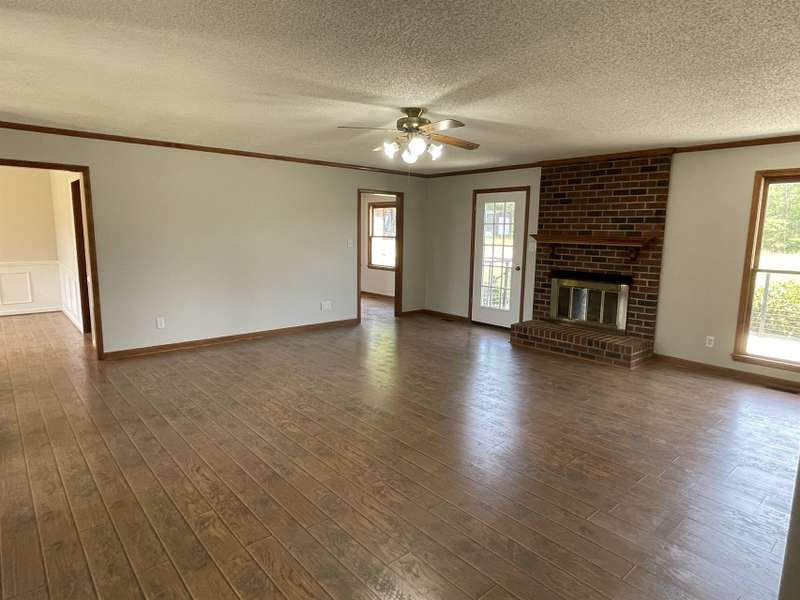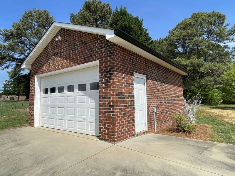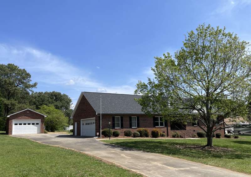Custom built home. Full brick with vinyl gables. Recently added metal rear deck overlooking level 1.13 acres. There's a detached garage/shop with 220 service, plus an attached 2 car garage with wheelchair ramp for easy entry into the mudroom next to a combo half bath/laundry. To the right enter the updated kitchen with bay window breakfast nook, new stainless steel appliances (smooth top stove, dishwasher and microwave), and new granite counter tops. Entertain in the large formal DR with picture-frame wainscoting. Spacious family room w/masonry gas log fireplace. Enjoy the updated plank flooring throughout the living areas and vinyl flooring in laundry and baths. New granite counter tops in all 3 baths. Primary BR has walk-in closet, rear door to deck, and bath with double sink vanity. Entire interior freshly painted, including ceilings. New roof and HVAC 2021! Upstairs find a huge unfinished 2nd floor storage, plumbed for a bath, ready for future expansion. Crawl space strg, too.