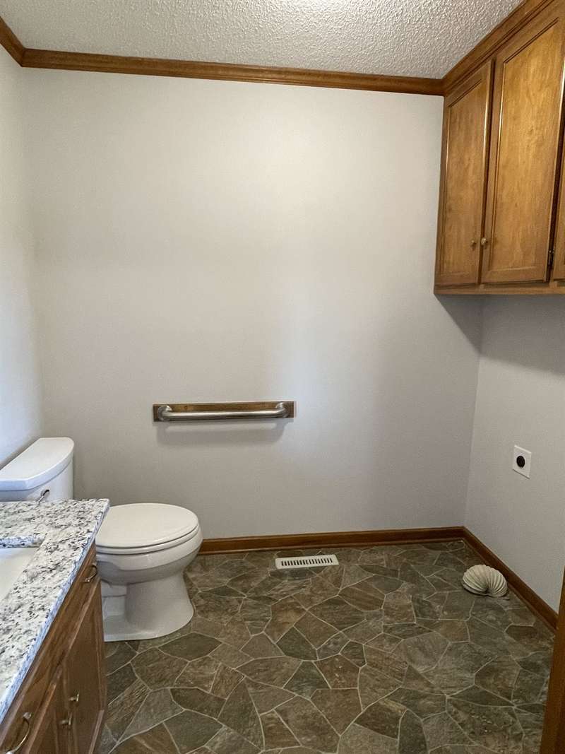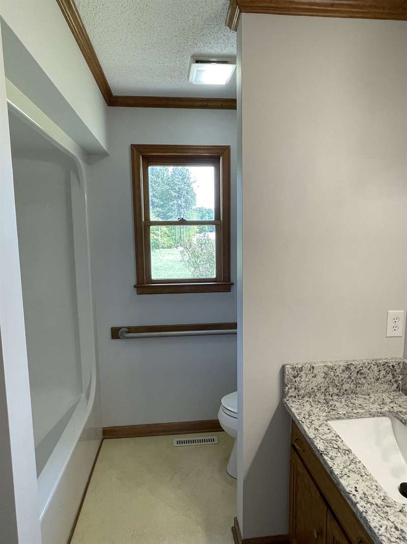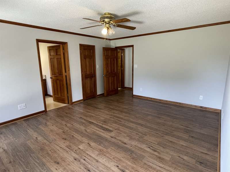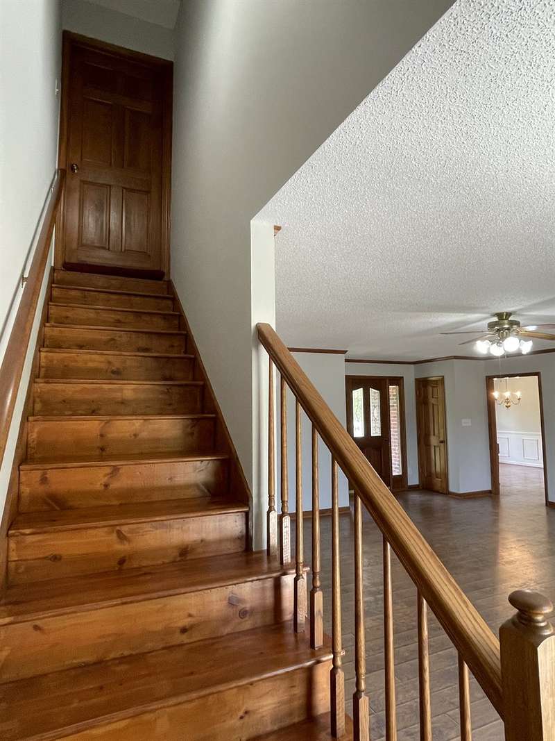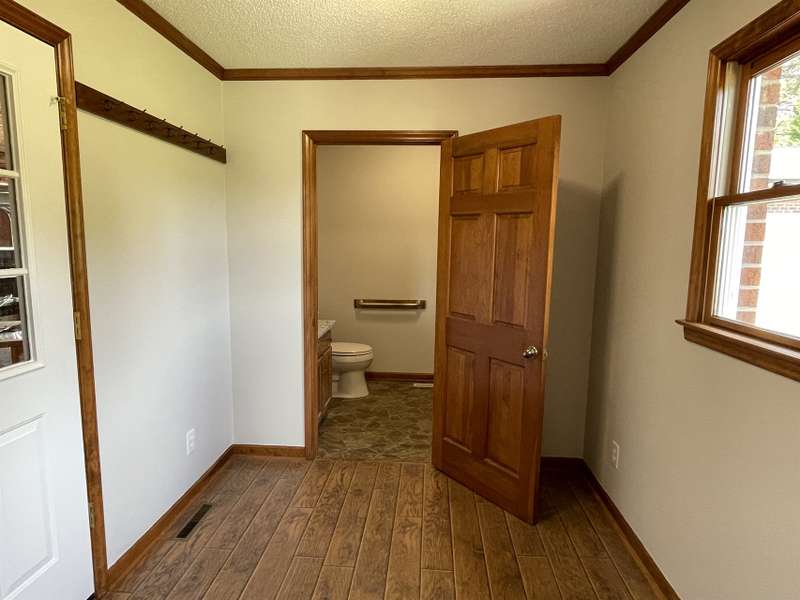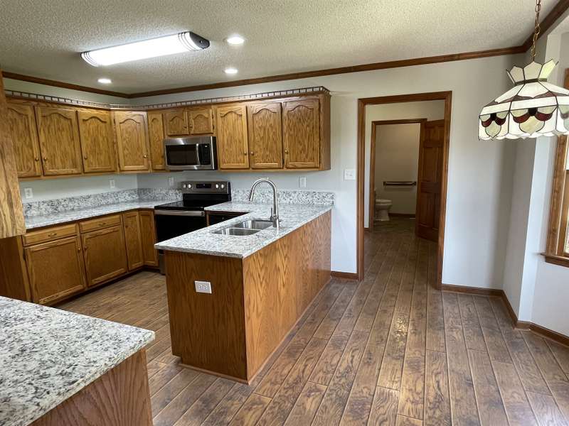 Custom built home. Full brick with vinyl gables. Recently added metal rear deck overlooking level 1.13 acres. There's a detached garage/shop with 220 service, plus an attached 2 car garage with wheelchair ramp for easy entry into the mudroom next to a combo half bath/laundry. To the right enter the updated kitchen with bay window breakfast nook, new stainless steel appliances (smooth top stove, dishwasher and microwave), and new granite counter tops. Entertain in the large formal DR with picture-frame wainscoting. Spacious family room w/masonry gas log fireplace. Enjoy the updated plank flooring throughout the living areas and vinyl flooring in laundry and baths. New granite counter tops in all 3 baths. Primary BR has walk-in closet, rear door to deck, and bath with double sink vanity. Entire interior freshly painted, including ceilings. New roof and HVAC 2021! Upstairs find a huge unfinished 2nd floor storage, plumbed for a bath, ready for future expansion. Crawl space strg, too.
