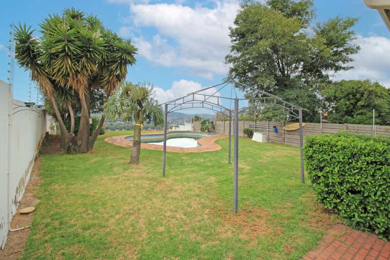 North facing family home on view site. This family home is bright and sunny and opens up to allow the outside in. Comprising 3 large bedrooms with built in cupboards, 2 bathrooms - main en suite plus a guest toilet, a modern kitchen with room for a dining table, a lounge and family room with a built in braai which open out to expansive views and pool. Double garages and additional parking, outbuildings and lots of room for the kids to play and swim. Asking R2.2