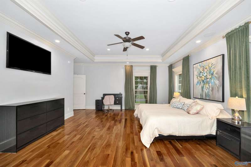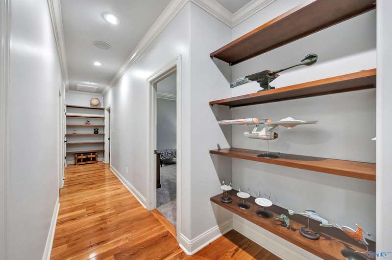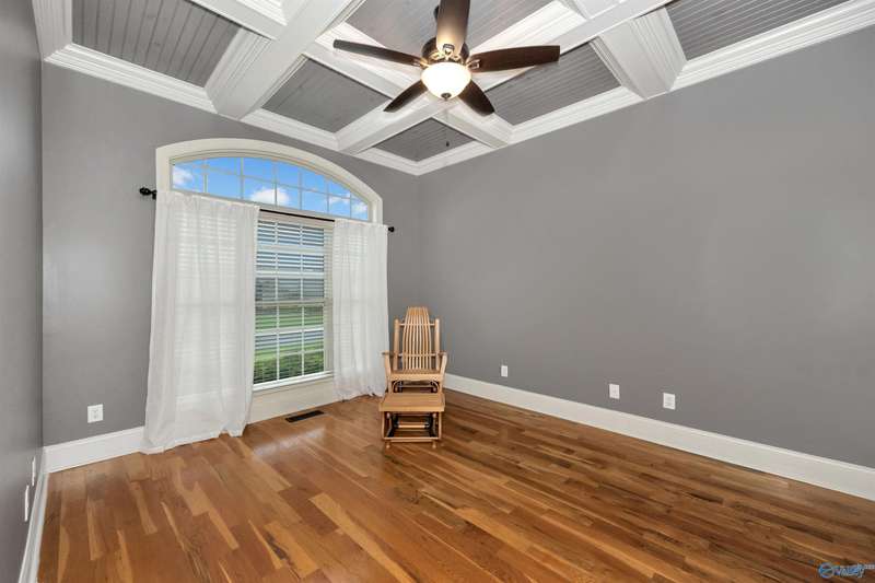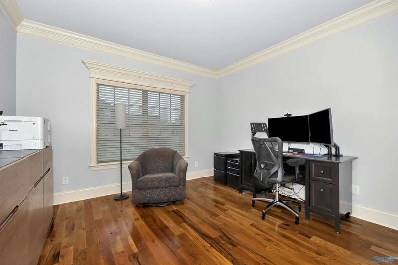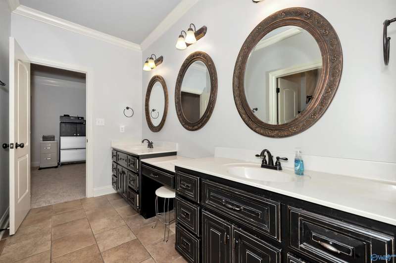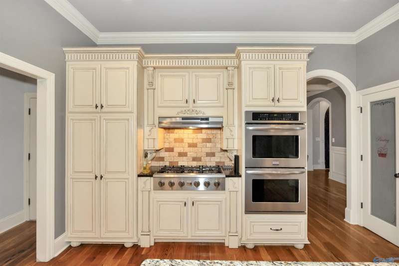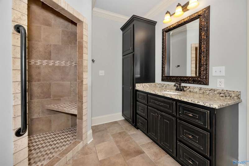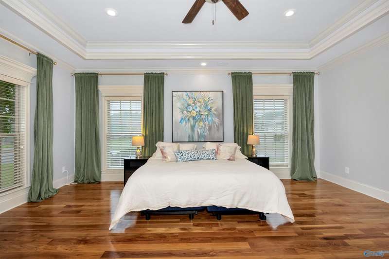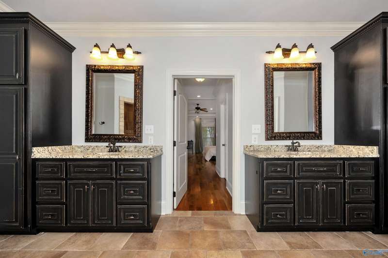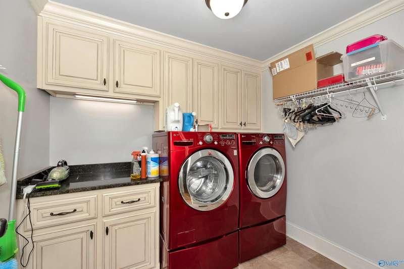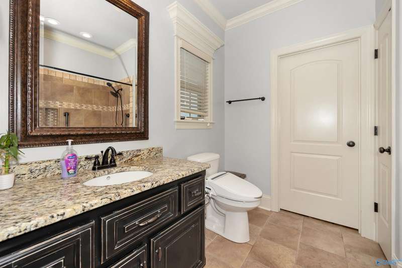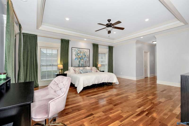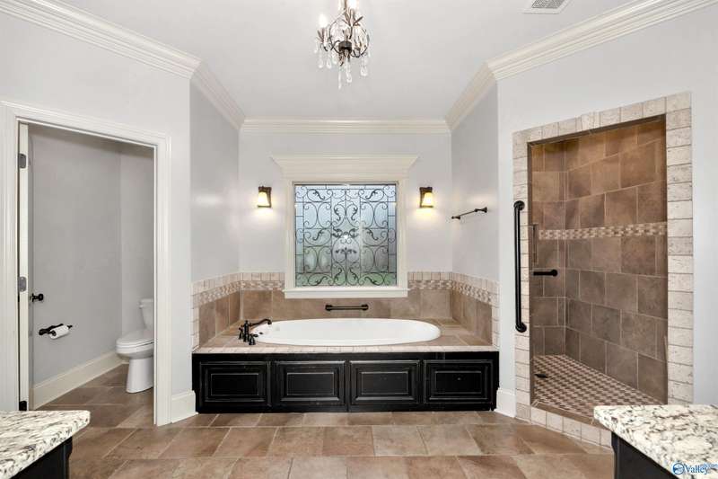 STORM SHELTER- Situated on a LARGE CORNER LOT, this Executive style home offers QUALITY & LUXURY w/ EXQUISITE DETAIL thru-out: Soaring/Decorative COFFERED ceilings, extensive c-molding, wainscoting, elegant fixtures, plantation shutters, HW/ceramic floors, granite, b-splash, custom cabinetry, built in's & more. Dramatic entry leads to OPEN F-PLAN, FORMAL DINING, OFFICE, Chefs kitchen w/ gas cooktop & dbl oven, 2 LAUNDRY ROOMS (1 ON EACH LEVEL), DROP ZONE, Master on MAIN LEVEL w/ grand entrance to glamour bath. 2nd ISOLATED bedroom on MAIN LEVEL (GUEST RETREAT). BONUS/REC/MEDIA room w/ WET BAR. Extended patio w/ HOT TUB overlooks PRIV FENCED backyard! 3 CAR GARAGE w/ elevator assist! NEW ROOF