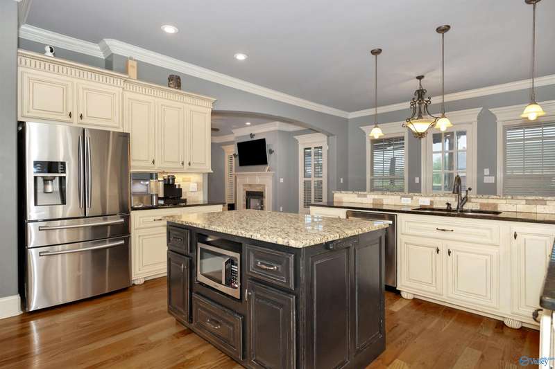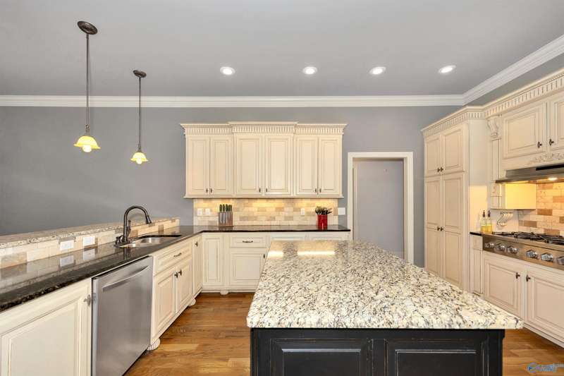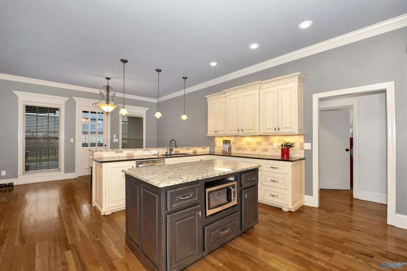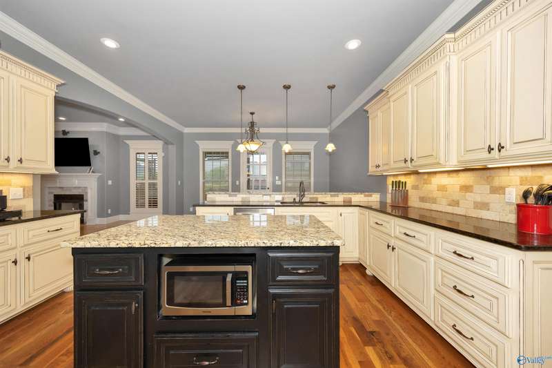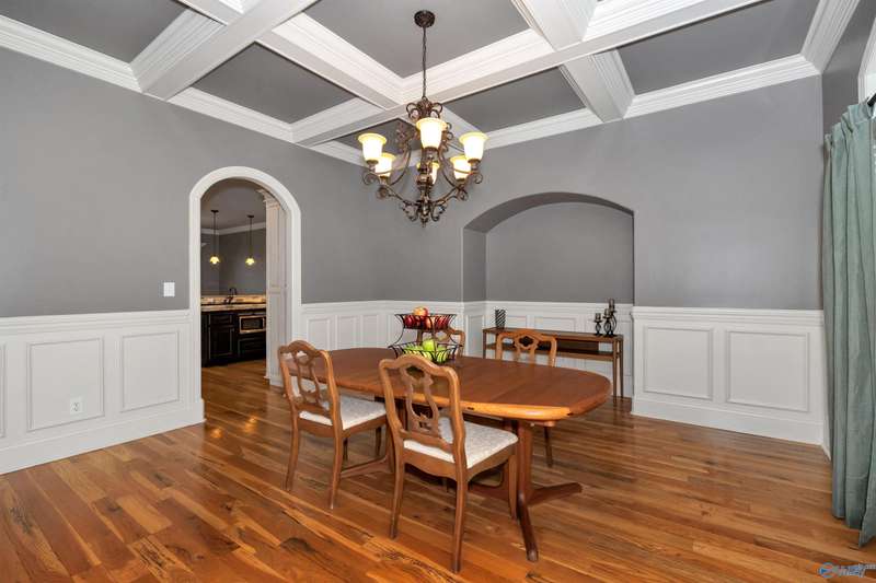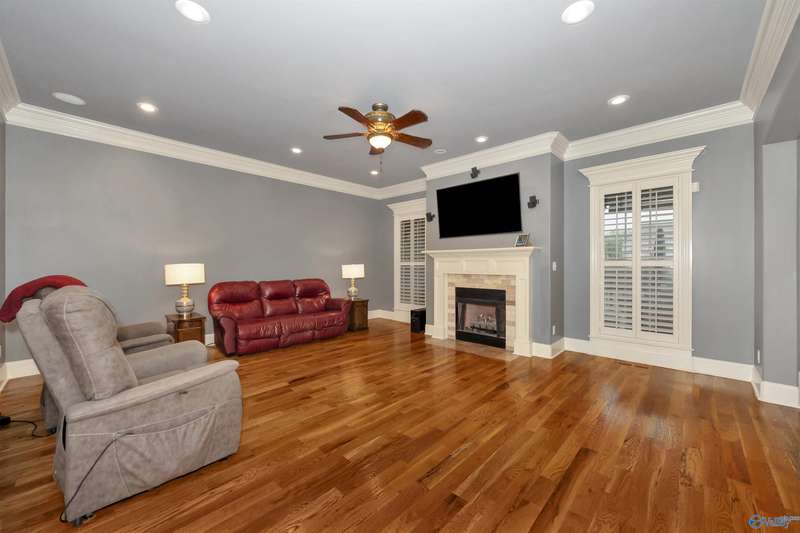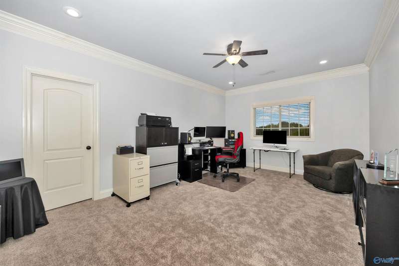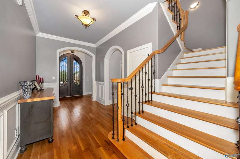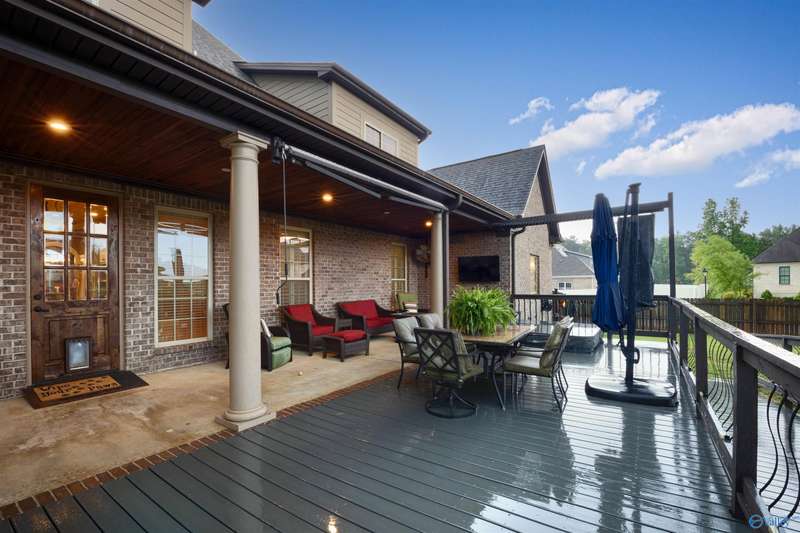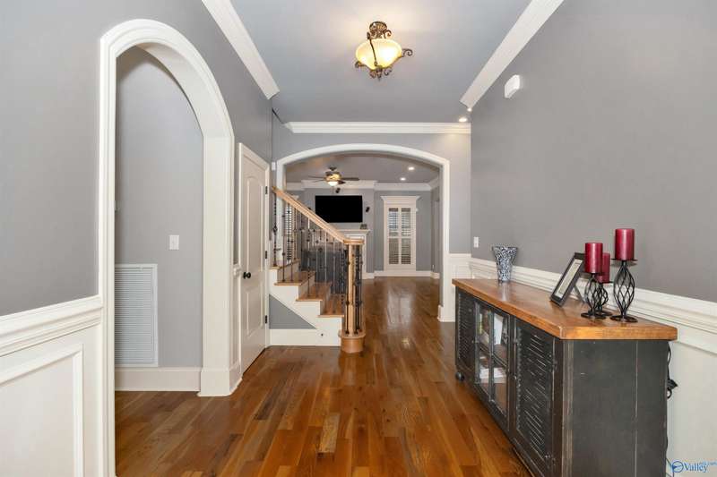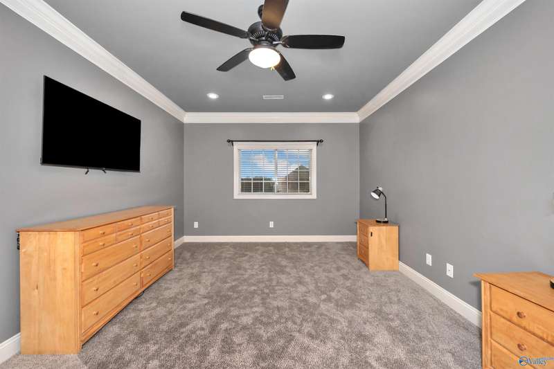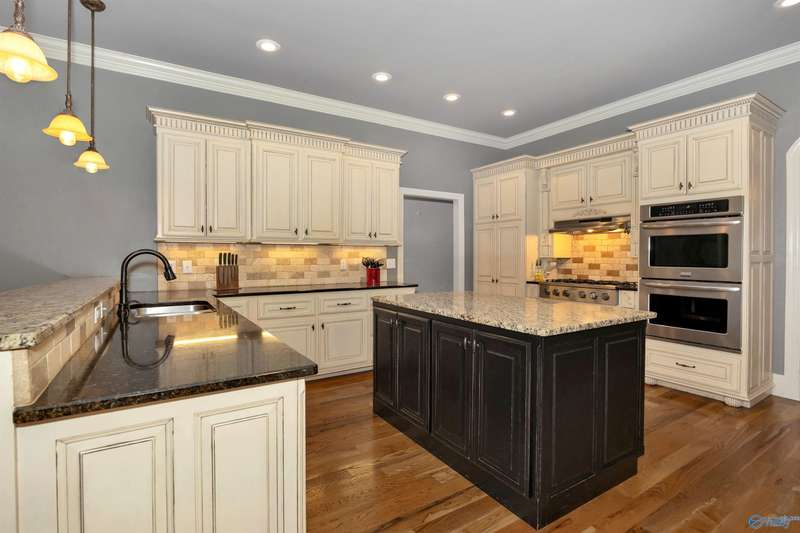 STORM SHELTER- Situated on a LARGE CORNER LOT, this Executive style home offers QUALITY & LUXURY w/ EXQUISITE DETAIL thru-out: Soaring/Decorative COFFERED ceilings, extensive c-molding, wainscoting, elegant fixtures, plantation shutters, HW/ceramic floors, granite, b-splash, custom cabinetry, built in's & more. Dramatic entry leads to OPEN F-PLAN, FORMAL DINING, OFFICE, Chefs kitchen w/ gas cooktop & dbl oven, 2 LAUNDRY ROOMS (1 ON EACH LEVEL), DROP ZONE, Master on MAIN LEVEL w/ grand entrance to glamour bath. 2nd ISOLATED bedroom on MAIN LEVEL (GUEST RETREAT). BONUS/REC/MEDIA room w/ WET BAR. Extended patio w/ HOT TUB overlooks PRIV FENCED backyard! 3 CAR GARAGE w/ elevator assist! NEW ROOF
