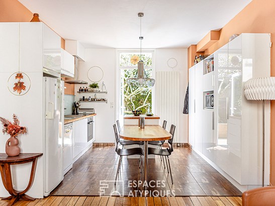 The different species of plants complete the place. This house offers an exceptional living environment, at once urban, family and peaceful. In the immediate vicinity of local shops, schools and transport, it will seduce lovers of unique places, combining authenticity, functionality and prime location.