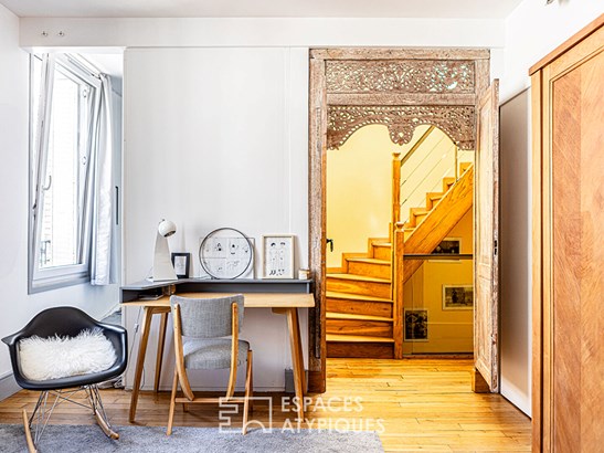 The kitchen, designed as a convivial space and open to the outside, stands out as the vibrant heart of the house. Continuing on, the living room and the dining room reveal perfectly preserved original parquet flooring, harmonious volumes and through light that highlights the careful interior decoration. The floors, dedicated to nightlife, combine comfort and privacy.
