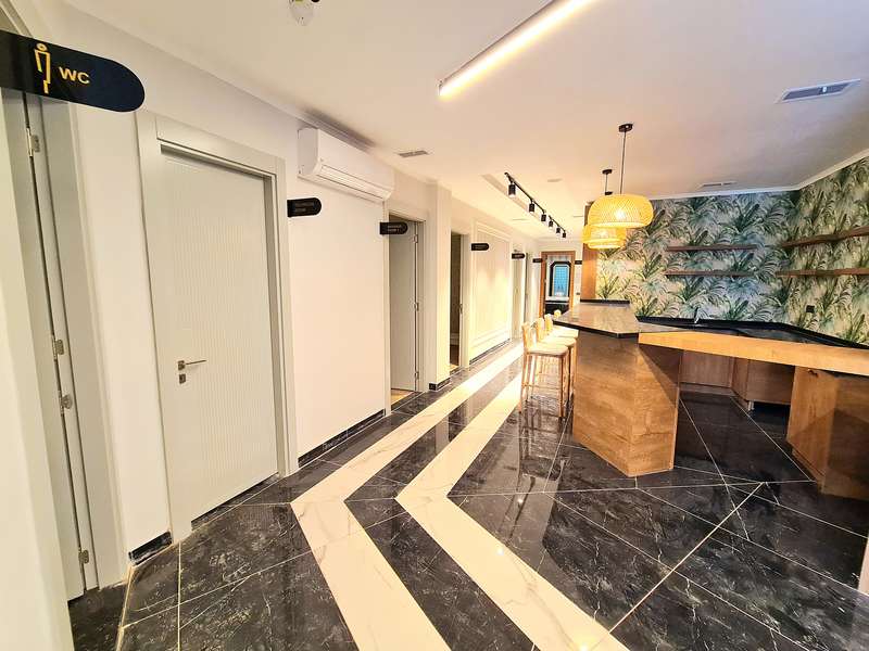 The complex, where luxury apartments are located, is planned on a 5662 m² area. The project includes outdoor and indoor swimming pools, a sauna, a hammam, a gym, salt room, a massage room, a jacuzzi, a vitamin bar, table tennis, billiards, a game room, a tennis and basketball courts, mini golf, children's playroom, barbecue and relaxation area, generator, elevator, sea shuttle service, and a complex caretaker.