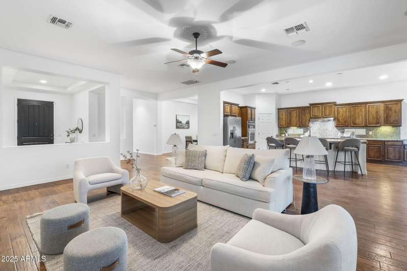 SELLER TO PAY 8k TOWARD BUYERS CLOSING COST! Meticulously maintained single level home in Old Stone Ranch, located within the highly sought after Arizona College Prep school attendance boundary- (no open enrollment app. required!) This beautiful property features a great room, formal dining, and kitchen with breakfast nook. Freshly painted interior offers a master split floor plan with 4 bedrooms, 2.5 baths, great room layout with formal dining. Kitchen includes NEW GE stainless microwave, oven, and cooktop, walk-in pantry, large island, and breakfast nook, all open to the great room. The large primary suite offers a sitting room and private backyard access. Private, lush backyard! Close to top-rated schools in a sought-after lake community with walking paths throug mall AC (2023), Large AC (2025), Exterior Paint (2023), All Bedroom Carpet (2025). Nestled in Chandler, AZ, Old Stone Ranch is a picturesque master-planned community built by Shea Homes in the 2000s. Known for its serene lakes, winding walking paths, and inviting parks, the neighborhood features tree-lined streets, spacious lots, and charming split-rail white fences. Residents enjoy a main water feature, three scenic lakes, tot lots, and shaded ramadas, all just minutes from Veterans Oasis Park and within walking distance to schools, shops, and everyday conveniences.