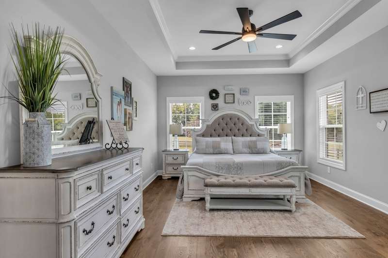 WHITE GLOVE CLEAN! LOOKS BRAND NEW! This remarkable all-brick home welcomes you with expansive covered porches at both the front and back, ideal for savoring the gentle breeze on a quiet morning or hosting lively evenings with friends and family. The classic brick exudes timeless charm and curb appeal. Step inside and you'll discover a thoughtfully designed interior that blends comfort and sophistication. An extra guest suite with a full bath is situated on the first floor. The great room has built-in bookcases and beautiful wood finished flooring. On the first floor, there is a Primary Suite with a full bath, a spacious walk-in shower and a deep soaking tub. The oversized closet, complete with custom shelving, provides abundant storage and organization. On the second floor, you'll find a spacious bedroom, another room that can be used as a flex room/office, a full bath and an expansive bonus room adaptable to your every need. The back property line is bordered by trees, ensuring a sense of privacy. This residence is a harmonious blend of luxury and practicality, waiting to welcome you home. The large 3-car garage has epoxy floor coating.