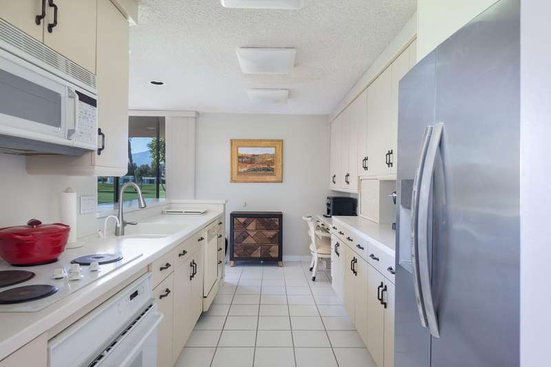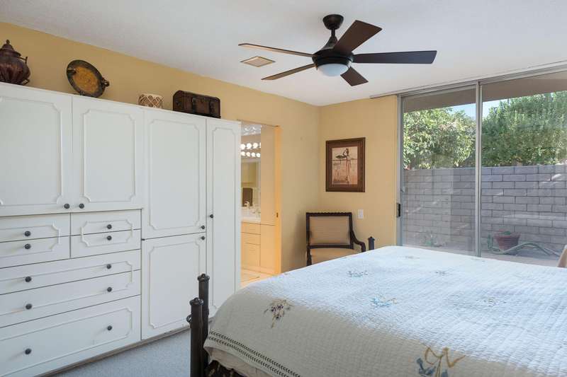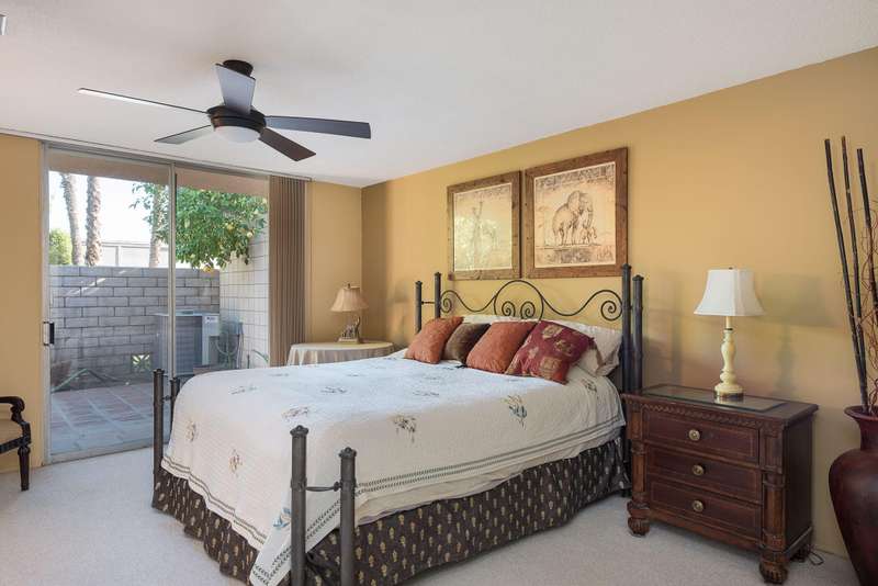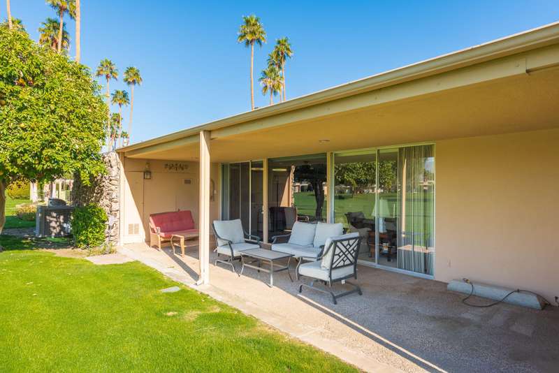 ***AVAILABLE 4/1/2025***Darling 2/2 Condo (Unit # 23) with unobstructed views of the southern mountains and the 1st & 18th fairways of the legendary Bob Hope Classic Course in private, member-owned Bermuda Dunes Country Club... Enclosed front and back patios. Master suite has built-ins, dual wash basins. Living/dining room combo with amazing views you don't want to miss out on!. Kitchen complete with breakfast bar and convenient desk. Leaded glass and wood front door. Washer dryer unit is located in the cart garage area adjacent to the spacious patio. Citrus trees to enjoy fresh squeezed juice every morning. Call now to book your stay. 30 day minimum.