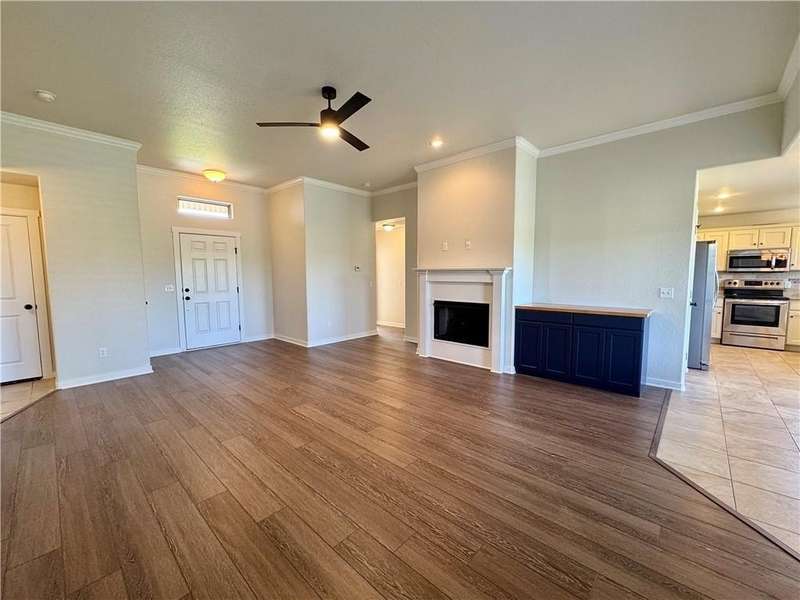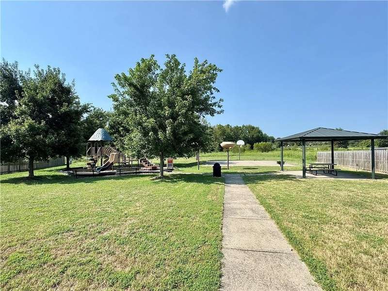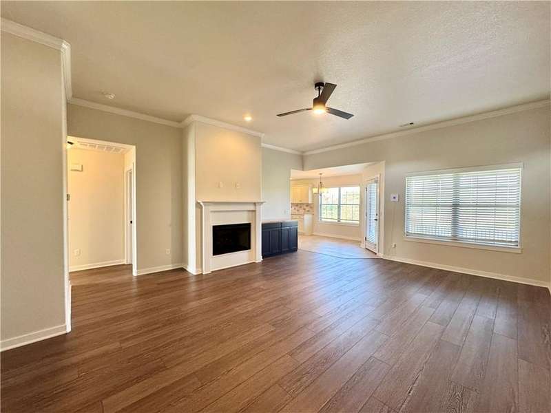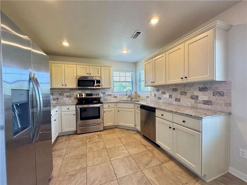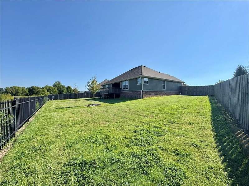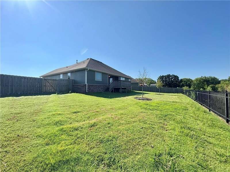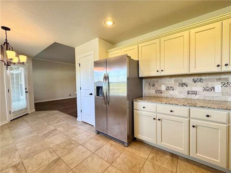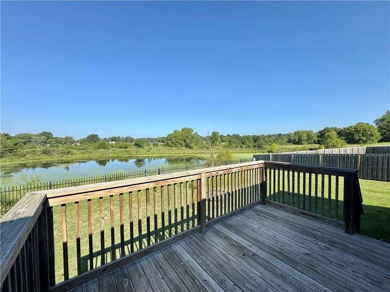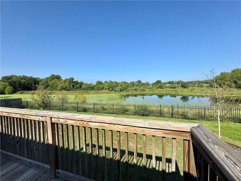Beautifully maintained home is perfectly located near schools and a park. Spacious living room features LVP flooring, cozy gas fireplace, crown molding, natural light, and an open floorplan. Chef’s kitchen offers granite countertops, stainless steel appliances, a new refrigerator, pantry, generous counter space, storage and a sunny eat-in area. Large primary suite boasts a tray ceiling, accent paint, crown molding, new carpet, and a spa-like bath with double sinks, jetted tub, walk-in shower, and two walk-in closets. Two oversized bedrooms add flexibility, while the utility room includes a washer, dryer, storage, and hanging space. Additional updates include a Ring security system, comfort-height toilets, fresh paint, and new LVP and carpet in 2024. Relax on the covered deck overlooking the private yard with serene pond views. Walk to C.L. "Charlie" and Willie George Park! Football field, tennis courts, baseball fields, soccer, splash pad, paved walking trails, pavilions and more! $2,500 allowance for damaged tile.