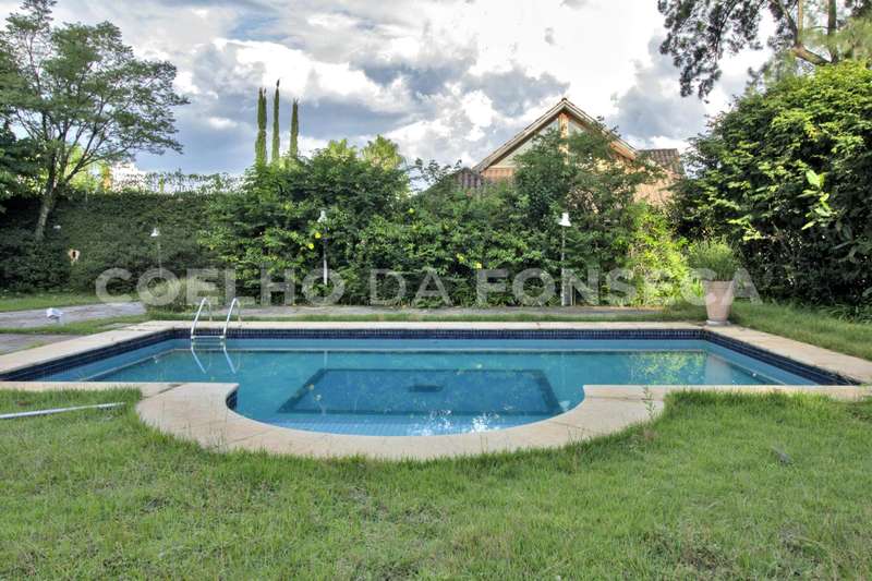 A casa fica acima do nível da rua e possui enorme e lindo jardim com piscina.