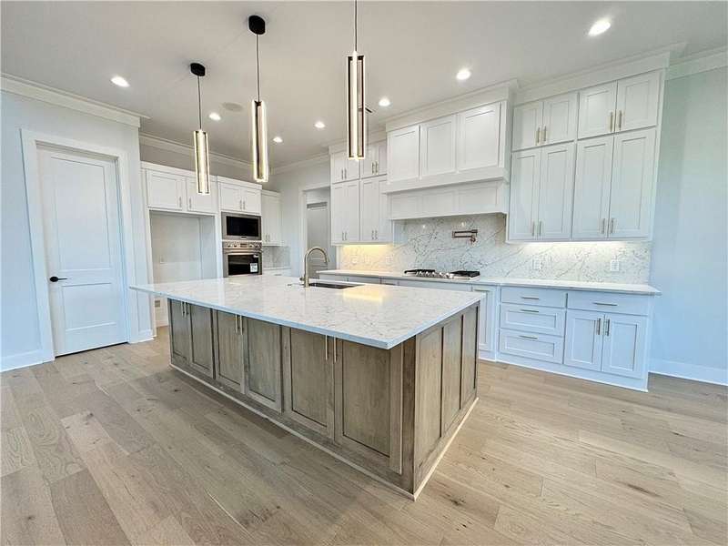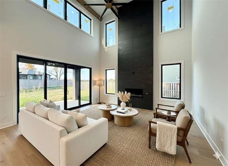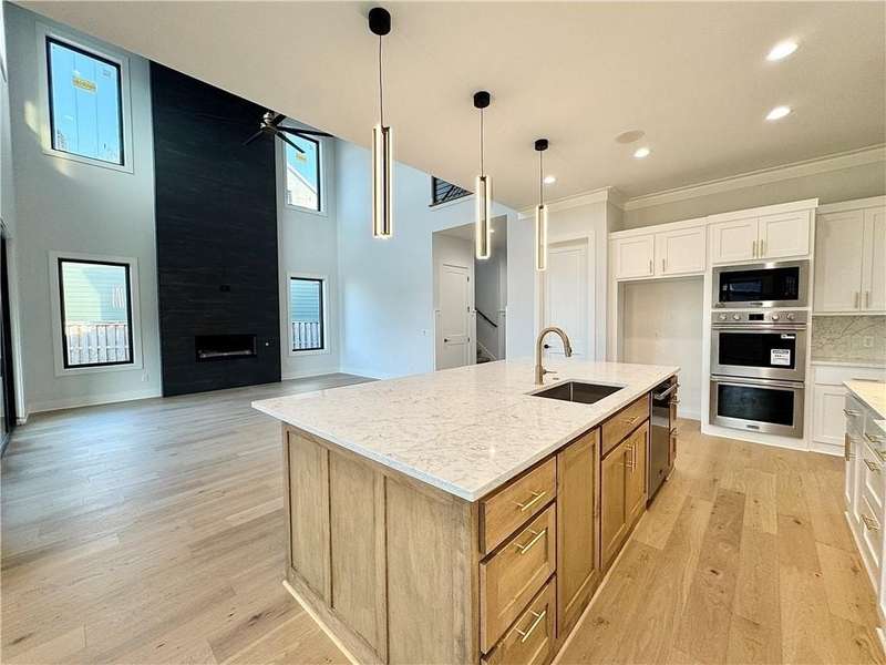 Up to $8,000 INCENTIVE- $5k from Builder and $3k from preferred lender for closing cost etc. Sought after community of Aurora. Stunning two story living room with soaring ceilings, tiled linear fireplace, custom beams, engineered wood flooring & light streaming through ample amount of windows. Kitchen features large custom stained island, quartz countertops/backsplash, pot filler, gas cooktop, custom cabinets to the ceiling, double ovens, walk in pantry! Home features a secondary bedroom on the main level that would also be a perfect study. Primary bedroom with wood floors, painted accent wall & luxurious ensuite bathroom. Primary bath with double vanities, walk-in tile shower & stand alone soaking tub. Upstairs features two large bedrooms & bonus room with wetbar. Huge covered patio overlooking the lot! Aurora residents have access to TONS of community amenities. Adult pool, family pool, bike repair station, dog park, elevate fitness course, sports court, open air clubhouse & playground! Internet included in POA!
