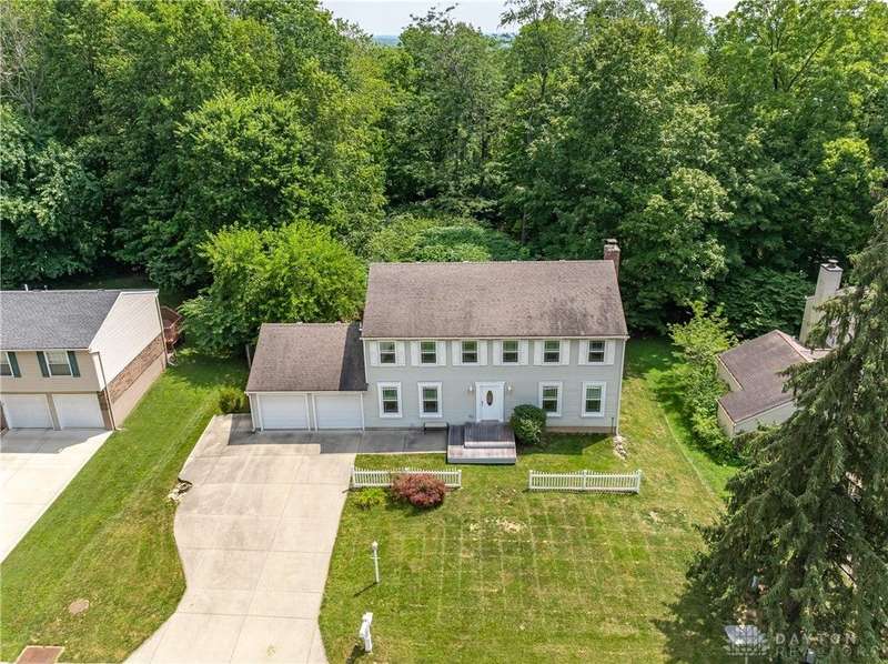 Welcome to 4011 Willow Run Drive, a beautifully maintained Colonial-style home nestled on a nearly 0.40-acre wooded lot in the heart of Beavercreek. With over 2,400 square feet above grade, this spacious 4-bedroom, 2.5-bath home offers a blend of classic charm and modern updates in a tranquil, tree-lined setting.Step inside to find a freshly painted interior and a flowing floor plan ideal for everyday living and entertaining. The kitchen features granite countertops, a breakfast area that opens to the family room, and thoughtful extras like a wine fridge and glass rack. A formal living room and dining room offer space for larger gatherings, while the sunroom provides a bright, relaxing spot to enjoy views of the private backyard.Upstairs, the generous primary suite includes a walk-in closet and en suite bathroom. Three additional bedrooms, all nicely sized, and updated flooring in the upstairs baths complete the second level. The finished walk-out basement offers a large rec room plus a sizable storage/utility area.Enjoy the outdoors from the brand new deck overlooking the wooded yard, or take advantage of the attached 2-car garage and whole-house fan for added convenience and comfort.