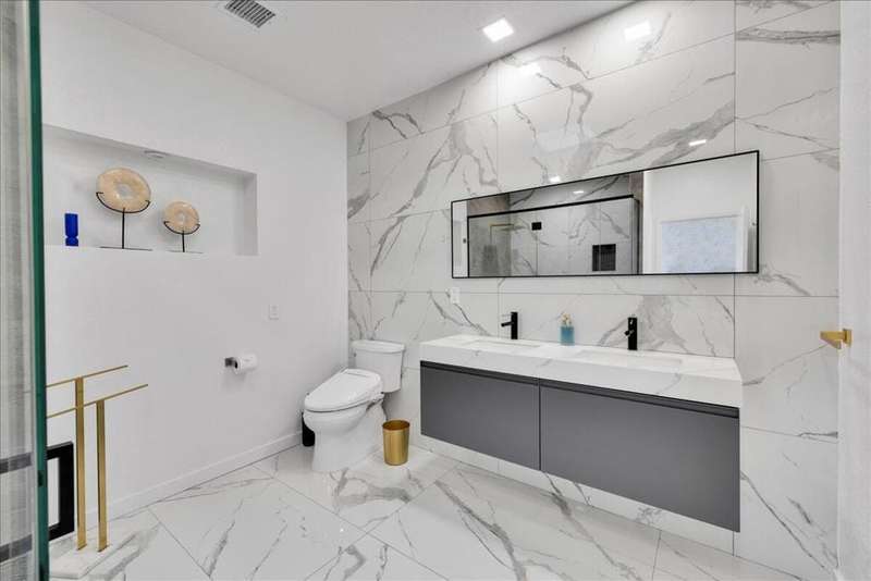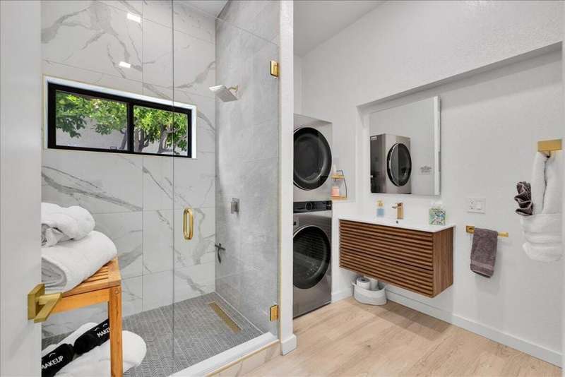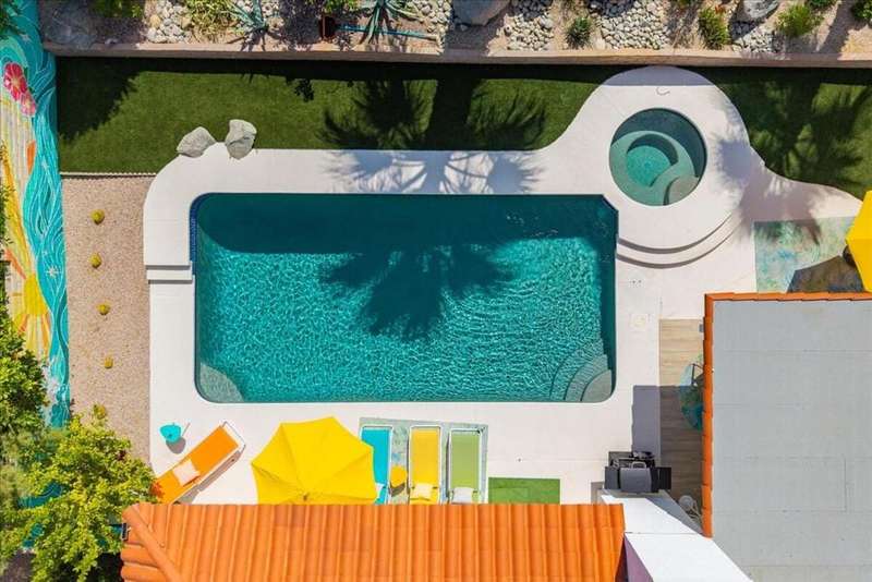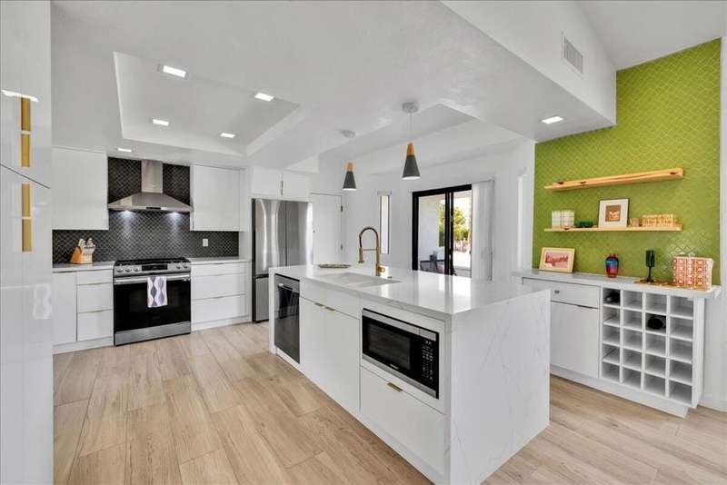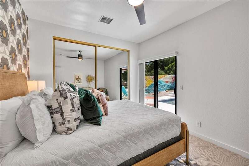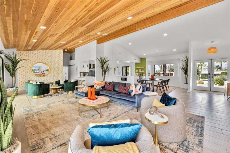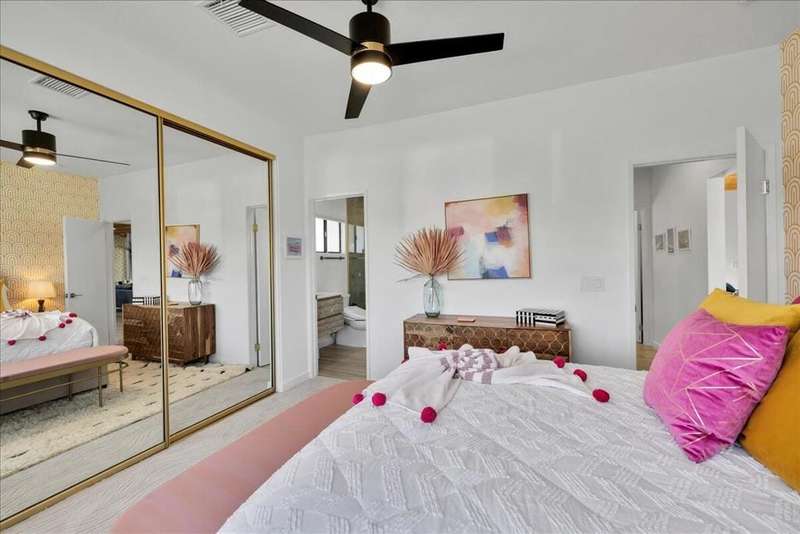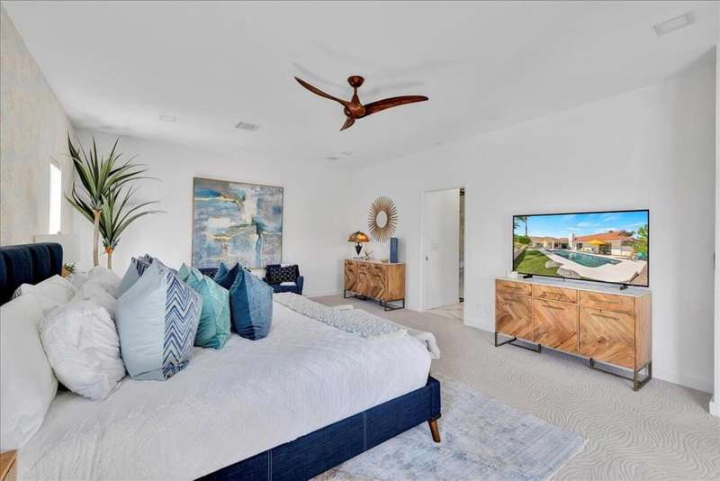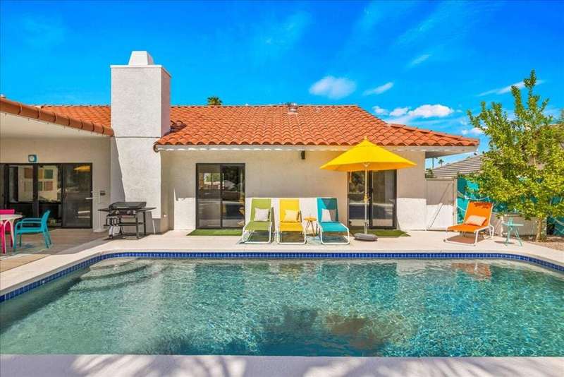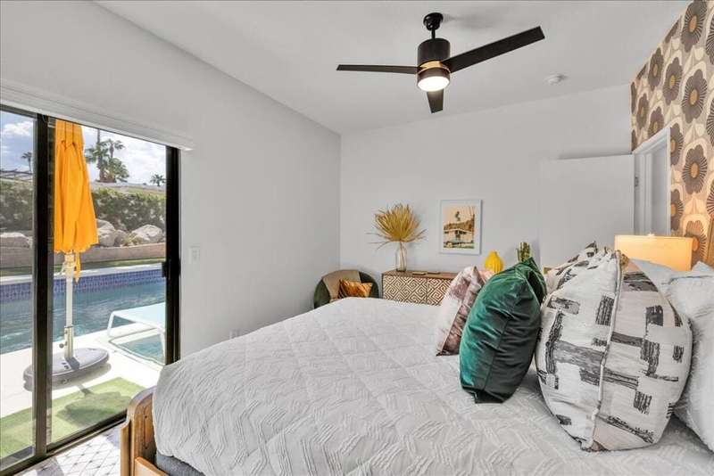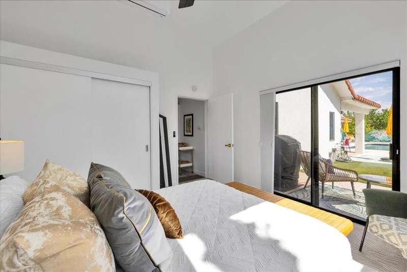 This South Palm Desert residence is truly turnkey. The home is fully furnished, professionally decorated in 2023, and enhanced with extensive updates completed the same year. Every space reflects a modern, stylish design and a focus on comfort and livability.The main home features three bedrooms and three bathrooms with an open floor plan and vaulted ceilings. The newly renovated kitchen showcases quartz waterfall counters, a striking tile backsplash, breakfast bar, and dry bar. The expansive primary suite includes a generous walk-in closet, a spa inspired bathroom, and direct access to the saltwater pool, perfect for morning swims or evening relaxation.A private attached guest house adds exceptional versatility, offering its own bedroom, bathroom, full kitchen, living and dining area, washer and dryer, and dual ductless mini split A/C systems. This fourth bedroom and living area are ideal for hosting guests or as an income opportunity.Extensive updates completed in 2023 include all new appliances, new window coverings, a high efficiency A/C unit, new furnace, new water heater, and a five camera security system. Outdoors, the professionally landscaped grounds are enhanced with upgraded sprinklers, a new misting system, and automated pool equipment. The backyard is a true retreat, highlighted by a sparkling saltwater pool and a hand-painted mural that adds a unique artistic touch.Located just minutes from El Paseo's premier shopping, dining, golf, and hiking, this South Palm Desert residence combines style, function, and location, delivering the ultimate desert lifestyle.