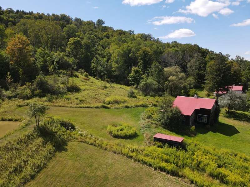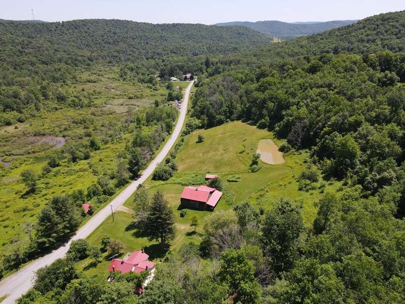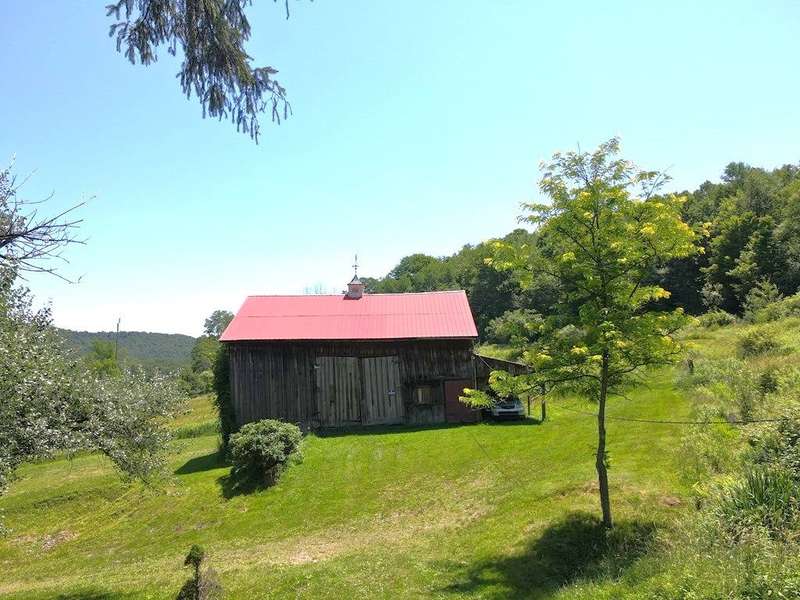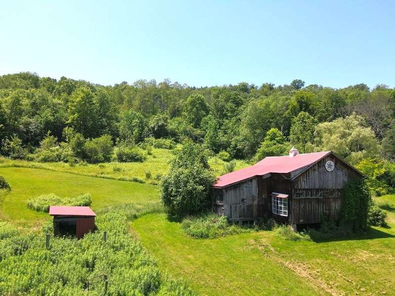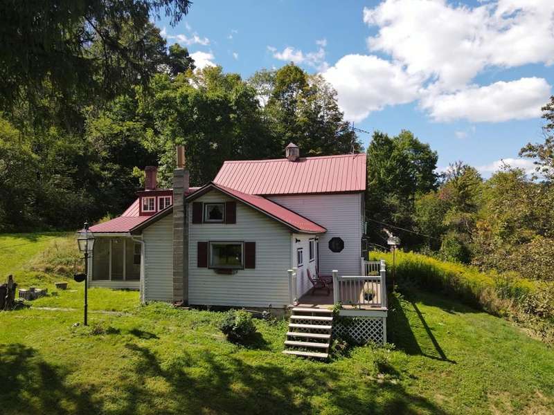 This type of listing is hard to come by. Farmhouse, two story barn, large pond, shed, acreage, breathtaking views and where the beauty of nature is always on display. Nestled in the countryside, this charming farmhouse blends modern amenities alongside preserved details that highlight the home's history and charm. Bedrooms and full bathroom on the first level. The second level has a bedroom/office that overlooks the acreage that's astonishing. There is an attached greenhouse which would be great for herbs or flowering. Each room has character and can be used for any purpose. The spacious barn, perfect for hobbies or storage. Large pond and open land with some fencing. Majestic hills that line the horizon, creating a stunning backdrop for this picturesque view where layers of peaks fade into the distance. Enjoy this property in all four seasons. There is another runoff behind the home that at one time had a flourishing overflow that was the highlight as approaching the property. C & G