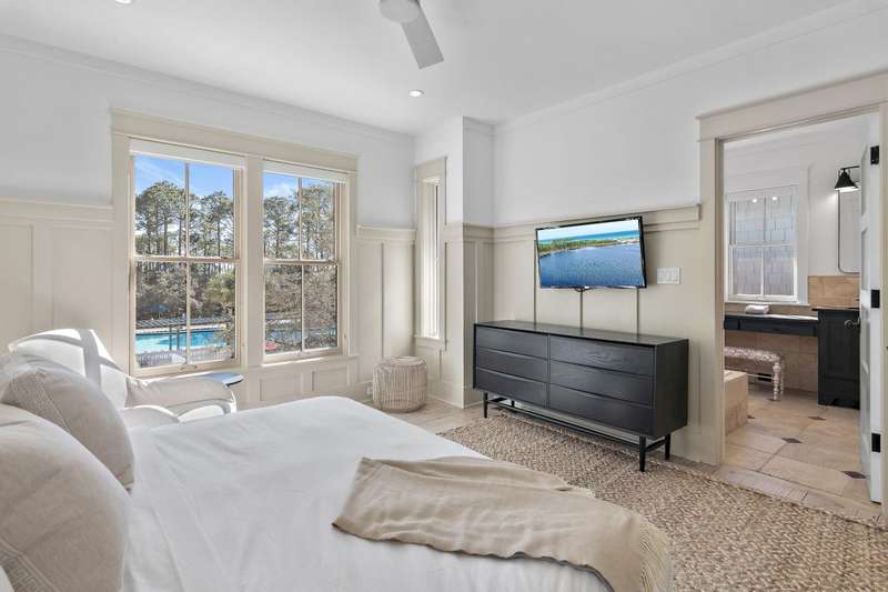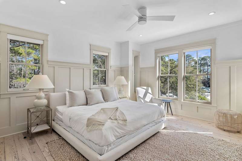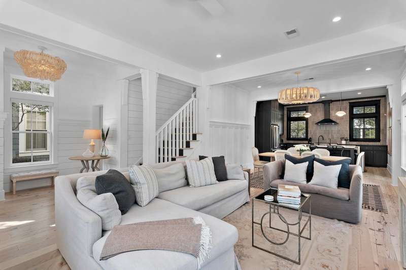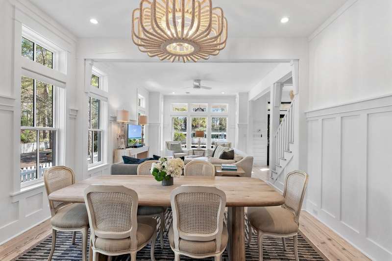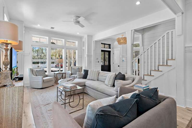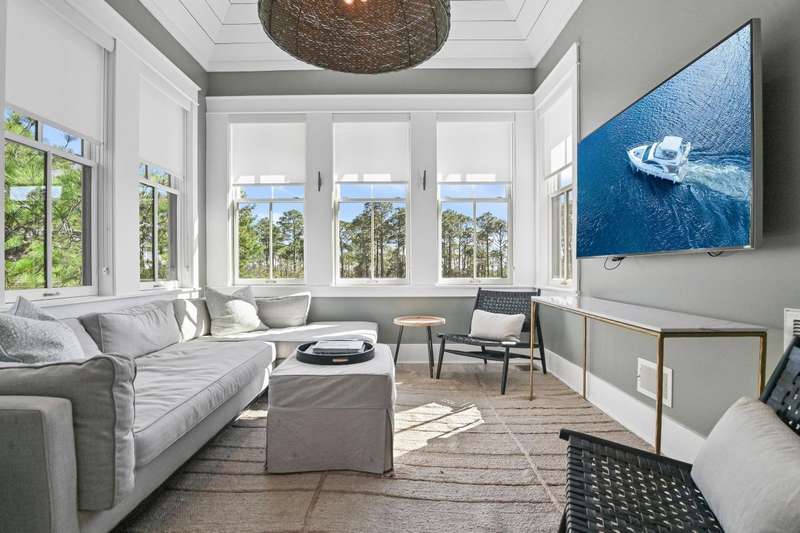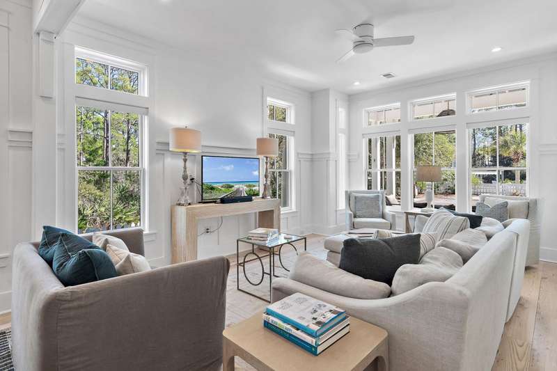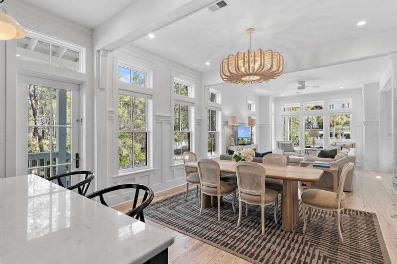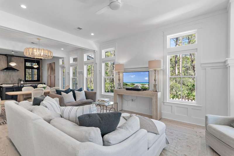 Discover the perfect blend of luxury and coastal living at this stunning home in the sought-after Watersound West Beach community. Nestled along the serene border of Deer Lake State Park, this residence offers a peaceful backdrop of natural beauty adjacent to scenic walking trails leading to the beach.Just steps from the community pool and the beach boardwalk, enjoy effortless access to sugar-white sands and the turquoise waters of the Gulf with no crowds! The open-concept design features spacious living areas, ideal for entertaining or relaxing after a day at the beach. Custom features include true wide planked hardwood flooring, luxury appliances, hand-selected fixtures, as well as extensive wainscoting and wood trim work throughout. Offered fully furnished, this well thought out floor plan showcases an open concept living space on the main level with expansive state park views, a spacious master suite, 2 guest bedrooms suites, a private bunk room plus another bunk space tucked under the stairs, and a third floor den with gulf views that can double as a 4th bedroom. Plenty of storage can be found throughout the home and there is a home office on the main level. High end luxury finishes, generous porches, and serene outdoor spaces make this home an inviting coastal retreat. With exclusive access to Watersound West Beach amenities, including heated & cooled community pool, multiple parks, trails and boardwalks, manned security gate, fitness center, and private boardwalk to the BEACH with bike parking, this home offers the ultimate 30A lifestyle. Home is located on the most exclusive lot in the neighborhood, so don't miss your chance to own this piece of paradise perfectly positioned in a serene natural setting yet convenient to all 30A has to offer!