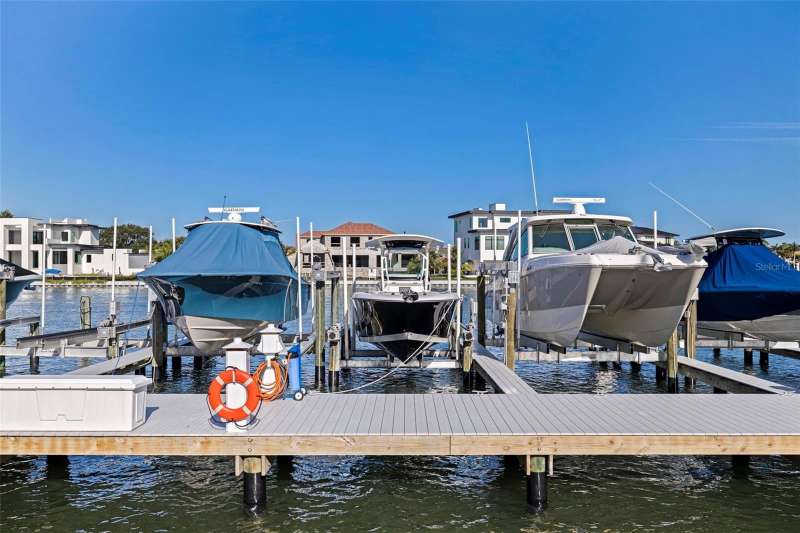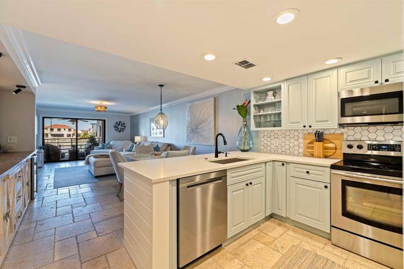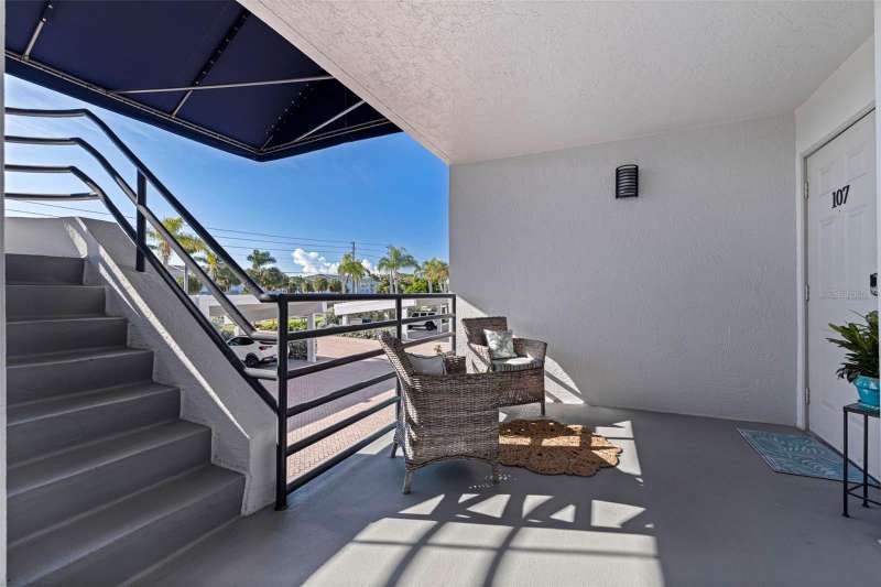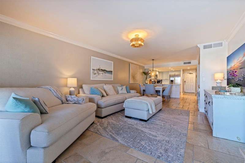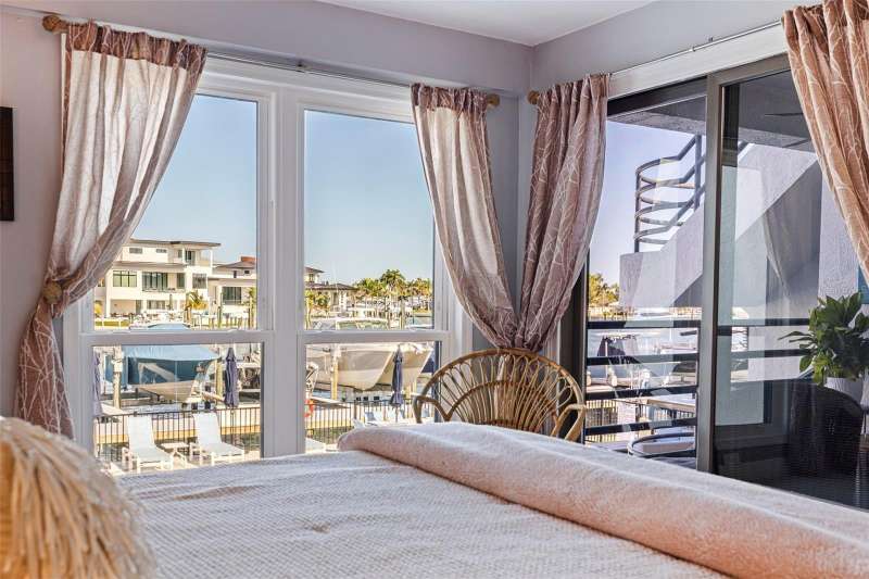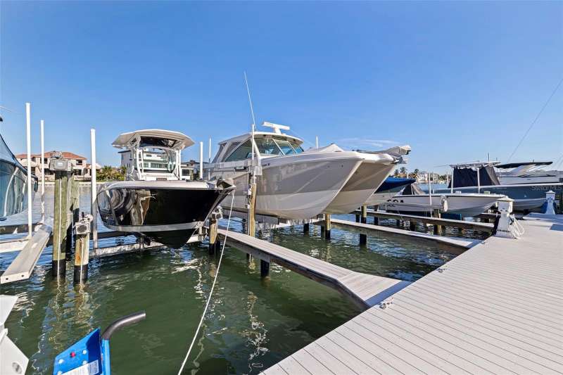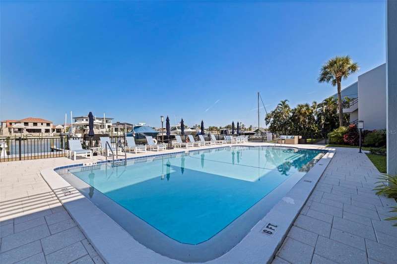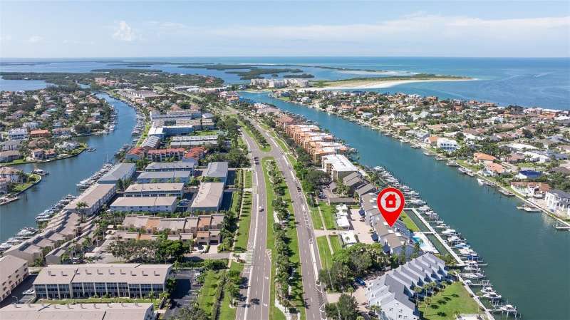 Coming home every evening to magical sunsets over Tierra Verde’s Grand Canal — this is the waterfront lifestyle you’ve been dreaming about. Spacious, open, and thoughtfully designed, this 2-bedroom, 2-bath condo offers effortless coastal living in a vibrant, welcoming community. The friendly entry with inviting porch greets you even before you step inside, showcasing the warmth of island life. As you enter, the elegant coastal-inspired kitchen on your right features soft blue cabinetry, quartz counters, and a breakfast bar with seating for casual dining. On the left, the dining area includes a custom built-in wood bar and beverage fridge — perfect for serving to the dining table next to and entertaining guests. The tiled living area flows naturally with space for your sofa and TV while overlooking the balcony and sparkling Grand Canal, with a private back door entry staircase down to the heated pool for added convenience. The primary suite is a true resort-style retreat with sweeping water views, custom lighting, an oversized walk-in closet, two separate vanities, and a fabulous spa-like walk-in shower. The guest bedroom, enjoys ample daylight, a spacious walk-in closet, and an updated bath. Full-size side-by-side washer and dryer plus additional large storage room downstairs with new water softener to complete the unit. Easy to maintain and lock-and-leave, it’s perfect for full-time living or as a second home. 2 assigned parking spots plus available guest parking spots in this waterfront, pet friendly, freshly painted and landscaped community. Featured amenities include a recently updated pool and fitness center. Enjoy waking or biking: designated bike and walk trail along Pinellas Bayway or downtown Tierra Verde, which offers several island restaurants. Scenic walk or ride across the bridge brings you to Isla del Sol Golf and Country Club. with close proximity to Fort De Soto Park and best local beaches, only 10 mins to Downtown St. Pete, and 40 mins to Tampa International Airport. Complete your lifestyle package with the deeded boat slip and 13,000 lb lift. Furniture is optional, and the boat can be included— simply make an offer.