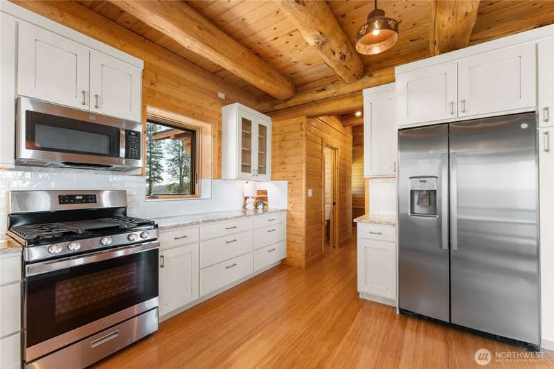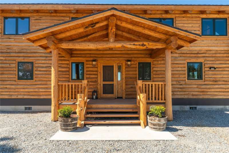 PRIVATE GATED MOUNTAIN ESTATE! New construction 3bd/2.5bth 2,697sf custom-built luxury log home in Chelan Vista Heights w/ six lots totaling 124 acres w/ sweeping views overlooking Lake Chelan. The main floor features a Great Room w/ double sided fireplace & vaulted ceilings, bamboo flooring, light-filled kitchen w/ granite countertops, dining room, Primary Bedroom & French doors throughout leading to a classic covered wraparound porch. The upper level loft features a Bonus Room plus two additional bedrooms & bath. Secondary cabin w/ view porch. Detached 2-car garage, Chelan PUD power throughout the entire property, two wells & two 1,900 gallon cisterns w/ water softener & filtration. The additional homesites offer development opportunity.