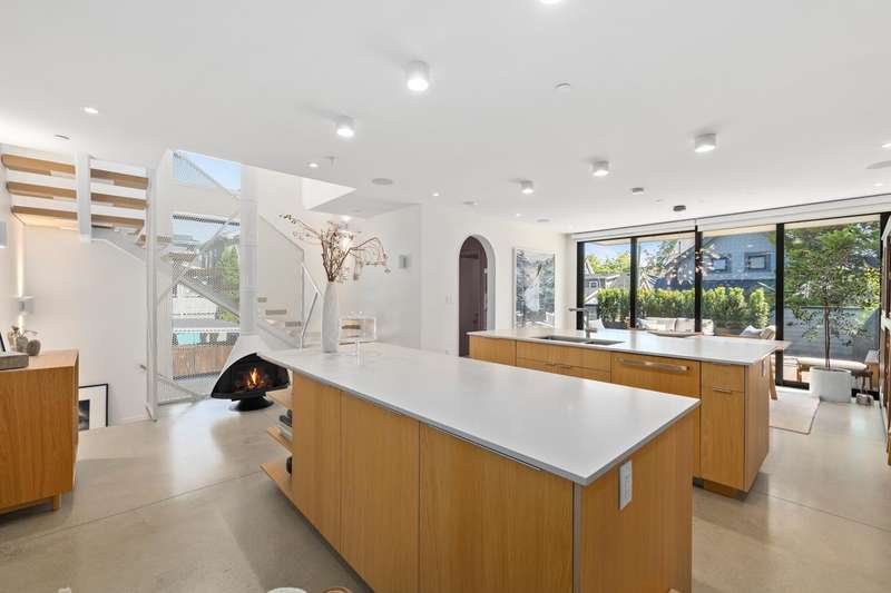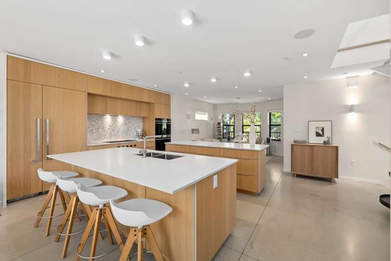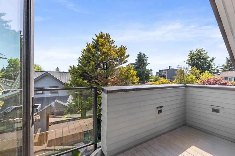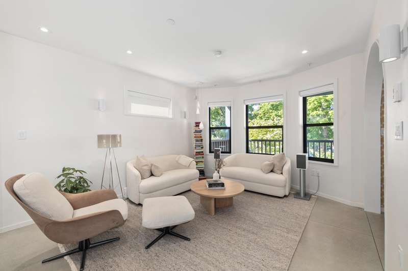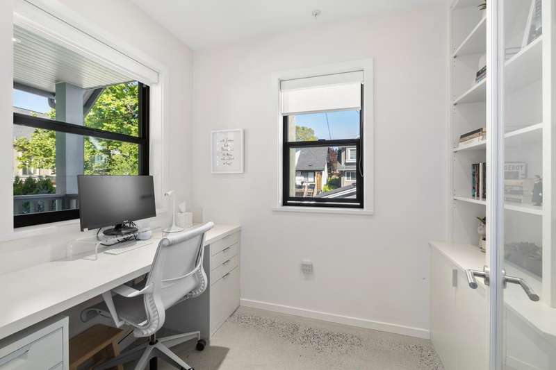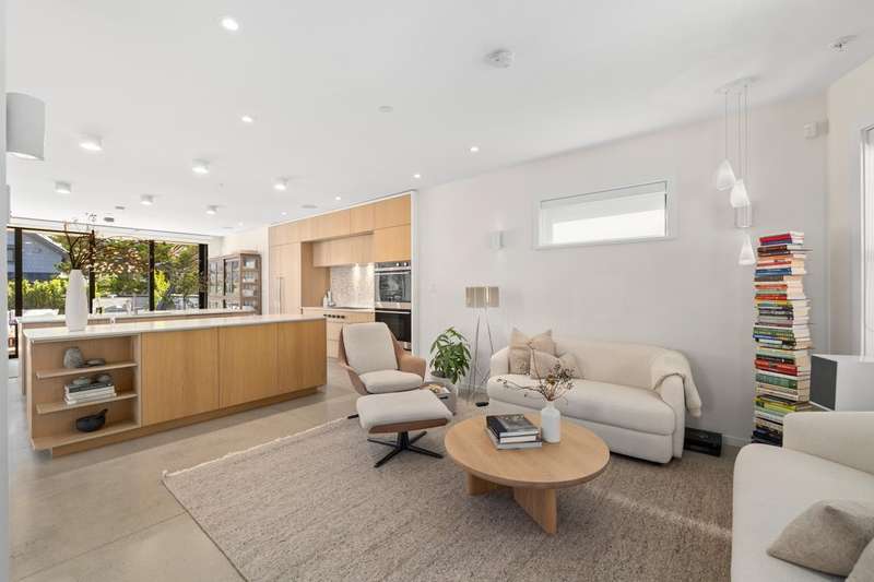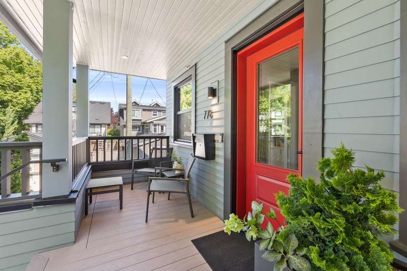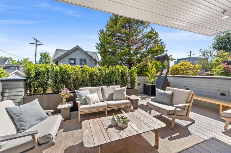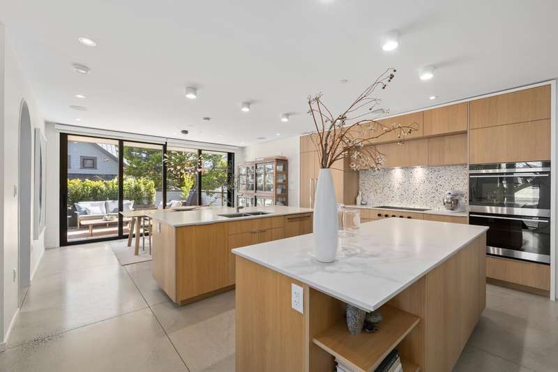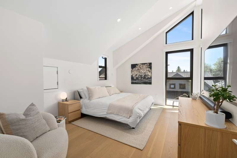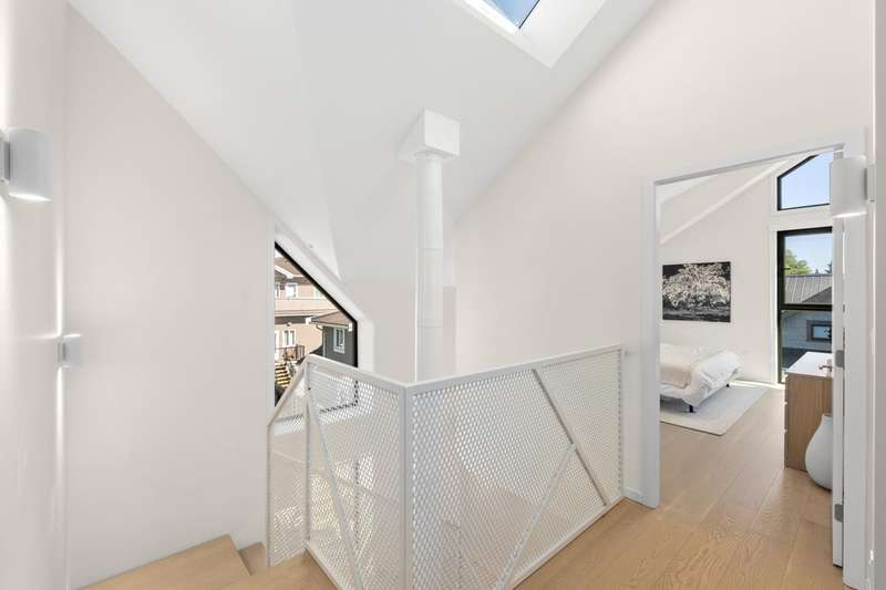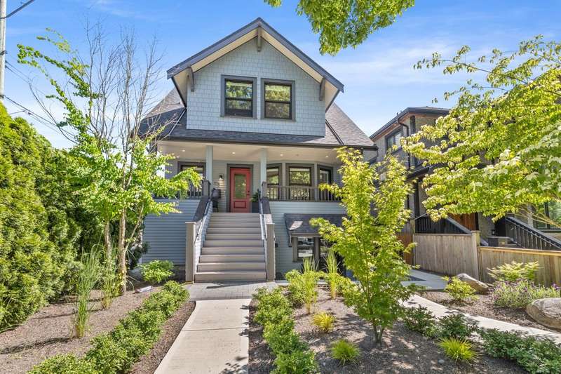 Nestled in the coveted Fraser area, this 3143 sq ft character retention home, designed by Hazell+Main, shines with style. The open-concept main floor boasts concrete floors with radiant heating, a striking kitchen with Shinnoki cabinetry, Terrazzo backsplash, premium appliances, butler’s pantry, and dual islands for flair and function. Four glass sliding doors off the dining area open to a generous patio deck. A Scandinavian-style gas fireplace anchors the home, framed by a floating staircase leading to 3 bedrooms with 13’ ceilings. The primary suite features a lavish bathroom and walk-in closet. The ground level offers a mudroom, spacious family room, and a charming 1 bedroom garden suite. This stylish home is a must-see marvel.