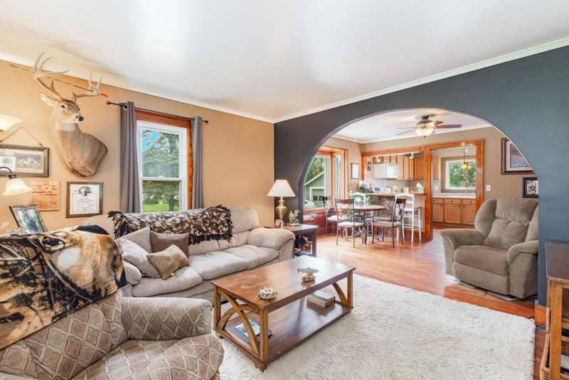 Bullock Creek Schools- 5 acres and 40' x 40' pole barn. Home has 3 bedrooms and 2 baths . The master suite has a walkin closet and full bathroom. Home has city water. New septic and drainfield in 2024 .In 2010 the furnace, central air were new. water heater was new in 2022. Original part of the house, owner thinks was built in 1936. In 2010 the windows and siding were replaced and the addition was added. Garage will have new shingles before closing. The pole barn has a loft that is 12' by 40'.The original part of the house has all original hardwood floors. Shed is 16 xx 16. Basement is under the original part.