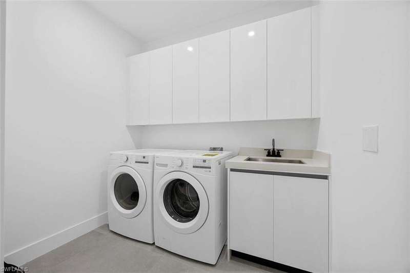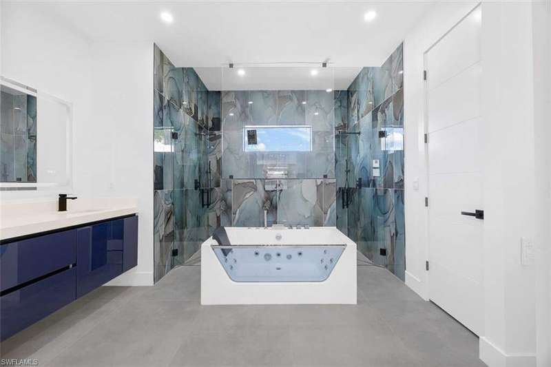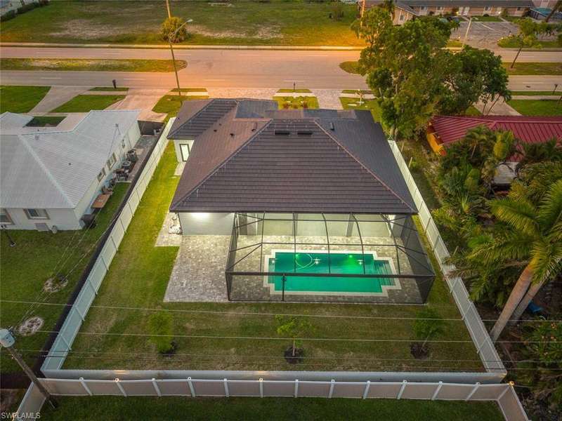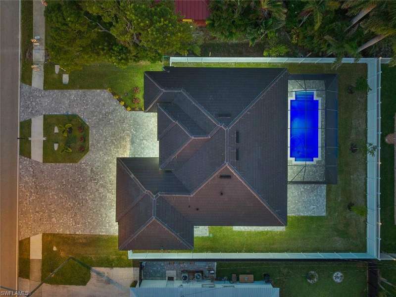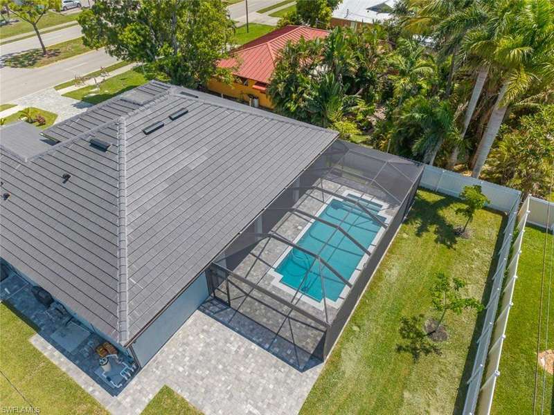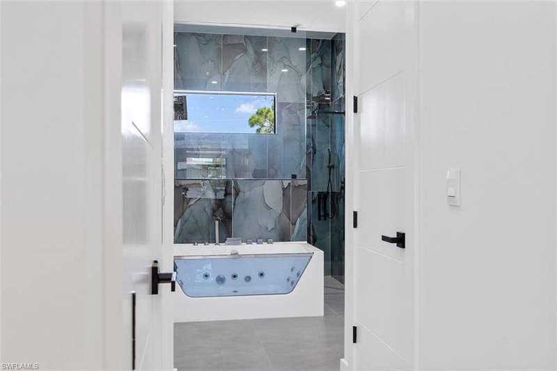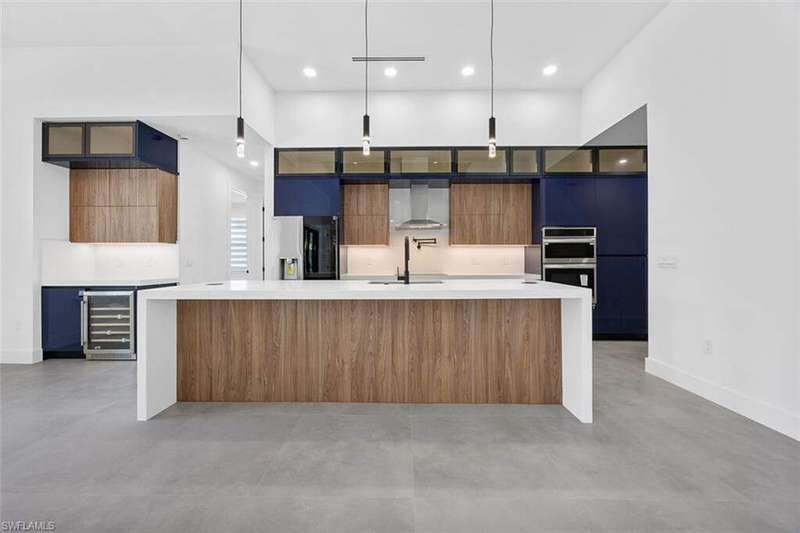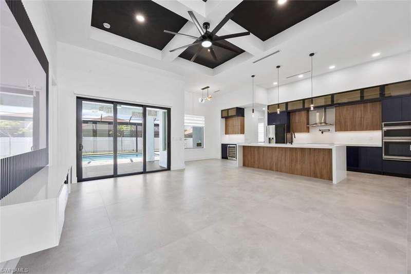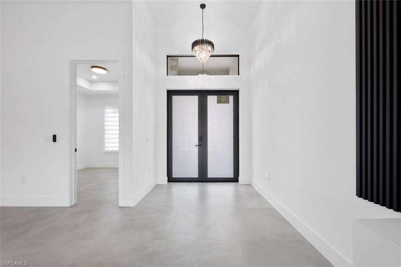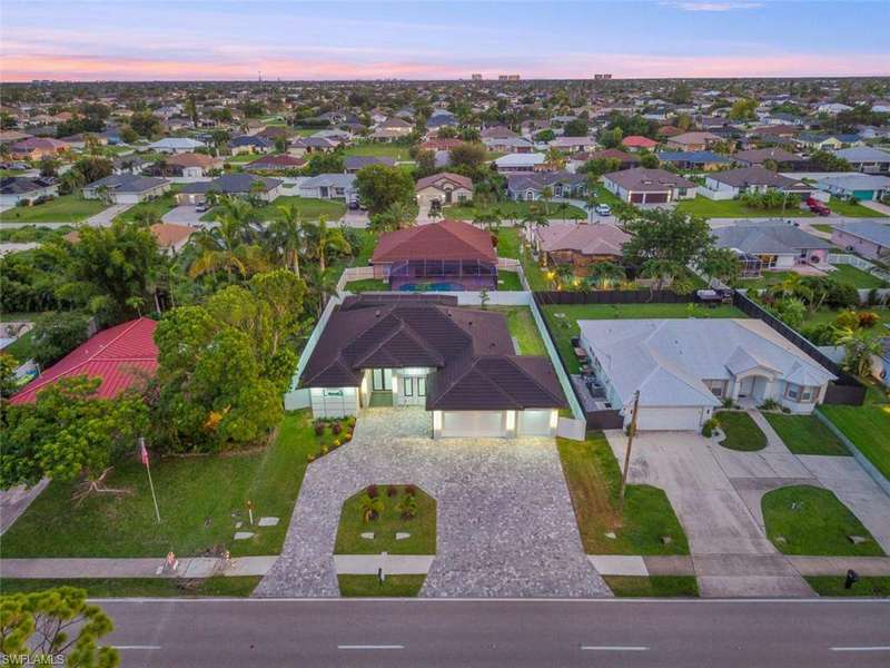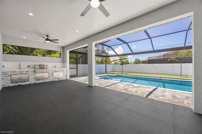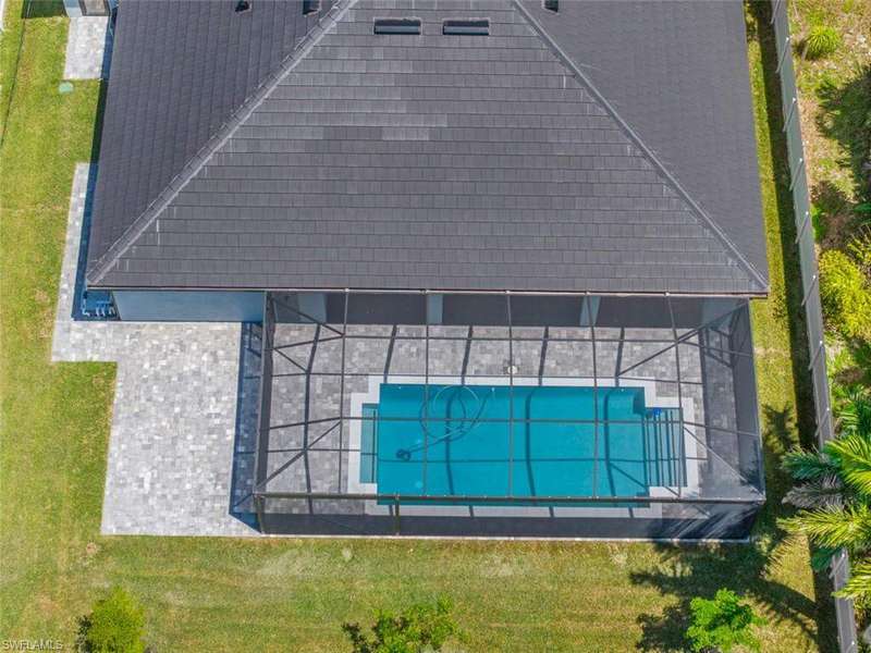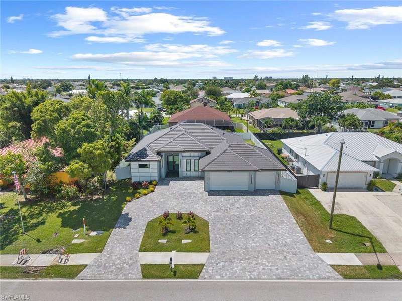 Welcome to this stunning new construction home in the heart of Cape Coral, offering a perfect blend of luxury and functionality. This 4-bedroom, 3-bathroom residence is thoughtfully designed with high ceilings and an open-concept layout, creating a spacious and inviting atmosphere for modern living. The gourmet kitchen is a true showpiece, featuring custom cabinetry, full-height cabinets, a convenient pot filler, and a designated dry bar/coffee station. Every bedroom closet is equipped with built-in cabinets, adding style and organization throughout the home. Tile flooring runs seamlessly across every room, enhancing the elegance and durability of the interior. The primary suite is a private retreat, highlighted by expansive his-and-hers walk-in closets with built-in cabinetry, and a spa-like bathroom featuring a jetted soaking tub, dual vanities, a walk-in shower, and a self-open toilet for added convenience. The home also includes a full laundry room complete with a laundry tub and cabinetry for extra storage. Step outside to your private oasis, where you'll find a screened-in pool area with a pool bath, perfect for entertaining. The backyard also offers a paved open area within the fenced yard, providing even more space for relaxation or gatherings. Additional features include a 3-car garage, circular driveway, durable tile roof, and impact-resistant doors and windows for peace of mind. This home delivers everything you need to enjoy Florida living at its finest. Whether it's hosting poolside parties, cooking in your chef-inspired kitchen, or simply unwinding in your spa-like owner's suite.