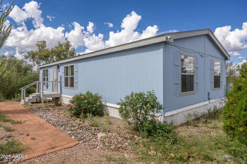Charming move-in ready 3-bedroom, 2-bath home on just under an acre. This fully fenced corner lot offers a peaceful country feel while still being conveniently close to town. Enjoy a variety of desert plantings including cacti, a pomegranate tree, ocotillo and more. The property also features a storage shed and is easily accessible from a paved road with plenty of space for parking.