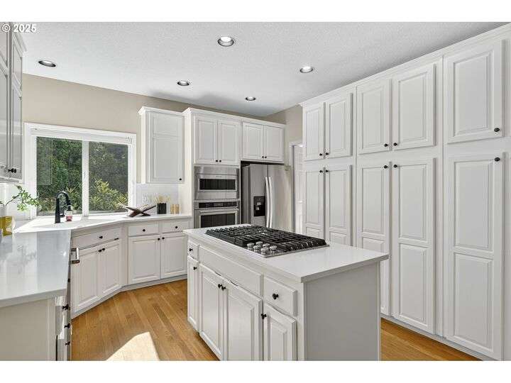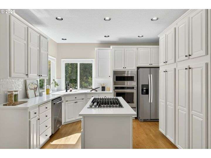 Timeless traditional in sought-after Westlake! Light-filled interiors feature soaring ceilings and expansive windows that bring the outdoors in. The heart of the home offers an inviting family room off the newly updated kitchen, plus a versatile upstairs bonus room—perfect for movie nights, playtime, or even a potential 4th bedroom (no closet). Freshly renovated half-bath, gleaming hardwood floors, and generous storage throughout add to the appeal. The primary suite boasts a cozy sitting area with serene views of the backyard. Other updates include brand new garage door hardware and motor and smart home features throughout (smart light switches, garage door, ecobee thermostat). Enjoy peace of mind with the partial home automatic generator installed 1 year ago, which powers most the house - furnace, ac, most lights, microwave, and refrigerator. Adjacent neighborhood path leads to 3 acres of open green space. Enjoy proximity to the remodeled Oak Creek Elementary, community park with summer concerts, and easy freeway access. Lovingly cared for and move-in ready!