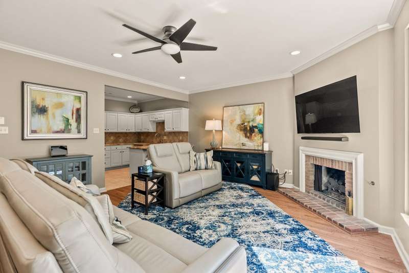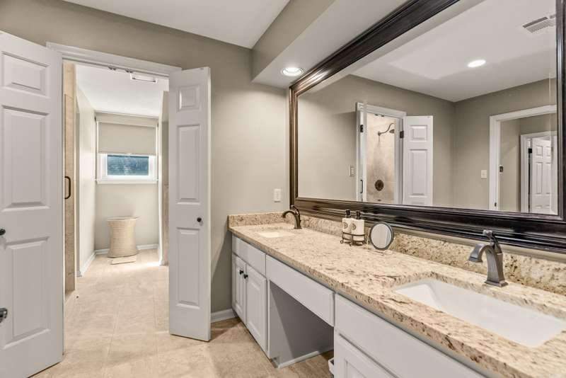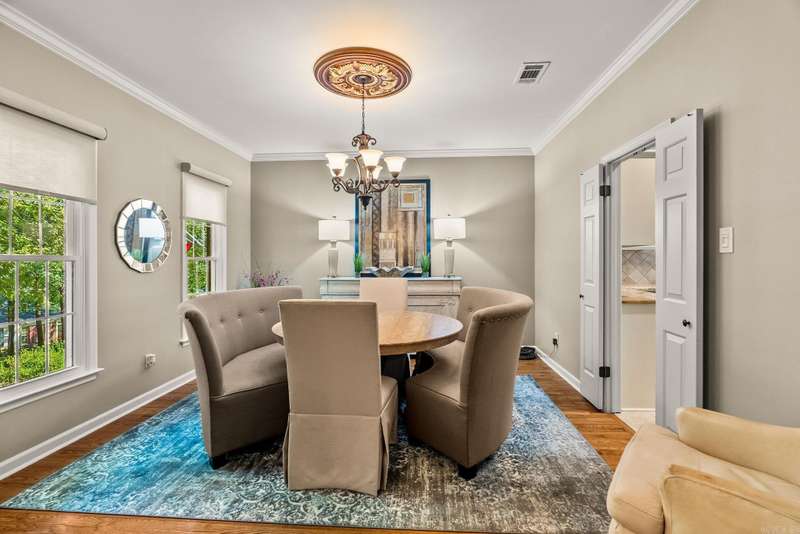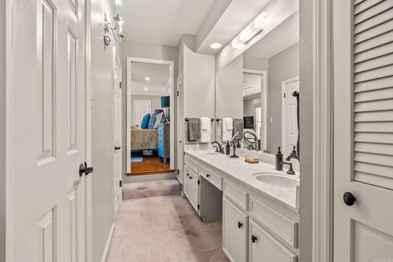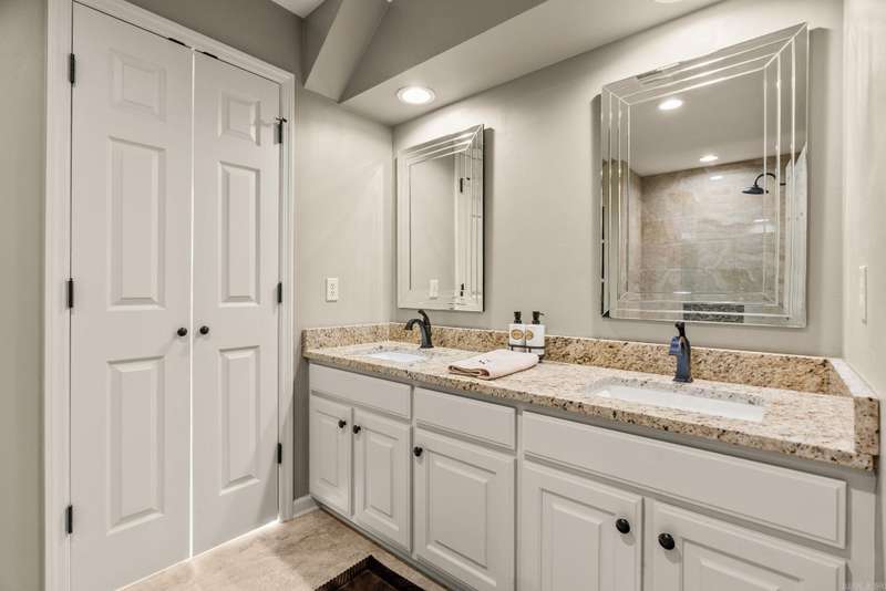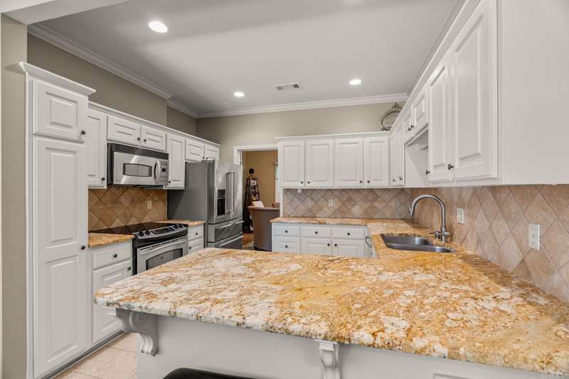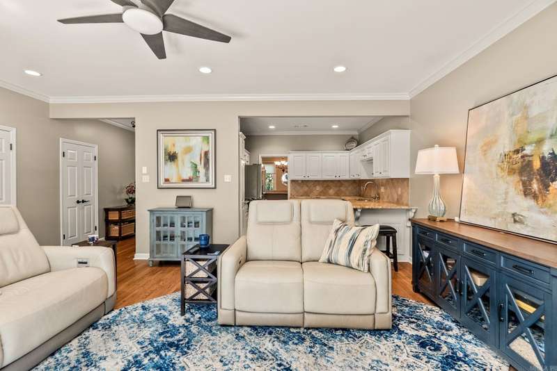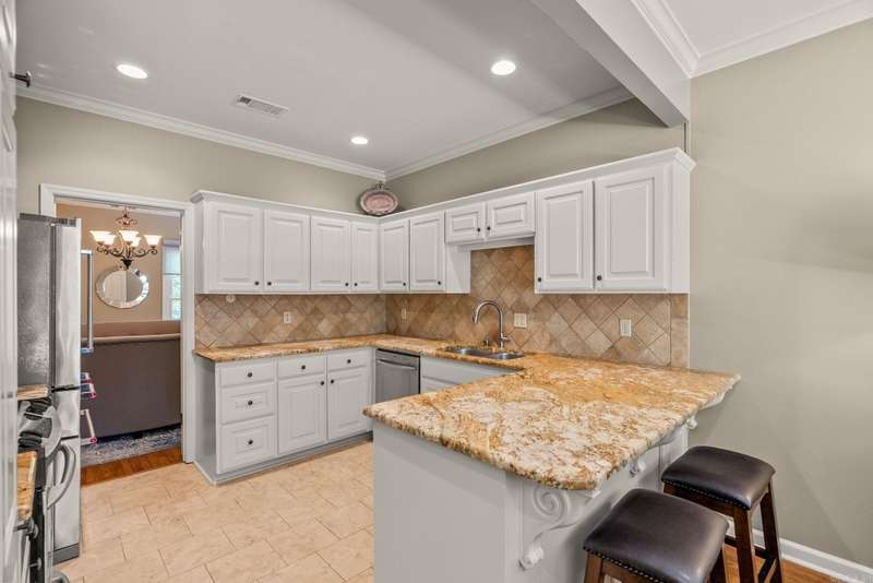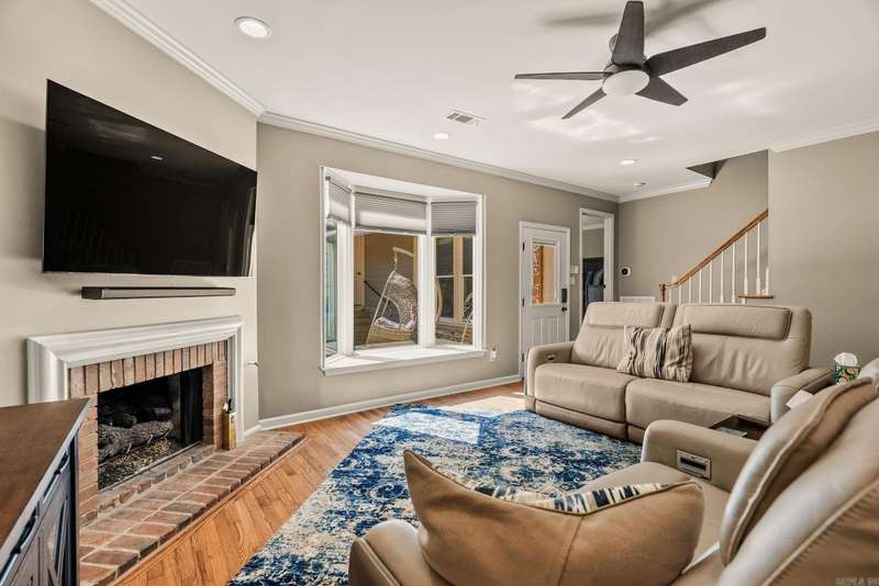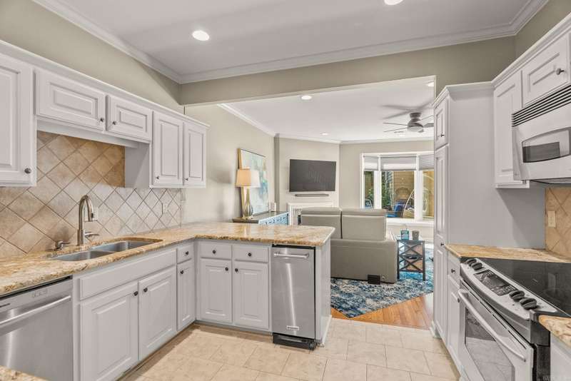 Fantastic Windsor Court condo in wonderful condition. Formal living room with fireplace and bookshelves. Lovely sized dining room. Open kitchen / family room with windows overlooking the flagstone patio. Second fireplace in family room. The kitchen has pretty granite countertops and handy pull out pieces inside the cabinets for maximizing storage. Barstool seating. The downstairs has newer wood flooring and is in great condition. Powder bath, laundry room with storage and wet bar all on the main level as well. Primary bedroom has a double vanities, two walk in closets, shower and tub. Upstairs has two more bedrooms, both with great closets and beautifully remodeled bathrooms. This condo has great storage. Very nice outdoor space that leads to the two car garage. It is covered when walking from the garage to the home. The condo is super close to the pool area!