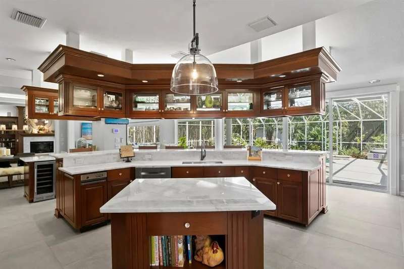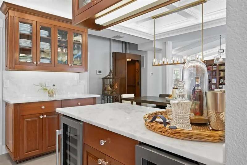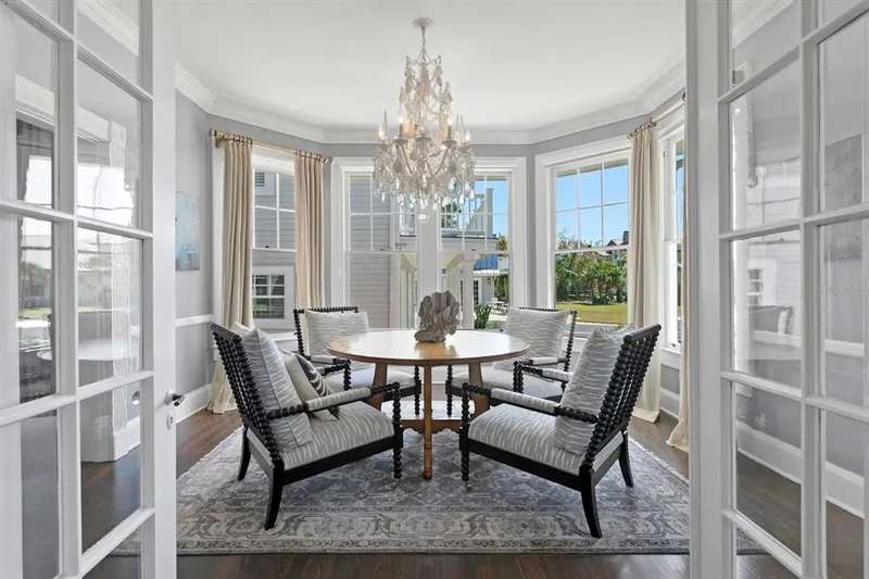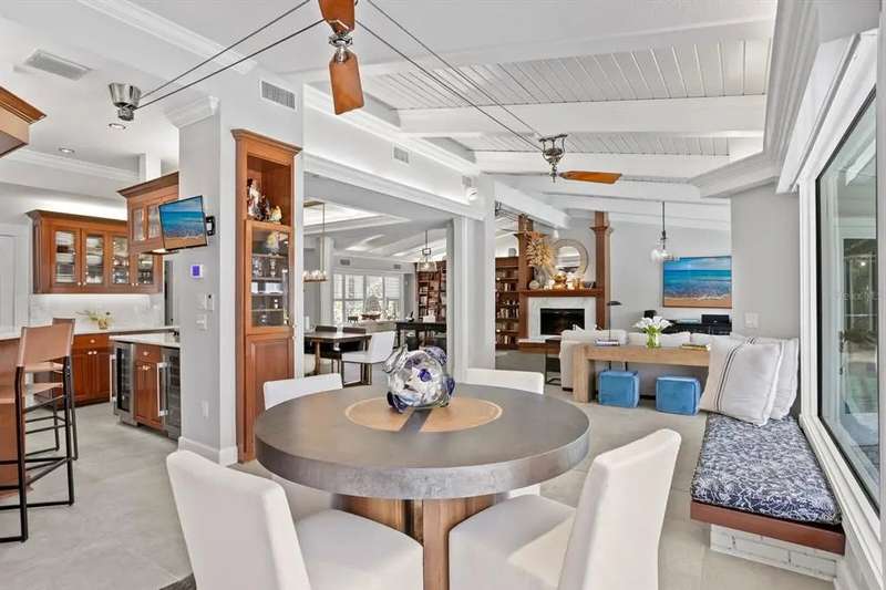 A rare opportunity awaits on the prestigious Edgewater coastlineâ??4.9 acres of elevated coastal elegance spanning two expansive lots with over 226 feet of prime water frontage. This estate is the embodiment of timeless sophistication and enduring craftsmanship, seamlessly blending classic architecture with thoughtful, modern refinement. With a proven history of resilienceâ??remaining untouched by the 2024 stormsâ??it offers peace of mind and enduring value. Each parcel allows for Intracoastal Waterway access, with the option to add a private dock, further enhancing the estateâ??s waterfront appeal. From the moment of arrival, grandeur and serenity abound. A newly constructed TEK composite porch leads into a residence rich with characterâ??restored original hardwoods, custom millwork, and layered textures create a setting that is both stately and warmly inviting. Multiple living spaces, each imbued with their own ambiance, include a formal music room and a sitting roomâ??both anchored by wood-burning fireplacesâ??a wraparound-windowed dining room, and a cozy family den complete with custom built-ins and a rolling library ladder. At the heart of the home, the chefâ??s kitchen is a culinary showcase: six-burner Thermador range, dual Sub-Zero refrigeration, wine fridges, a warming drawer, and a large central island adorned with Swarovski crystal hardware. Underfoot, linen tile floors lead through to a light-filled family room where sliding glass doors open to panoramic water views, creating a seamless transition to the outdoor oasis. Whether hosting grand soirées or enjoying quiet mornings, the homeâ??s built-in bar, casual dining nook, and expansive entertaining areas are thoughtfully designed to elevate every moment. Upstairs, a loft-style corridor with tobacco-printed wallpaper guides you to the guest bedroomsâ??each spacious and uniqueâ??a cork-accented bath, and an elevator that serves all floors for ultimate convenience. The west-facing primary suite is a private sanctuary, complete with fireplace, private sunset balcony, and a spa-caliber ensuite featuring a marble walk-in shower, soaker tub, crystal-inlaid mosaic tiling, and a bespoke dressing room with center island storage. Beyond the main home lies a gracious guest houseâ??with three bedrooms, balconies, a prep kitchen, and its own Generac generatorâ??perfectly suited for visitors or extended stays. A Game Room House offers endless entertainment with a full bar, bath, and ample room for games, while a custom office with floor-to-ceiling cabinetry and balcony provides a serene space for productivity. Outdoors, the estate transforms into a private coastal retreat: a lighted tennis court, koi pond with cascading waterfall, gazebo for al fresco dining, and a resort-style swimming pool with diving board all set within lushly landscaped grounds and gas lantern-lit ambiance. A fully outfitted garage with new laundry, full bath, gym area, and abundant storage completes the offering. With restored windows, natural gas service, and curated luxury finishes throughout, this home is not just a residenceâ??itâ??s a legacy. With its elevation, privacy, iconic location, and unyielding beauty, it offers a once-in-a-generation opportunity to own a piece of the coast thatâ??s truly irreplaceable. Come see this unique property blocks from the Historic Fenway and 1 mile to downtown Dunedin.