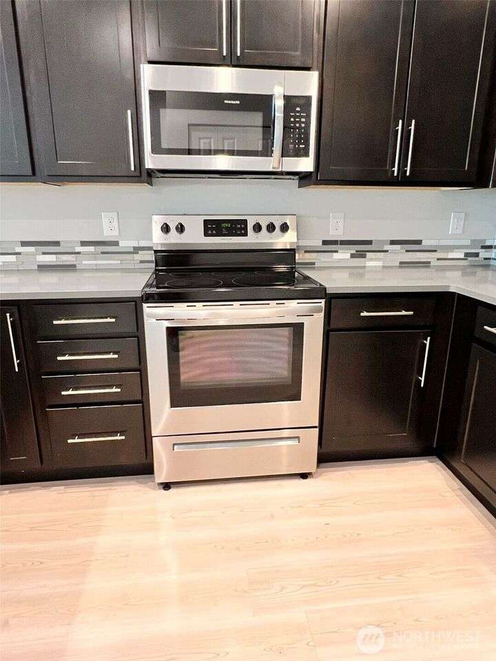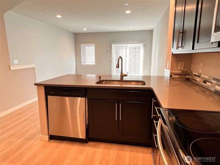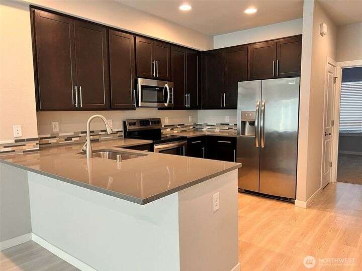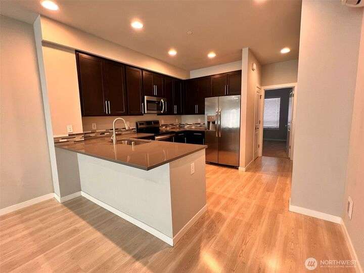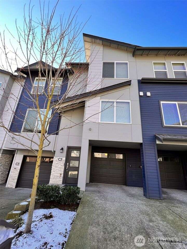 Modern living meets unbeatable convenience in this Lynnwood gem! Minutes to I-5, I-405, Ash Way Park & Ride, Martha Lake, dog park, Alderwood Mall & the Lynnwood Light Rail Station. Open-concept kitchen, dining & living room with deck. Main-level bedroom + full bath ideal for guests or office. Entry-level 2-car tandem garage with extra space for storage, gym, or workspace. Features include quartz countertops, luxury laminate flooring, tile baths, SS appliances & in-unit washer/dryer. Mini split system offers year around comfort. Community offers a playground & fitness station. Pets considered with addnl deposit.