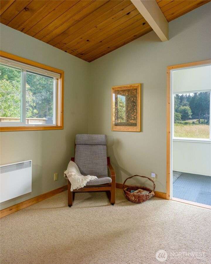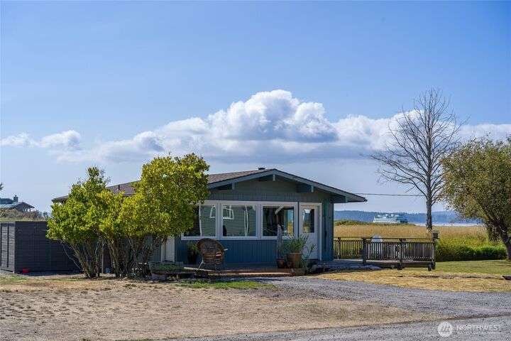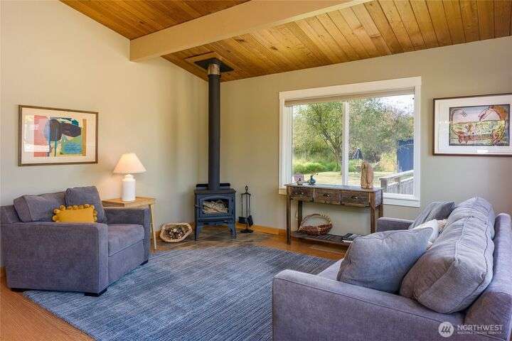 Flat Point Cottage---Classic Lopez Living. Tucked in the heart of Flat Point, this sweet 2 bedroom, 3/4 bath cottage is just steps from one of Lopez Island's most beloved sandy beaches. Vaulted ceilings, fir floors & wood stove give it that cozy, timeless island feel, with sunlight streaming in all day. Take in peaceful territorial views across the wetlands to the Channel, where golden sunsets linger and ferries glide past in quiet rhythm. It's a place to slow down, soak in nature & feel at home. The shared Long House by the beach is perfect for potlucks, gatherings or quiet mornings with a cup of coffee. Whether you're here year-round or seasonally, this is Lopez at its best.