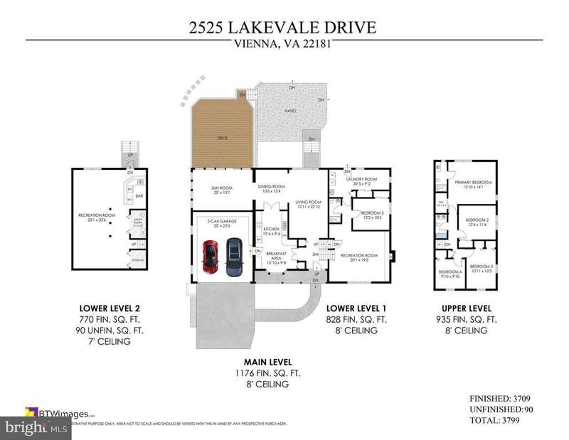Lovely, updated, and nestled in highly coveted Lakevale Estates! Such a peaceful and wonderful community that has it all with it's own private lake and swimming pool, tennis and pickleball courts, walking/jogging trails, basketball courts, soccer field, and tot lot/playground. Lakevale Estates is one of only two Vienna communities with a private pool, so you don't have to wait 7+ years to join. This huge 4 level split home, with 3,799 total sf, is much larger than it appears from the outside and has 5 spacious bedrooms and 3 full bathrooms with a walk-out fully finished 3rd level AND a walk-up fully finished 4th level with wet bar, perfect for a theatre and game room! Relax and enjoy your giant living room and 4-seasons sunroom overlooking a private and tranquil flat backyard oasis with a treed view. You will love the lush, professionally landscaped yard! The large eat-in kitchen has granite countertops, newer stainless steel appliances, and tons of natural light with two skylights and a bow window. The separate dining room and a new deck stepping down to the patio is great for dining and entertaining alike. The over-sized two car garage has lots of shelving for all your storage needs. The lower level family room is so light and bright with a huge window and has a gas fireplace to warm up to on these chilly Fall days. The 5th bedroom, full bathroom, and spacious laundry room with newer front loading washer and dryer and two closets round out this level. How wonderful it is to have that fully finished and walk-up 4th level with wet bar for added space! Numerous upgrades include beautiful new floors on the main and 3rd level, gorgeous brand new upper level hall bathroom with dual sinks, updated primary bathroom, brand new deck, brand new recessed lighting, to include all bedrooms, and the entire home has been freshly painted inside and out. Other 2025 updates include a brand new HVAC system, brand new laundry room sink, and a brand new garage door motor. The roof was new in 2020, along with a sprinkler sytem being added that year as well. A new hot water heater was installed in 2018 and a new garage door was installed in 2017. In the highly sought after Madison High School pyramid and so close to all the fantastic Town of Vienna and Oakton amenities, including a plethora of wonderful dining options, shopping, and entertainment! So conveniently located off Route 123 near the Vienna Metro, I66, Tysons Corner, and more! Don't miss this opportunity to make this beautiful Lakevale home yours today!
