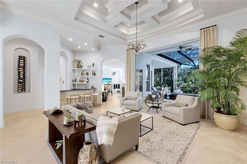 Introducing an exceptional luxury residence at 28585 Via D Arezzo within the esteemed Vasari Country Club in Bonita Springs. This spectacular one-story home offers 3 bedrooms + den, 3.5 bathrooms, an expansive open floor plan, and a full suite of resort-style indoor-outdoor amenities including a private pool and spa and three-car garage. Step inside to soaring ceilings and sun-filled living spaces designed for both entertaining and relaxed everyday living. The well-appointed open and updated kitchen features a breakfast bar/island plus pantry and flows seamlessly into the family room and dining areas. A separate den offers flexibility for a home office, media room, or library. The split-bedroom layout offers prime privacy: the luxurious primary suite features dual walk-in closets, dual vanities, a soaking tub and separate shower-plus direct access to the pool terrace. Two additional guest bedrooms each enjoy their own bathrooms (and there is an additional half bath for visitors), ensuring comfort and separation for residents and guests alike.Outside, the screened lanai opens to a shimmering pool and spa set against lush tropical landscaping and tranquil preserve views-an ideal Florida retreat. The oversized three-car garage adds true luxury convenience, and the home has been thoughtfully updated with modern finishes and attention to detail.You are within a premier gated community offering championship golf, tennis, Clubhouse, Dining-all minutes to the white-sand beaches of Southwest Florida, vibrant dining and shopping, and easy access to the airport and major roadways. This home blends sophisticated style, functional layout, and a true resort-feeling lifestyle. For the buyer looking for the ultimate in Bonita Springs luxury living-this is a must-see.