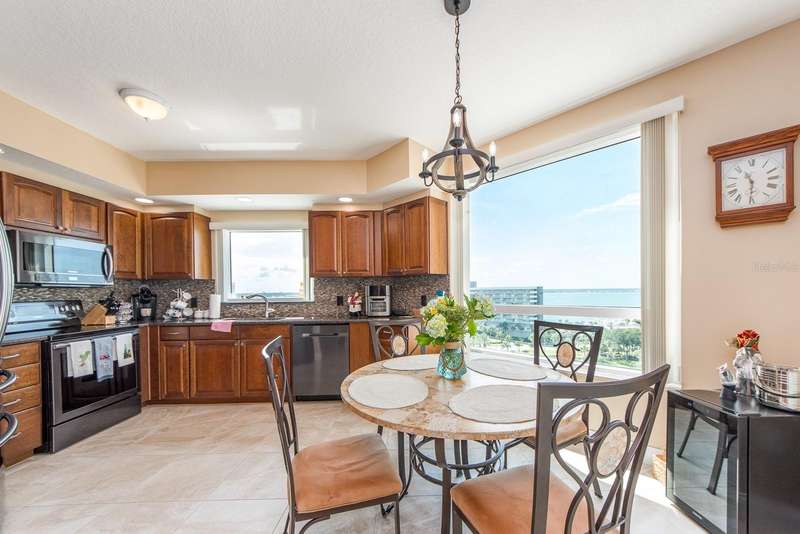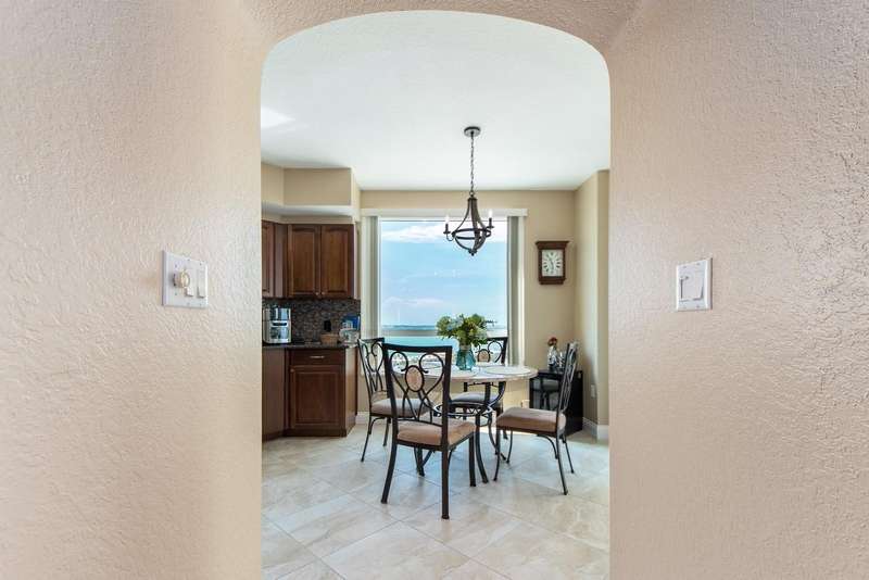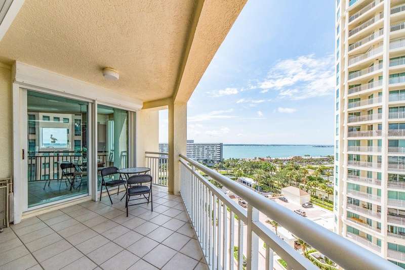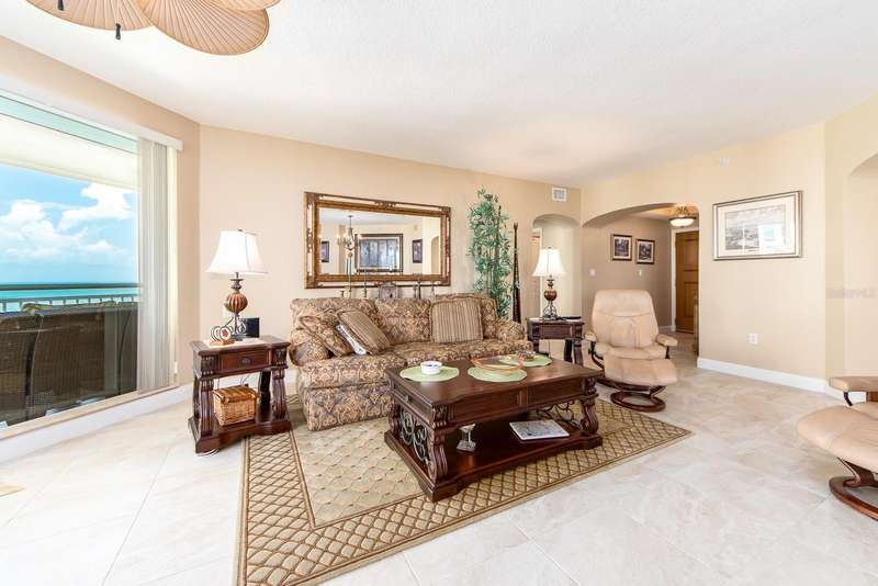 MOTIVATED SELLER, ALL OFFERS WILL BE Considered. TY! WELCOME to one of the most prestigious BEACH FRONT development located in all of Tampa Bay / Clearwater / St. Pete, The GRANDE on SANDKEY. This beautiful, well maintained Southeast corner residence has been recently updated featuring: neutral ceramic tile throughout, solid stone kitchen countertops, solid wood cabinetry, back flow unit installed in kitchen sink, hurricane storm shutters, murphy bed in bonus den room, new AC unit, new water heater, new washer & dryer, & duct work cleaned and disinfected in 2024. Balcony views from the primary bedroom view North Eastward to the intracoastal waterways, Sand Key bridge, Memorial cswy, and Clearwater / Belleair inland. The wrap around balcony (kitchen, living room, bonus room) views span across the intracoastal waterways, main inland, overlooking the pool grounds and out to the open Gulf of Mexico. The Grande's superb amenities include: two swimming pools, large outdoor spa, cabanas, outdoor pavilion for your grilling pleasure, fitness center, tennis courts, spacious social room for gatherings or events, billiard room, concierge services, and 24 hour security. In addition, the Sand Key Plaza (directly across the street) houses small boutiques, several restaurants, and Sand Key Realty. Take a tranquil stroll on Sand Key beach, or travel 1 mile North to visit North Americas #1 beach. As the day comes to a conclusion, you will witness the most serene and majestic sunsets while relaxing by the pool side or your wrapped around balcony. Paradise awaits you at The Grande on Sand Key...