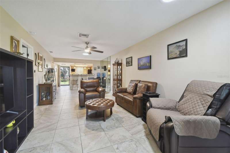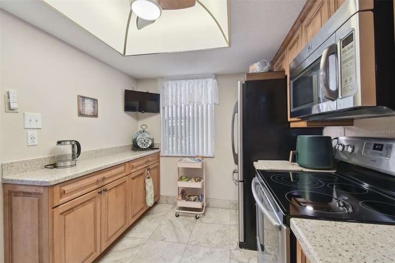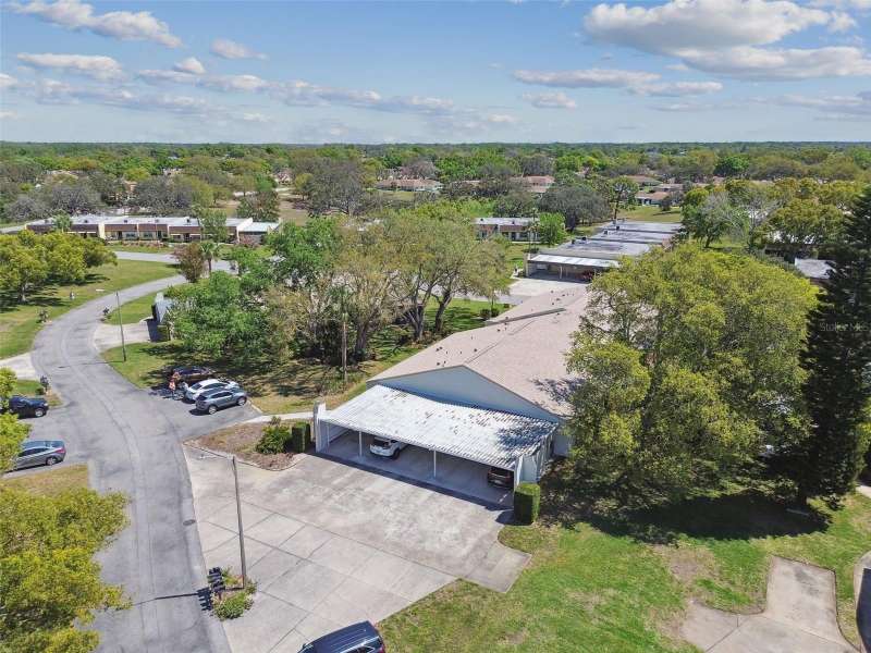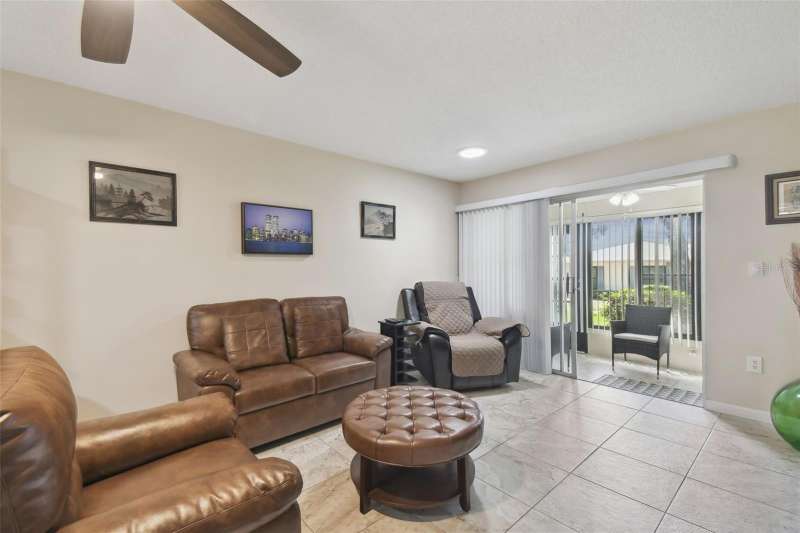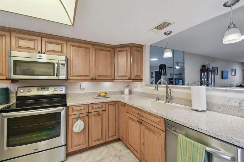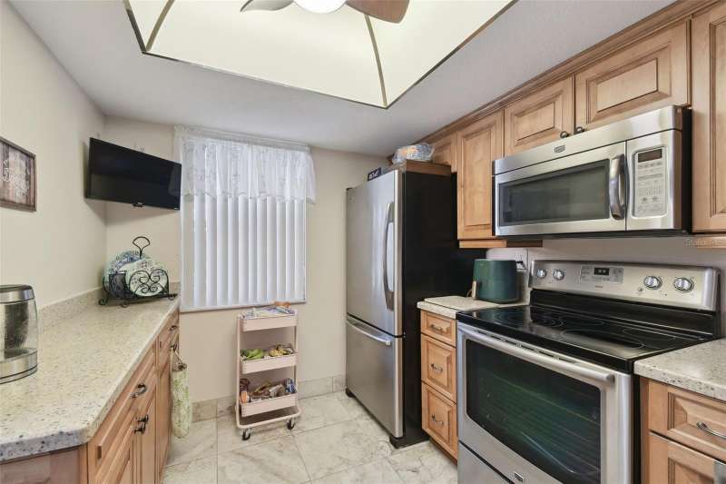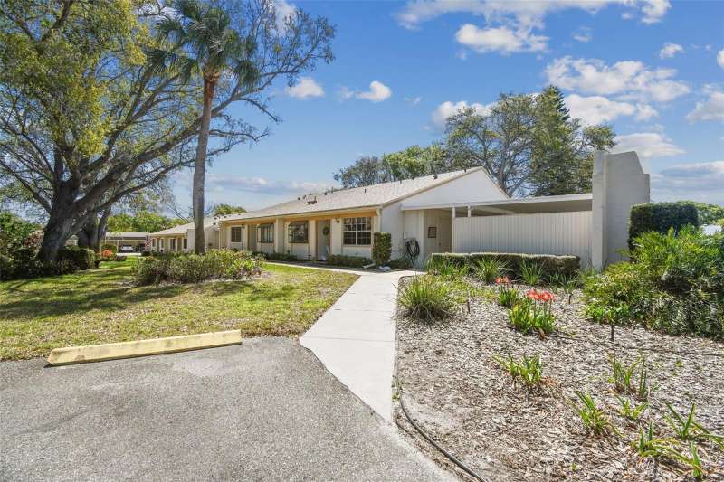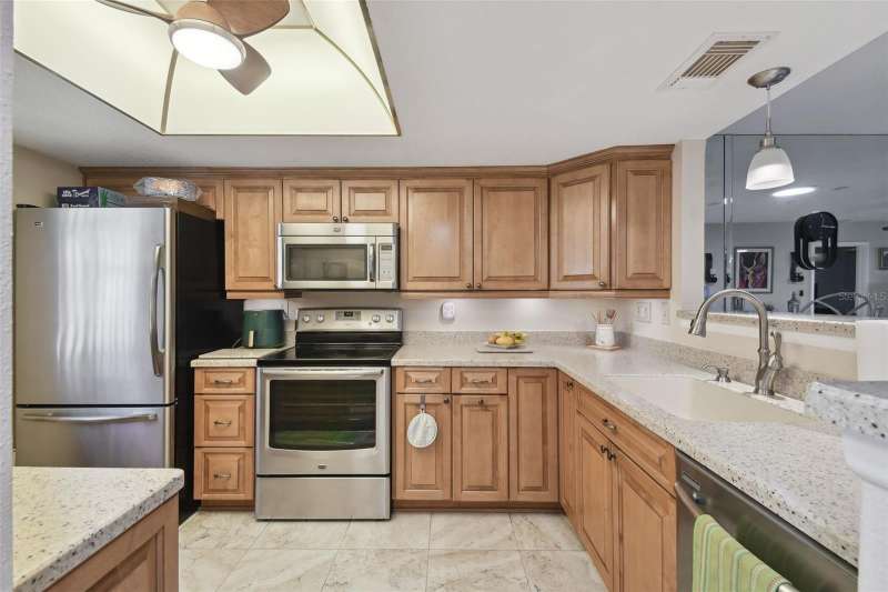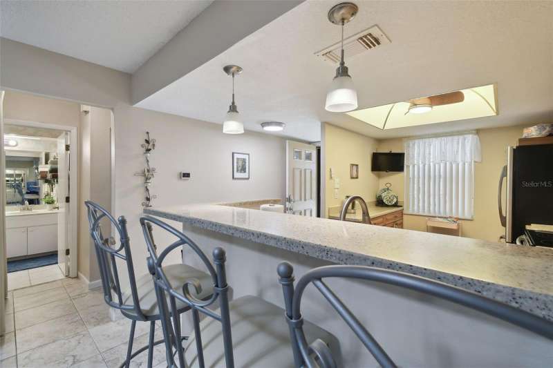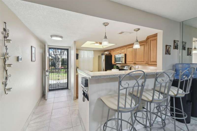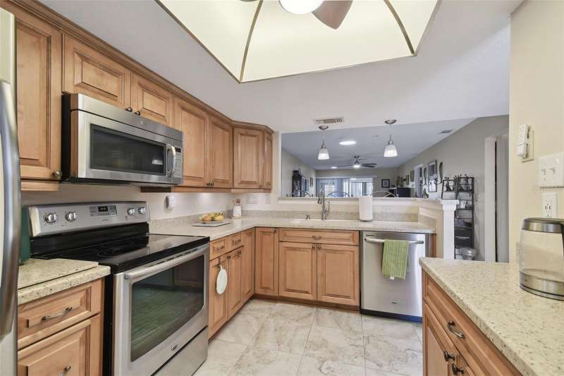 Under contract-accepting backup offers. PRICE REDUCED! Take a look at this 2/2 condo in the active community of Timber Oaks. Make this cozy updated villa your home. The Stunning kitchen features under cabinet lighting and solid stone countertops. Plus tons of storage and prep space. Range, refrigerator, dishwasher, microwave, are all Stainless Steel Maytag Appliances. With the wall removed from the kitchen area along with the skylight in the dining room the space has tons of natural lighting. The split bedroom plan offers plenty of privacy when company is visiting. A lovely screened in back porch is the perfect spot to greet the morning sun. You have a closet off the screened porch for storage along with a storage closet located at the carport parking area of the home. Washer & dryer and water softener included, A/c 2017, Exterior painted 2021, 2022 roof. Dues include water/sewer, trash, expanded cable, Internet, insurance, all outside maintenance, reserves, private area pool. Fairway Villas has a private swimming pool adjoining the Timber Oaks clubhouse that is heated, meeting rooms, holiday parties, card games, sewing, bible study, exercise room, paint & sketch group, needlework, Texas hold'em, Poker, pickleball, bocce, and much more!