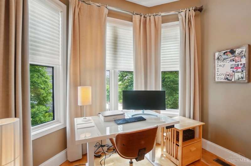 Luxury, flexibility, and location dialed in. With 2,808 sq ft above grade and a finished basement with egress, this East Walnut Hills row home delivers a smart layout and refined design across four levels. Soaring ceilings, hardwood floors, and a whole-home surround sound system sets the tone. The entry level offers a private guest suite or office, while the second floor opens to a chef's kitchen flowing into two spacious living areas, with sit down dining, and a walk-out terrace. The primary suite includes a spa-like bath, dual vanities, jetted tub, and walk-in closet. You will also find bedroom-level laundry, multiple work-from-home options, and an attached two-car garage. Built in 2000 with low-maintenance outdoor living, this home is tucked in a historic neighborhood steps from restaurants, shops, and hospitals. Clean lines, high function, timeless style - this home delivers on every level.