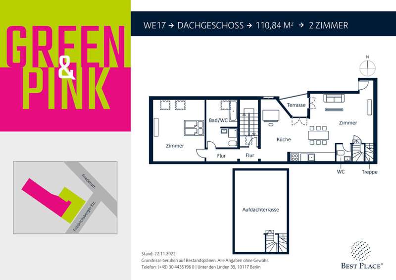 The Green & Pink comprises a total of 16 condominiums. The residential units each consist of five 1-, 2- and 3-room flats and one 4-room flat. Not only singles feel at home here, but also couples and small families find a home here. The residential units are sold on a rental basis and offer a secure and sustainable investment.