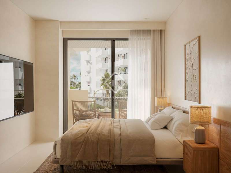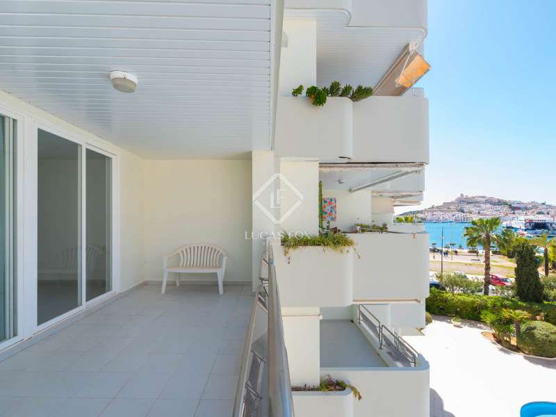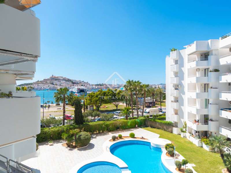 Located in the prestigious Marina Botafoch area, this stunning 2 bedroom property offers an exclusive lifestyle in one of Ibiza’s most sought-after locations. Just steps away from the marina, fine dining and world-famous nightlife, this is a rare opportunity to own a luxury home in the heart of Ibiza! The apartment features a bright living room with an open-plan kitchen, two bedrooms, both with access to the balcony and their own bathrooms and an amazing large balcony overlooking the pool and garden area with stunning Dalt Vila views. Top venues like Lío, Pacha, Cappuccino, Mr Porter, Zuma and Cipriani are just around the corner. The apartment is currently being renovated to the highest standards and will be ready to move in May 2025. The property will be delivered fully furnished and decorated, as shown in the renders. All furniture and accessories are included in the sale, ensuring a turnkey home! If you want to live a luxurious lifestyle in a first line prime location just minutes from Talamanca Beach and Ibiza Town, offering breathtaking views of Dalt Vila and the marina, this is your place! Contact us for more details or to arrange a viewing! EXCLUSIVE LISTING, ONLY WITH LUCAS FOX The images shown correspond to an illustrative render created with artificial intelligence, for visual representation purposes.